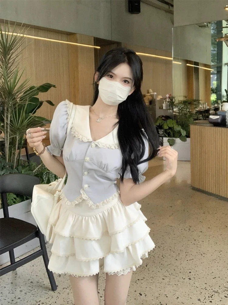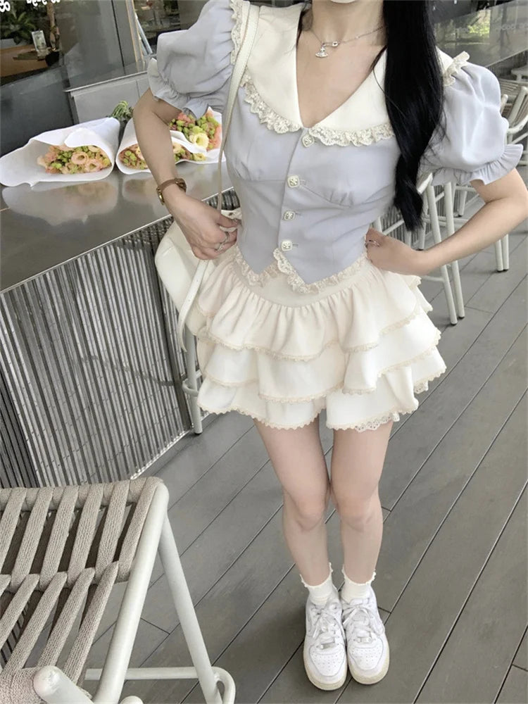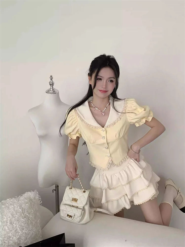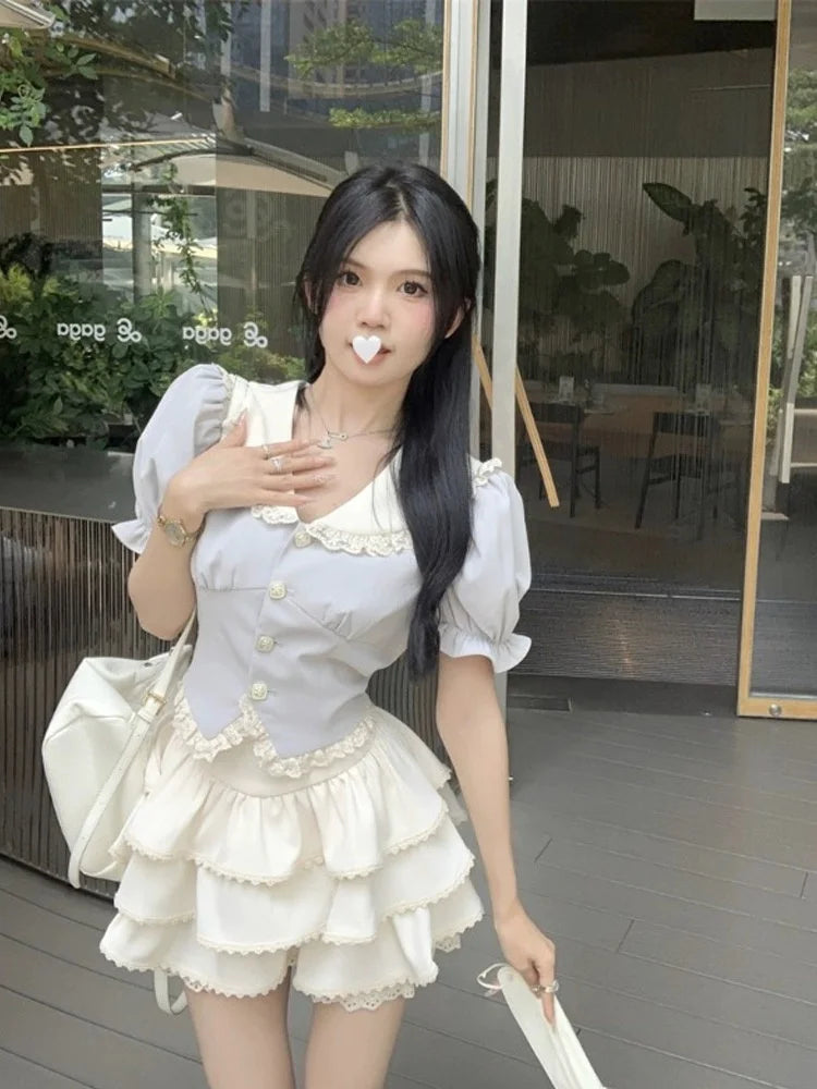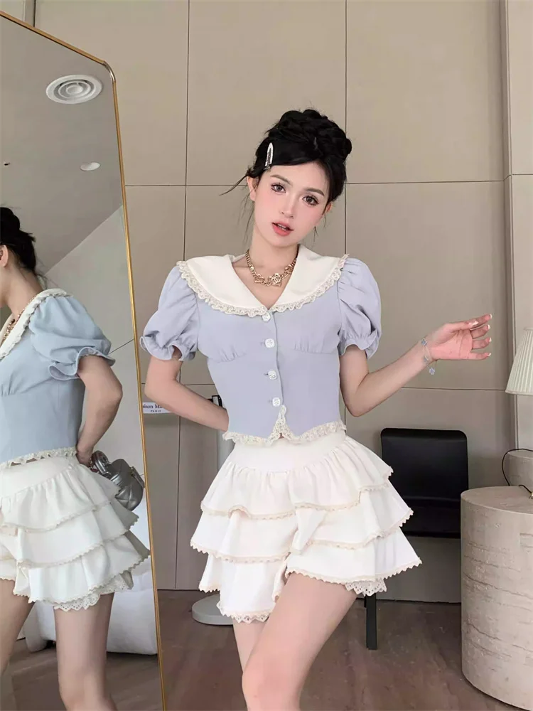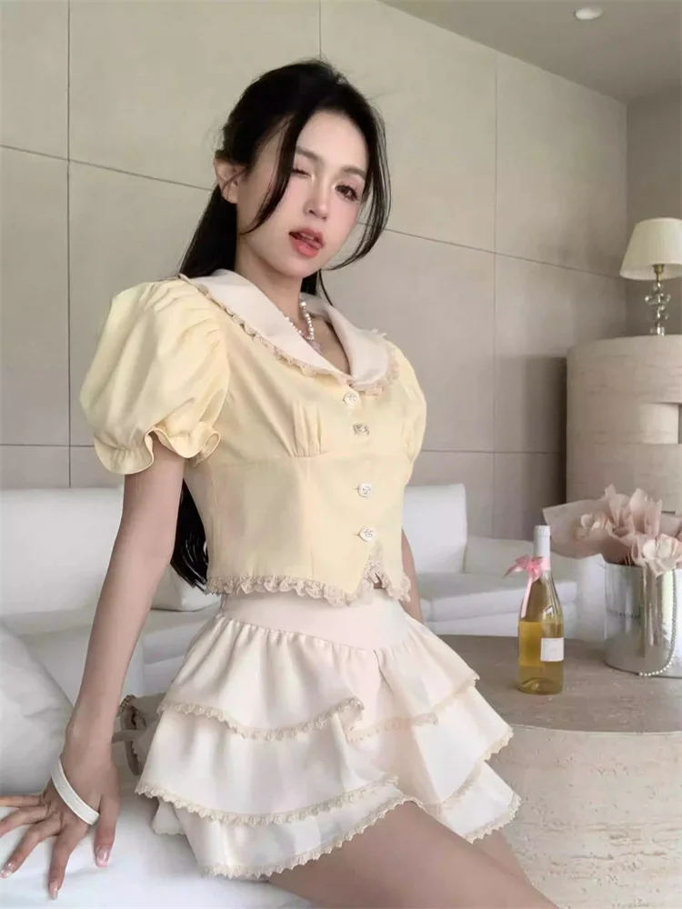 Purpdrank Sweet JK 2 Pieces Sets Women Cute Short Sleeve Top and Mini Pleated Skirt Suits Fashion Lolita Princess Girl Two Pieces Outfit
