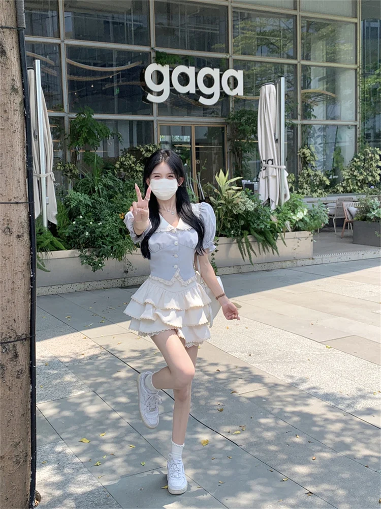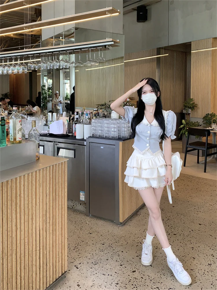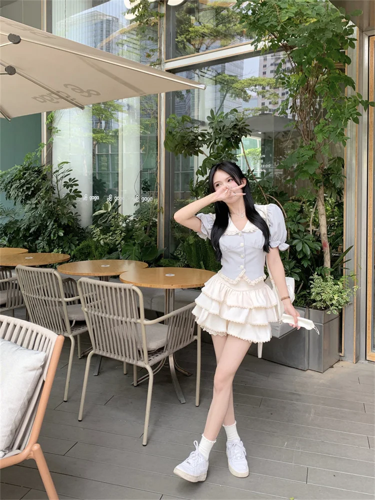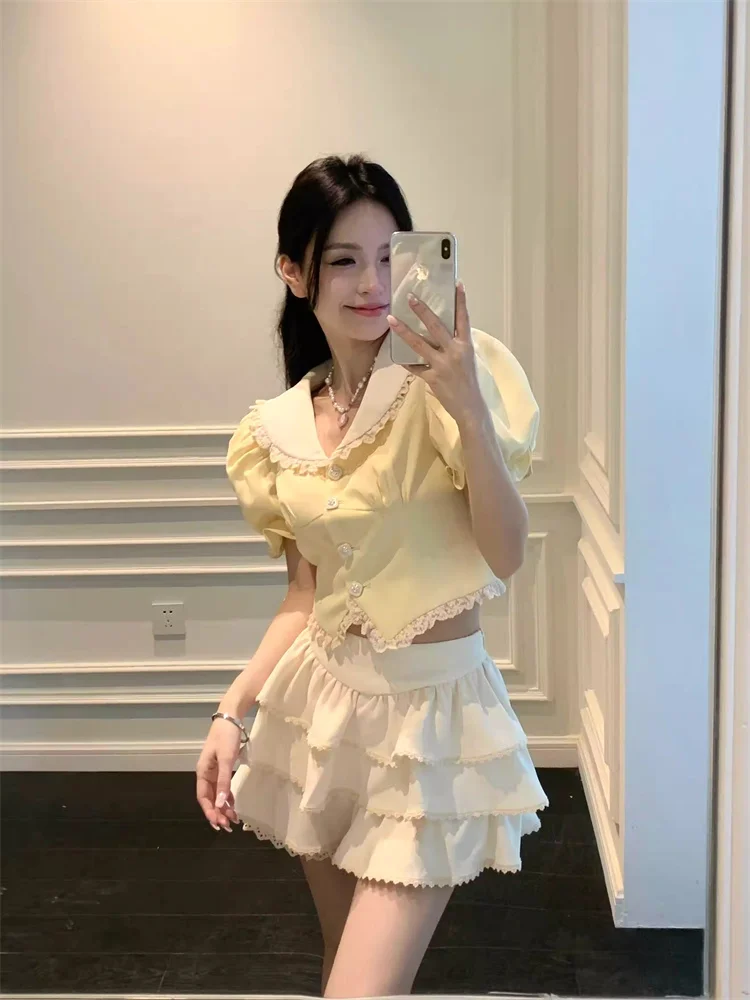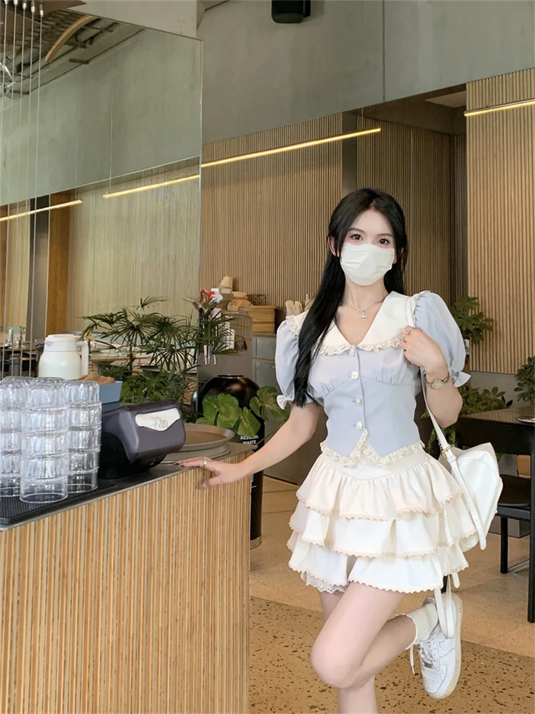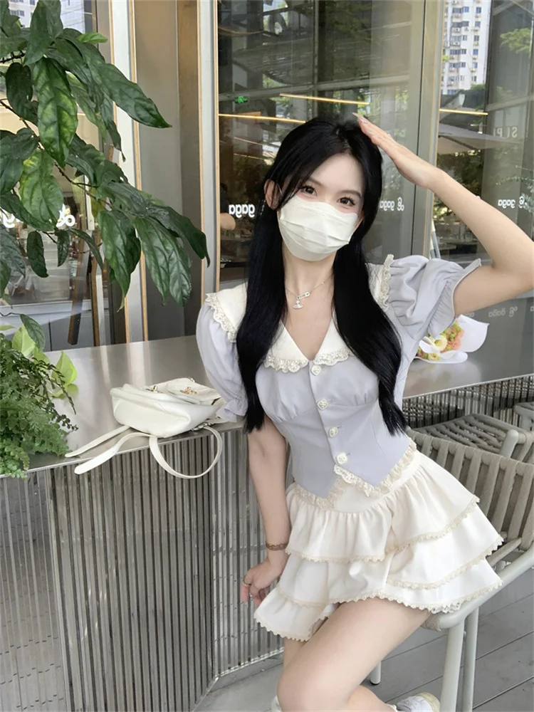 Purpdrank Sweet JK 2 Pieces Sets Women Cute Short Sleeve Top and Mini Pleated Skirt Suits Fashion Lolita Princess Girl Two Pieces Outfit