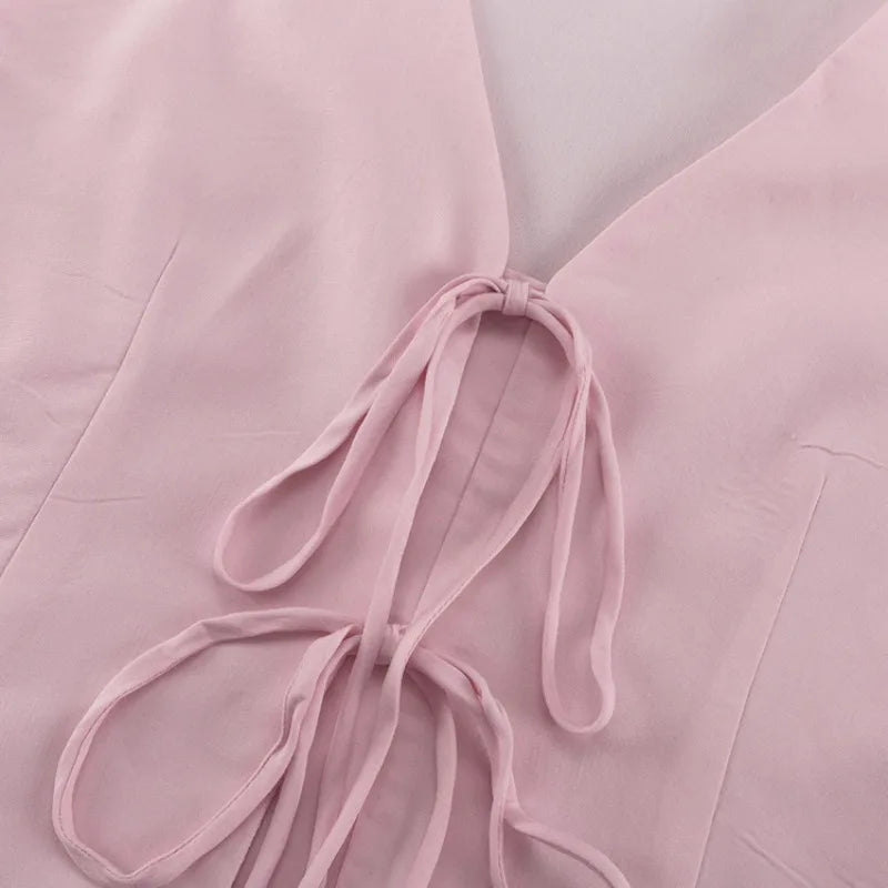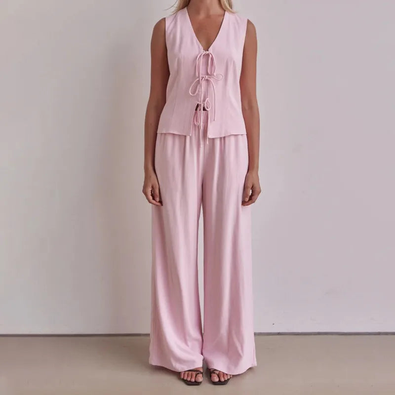 Purpdrank Trousers Suit Office Lady Outfits Elegant Women Loose Two Piece Set Sleeveless Lace Up Vest Top Elastic Waist Wide Leg Pants Set