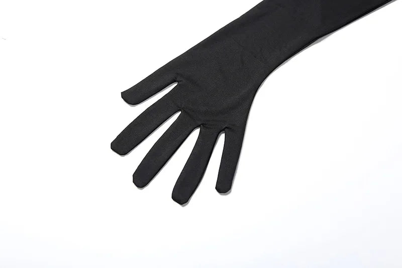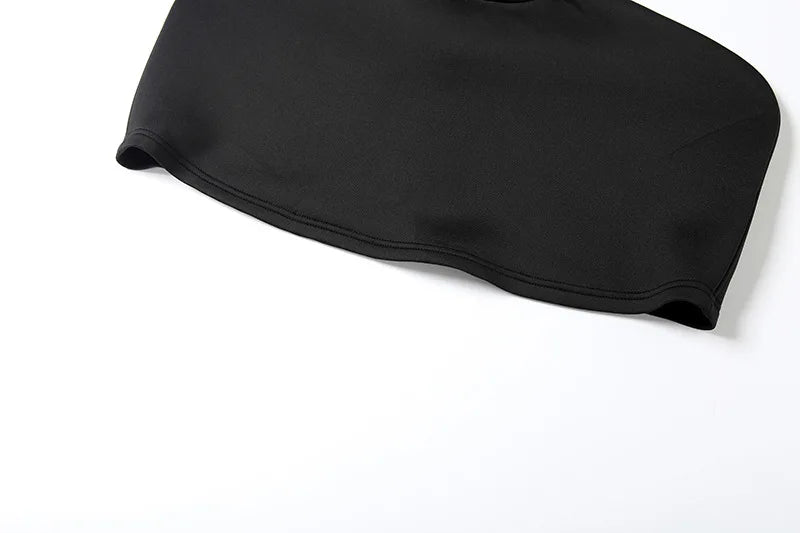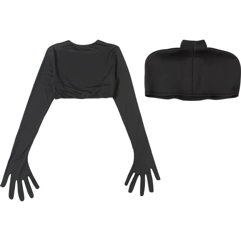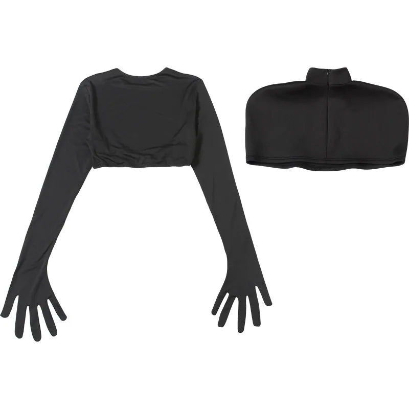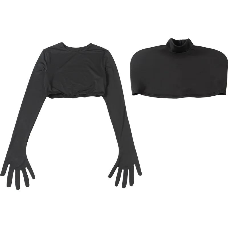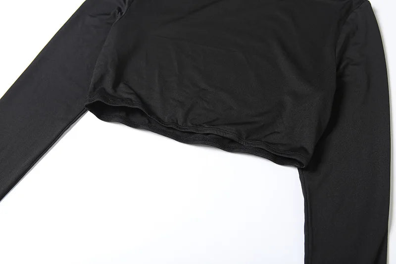 Purpdrank Women's Black O Neck Long Sleeve Crop T-Shirt and Stand Collar Cover Top 2 Piece Set with Gloves Fall Fashion Outfits