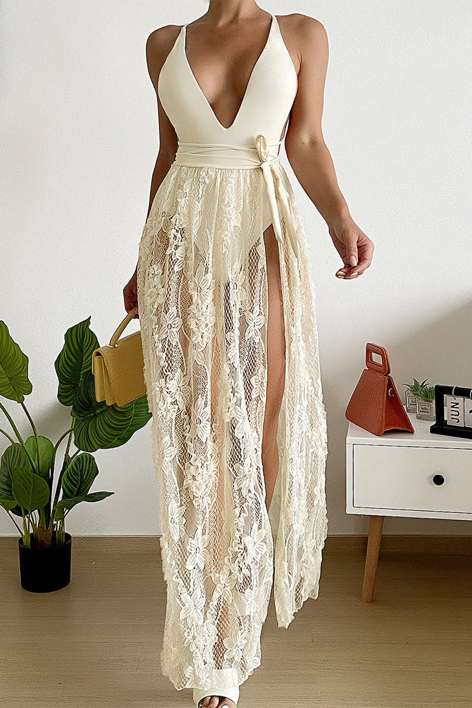 Purpdrank - Sexy Vacation Solid Frenulum Slit Mesh Swimwears(Two pieces)
