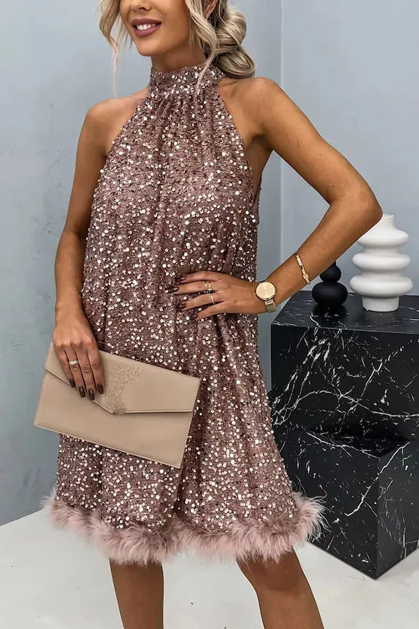 Purpdrank Sexy Lady Patchwork Sequins Slim Dress Women Spring Summer Sleeveless Halter Dress 2025 Casual Lacing Up Party Club Solid Dress