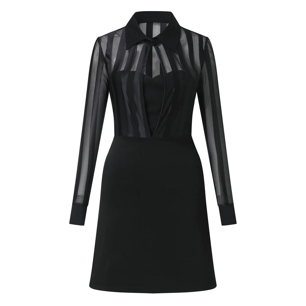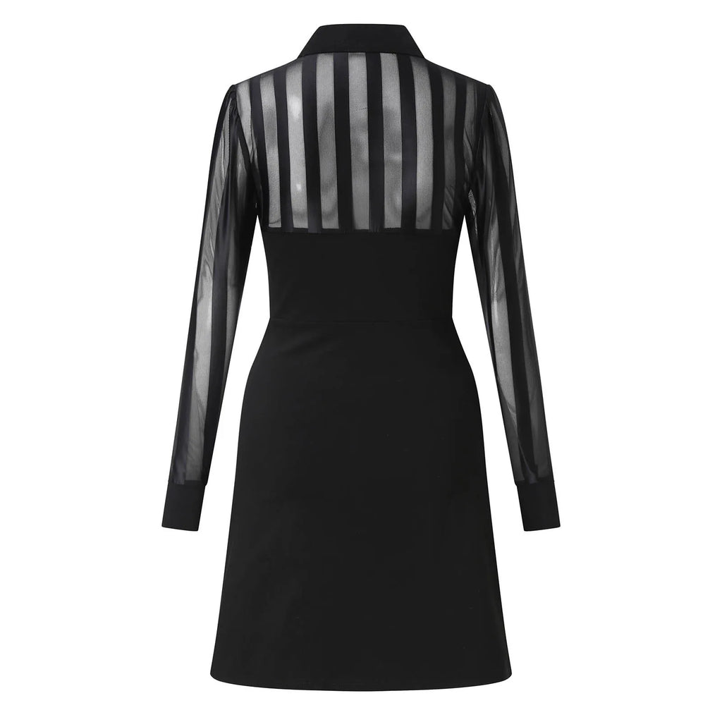Purpdrank Women's Dress Elegant Long Sleeve Sheer Striped Mesh Patchwork Bodycon Midi Dress Party Evening A-Line Formal Dress Guest