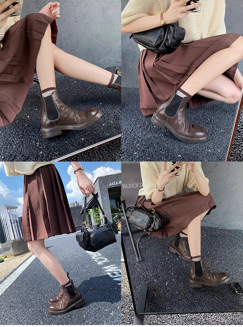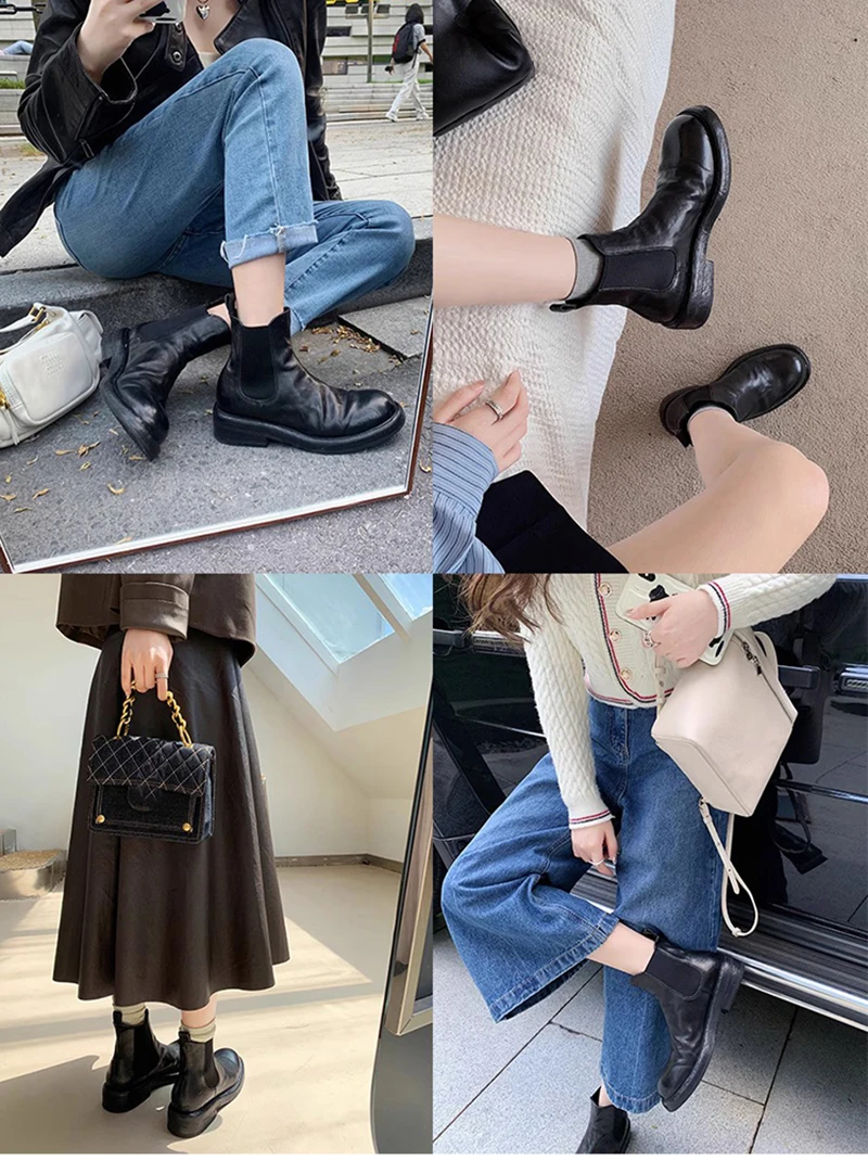 Purpdrank - 2023 Autumn Women Ankle Boots Fashion Square Toe Slip On Ladies Casual Short Boots Low Heel Chelsea Shoes