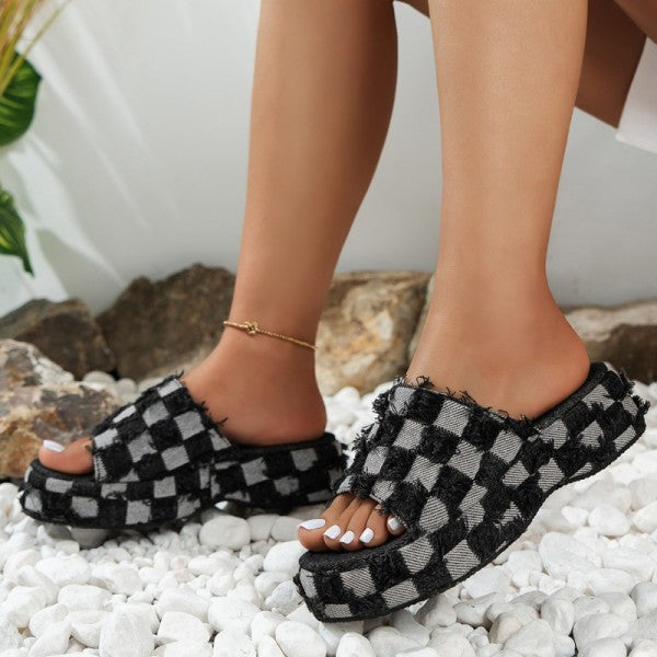 Purpdrank - Black Casual Patchwork Round Comfortable Wedges Shoes