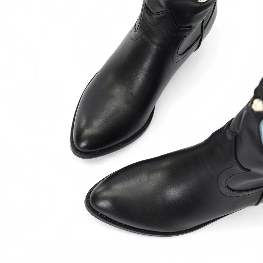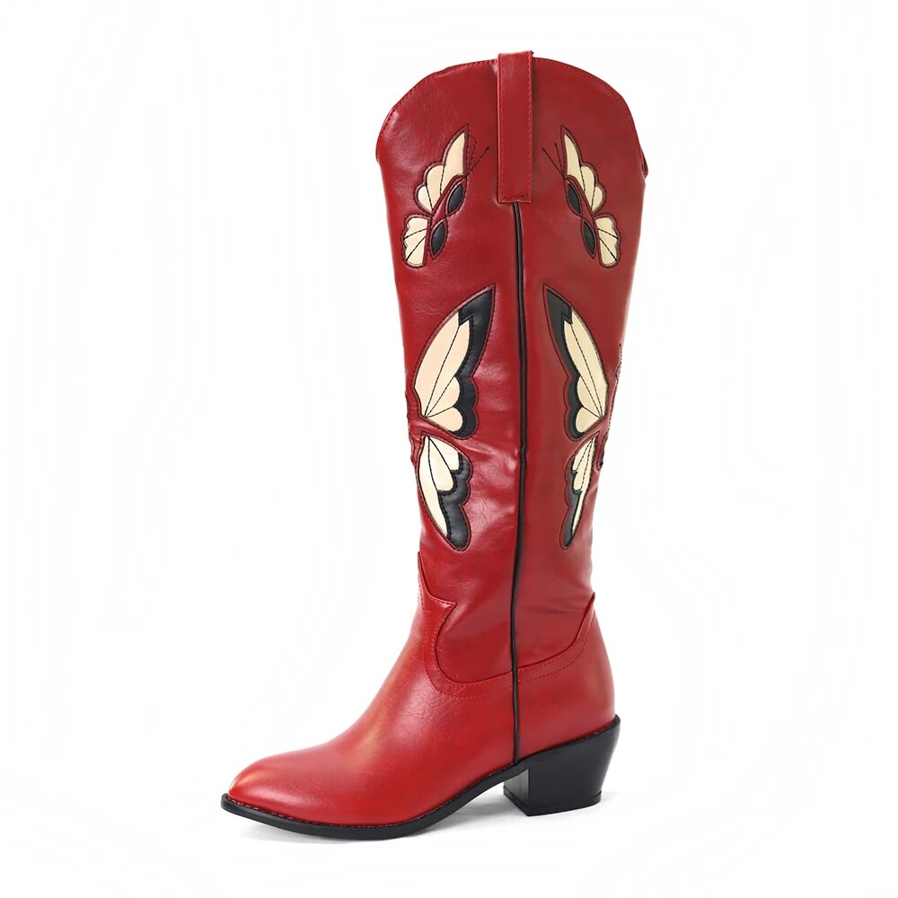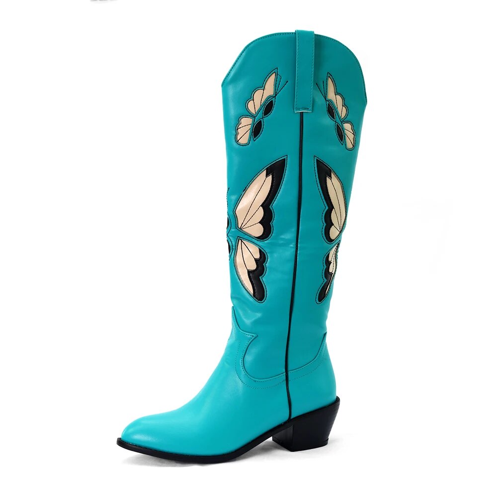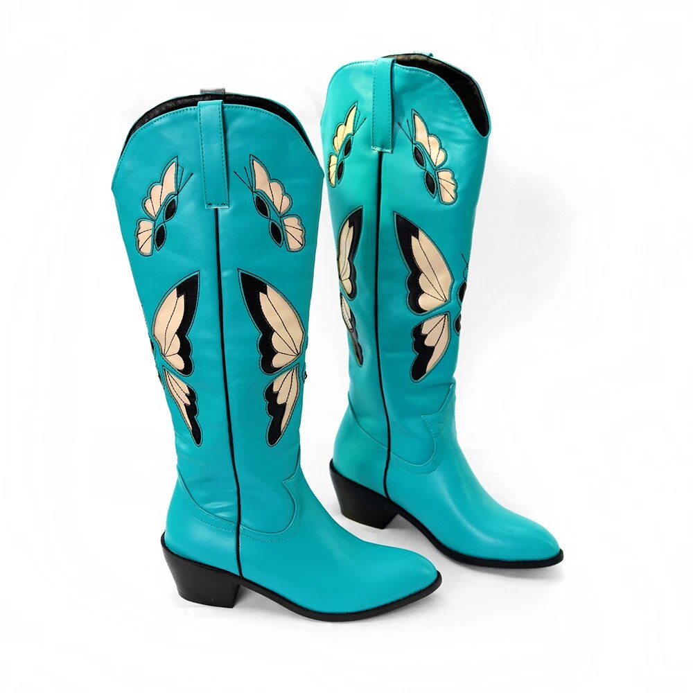Purpdrank - Female Butterfly Embroidery Knee High Boots For Women Cute Cowgirls Cowboy Chunky Heel Vintage Fashion Punk Western Boots Womens