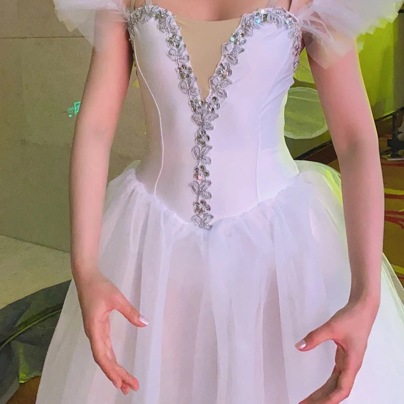 Girls Ballet Tutu Dress Gymnastics Leotard White Long Ballet Dresses Girls Princess Ballerina Dance Costume Birthday Party Dress