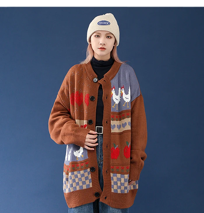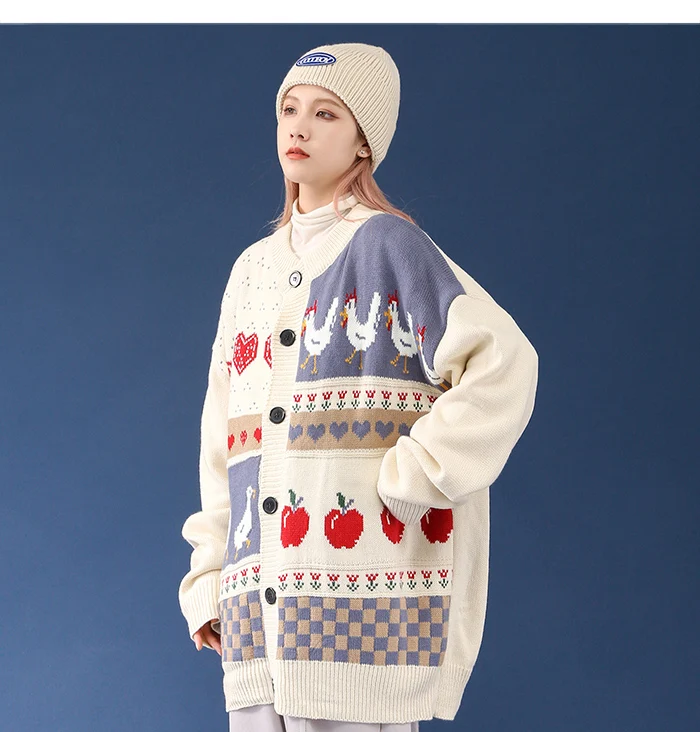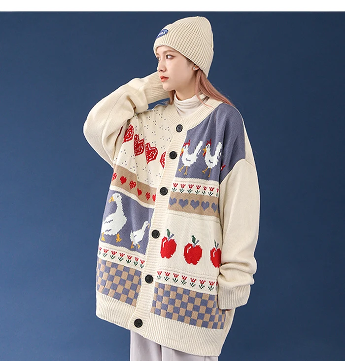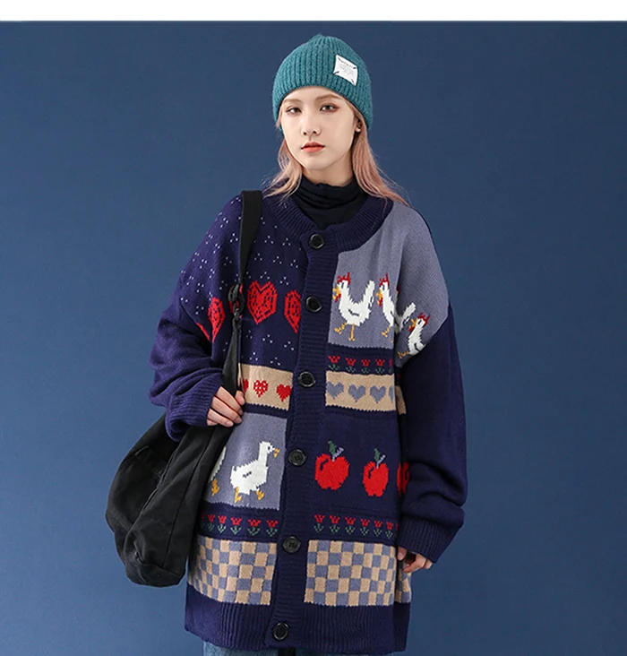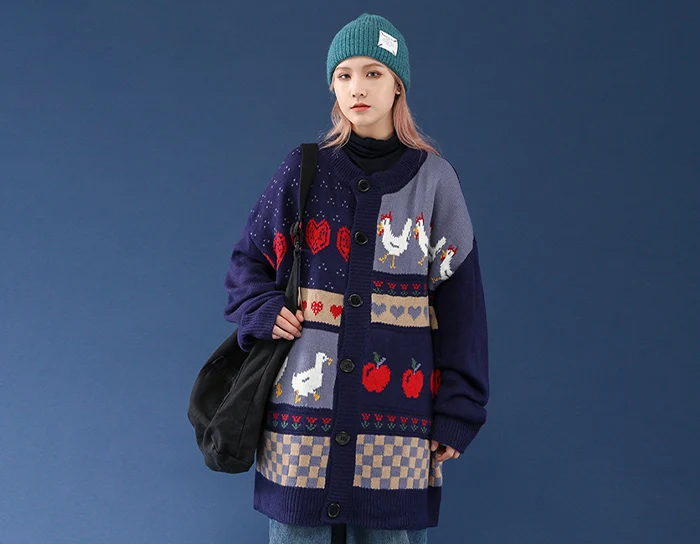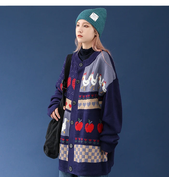 Purpdrank - 2023 Hip Hop Streetwear Knitted Sweater Men Women Jacquard Outer Harajuku Sweater Oversize Loose Cardigan Sweater Tops