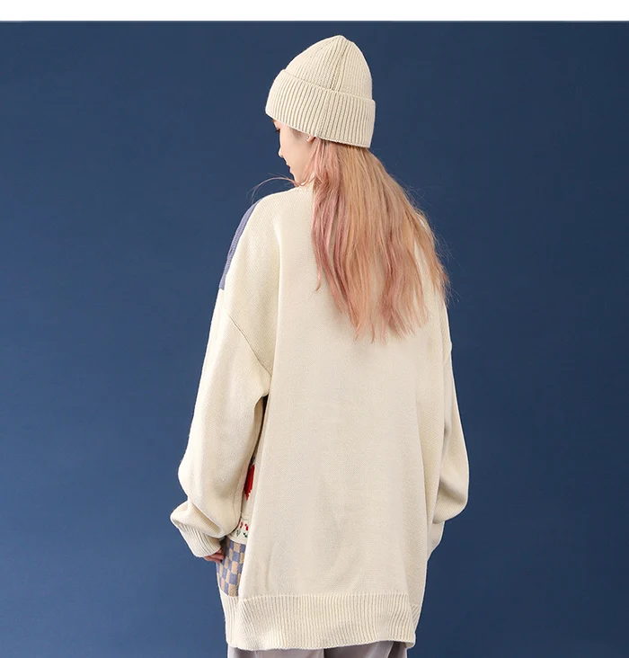 new design | Jacquard Outer Knitted Sweater Ripped Streetwear |