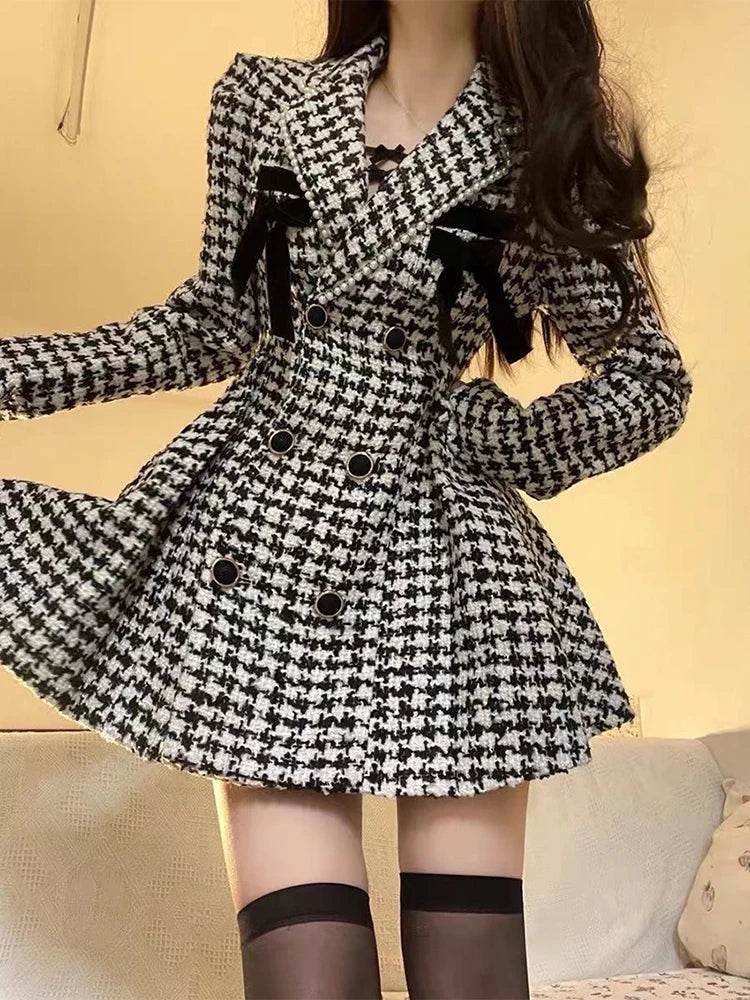 Plaid Vintage Kawaii Dress Women Patchwork Elegant Party Mini Dress Female Korean Fashion Y2k One Piece Dress Autumn