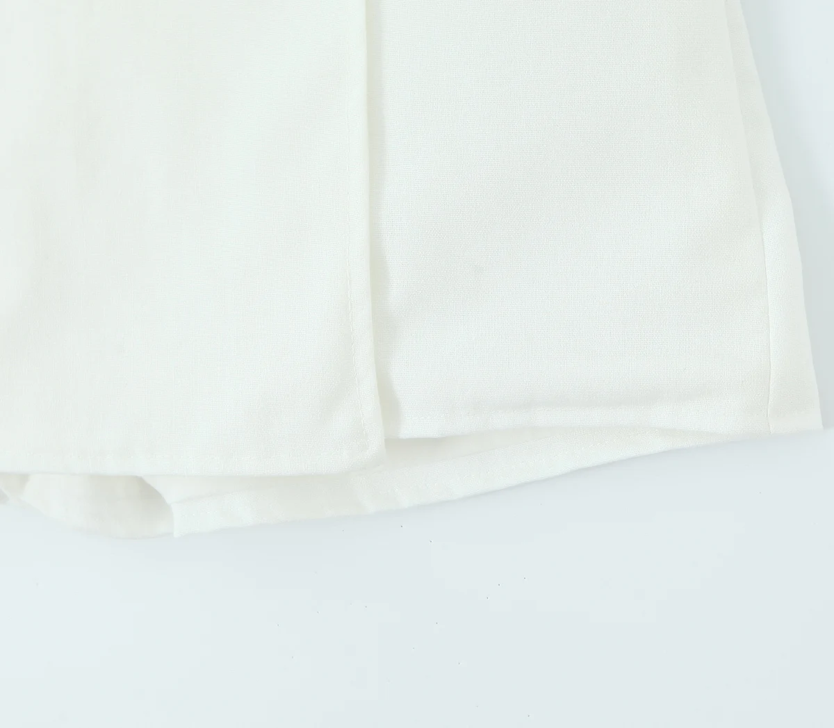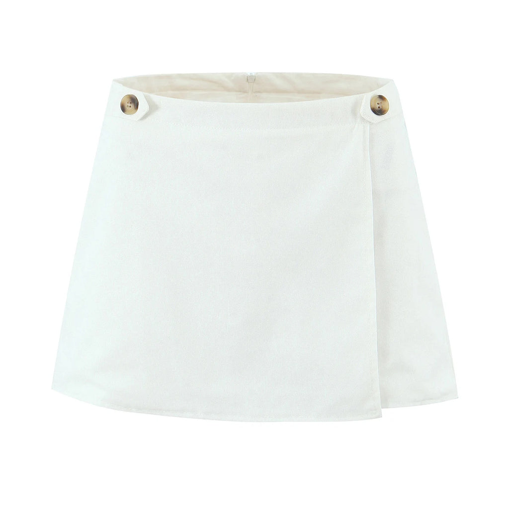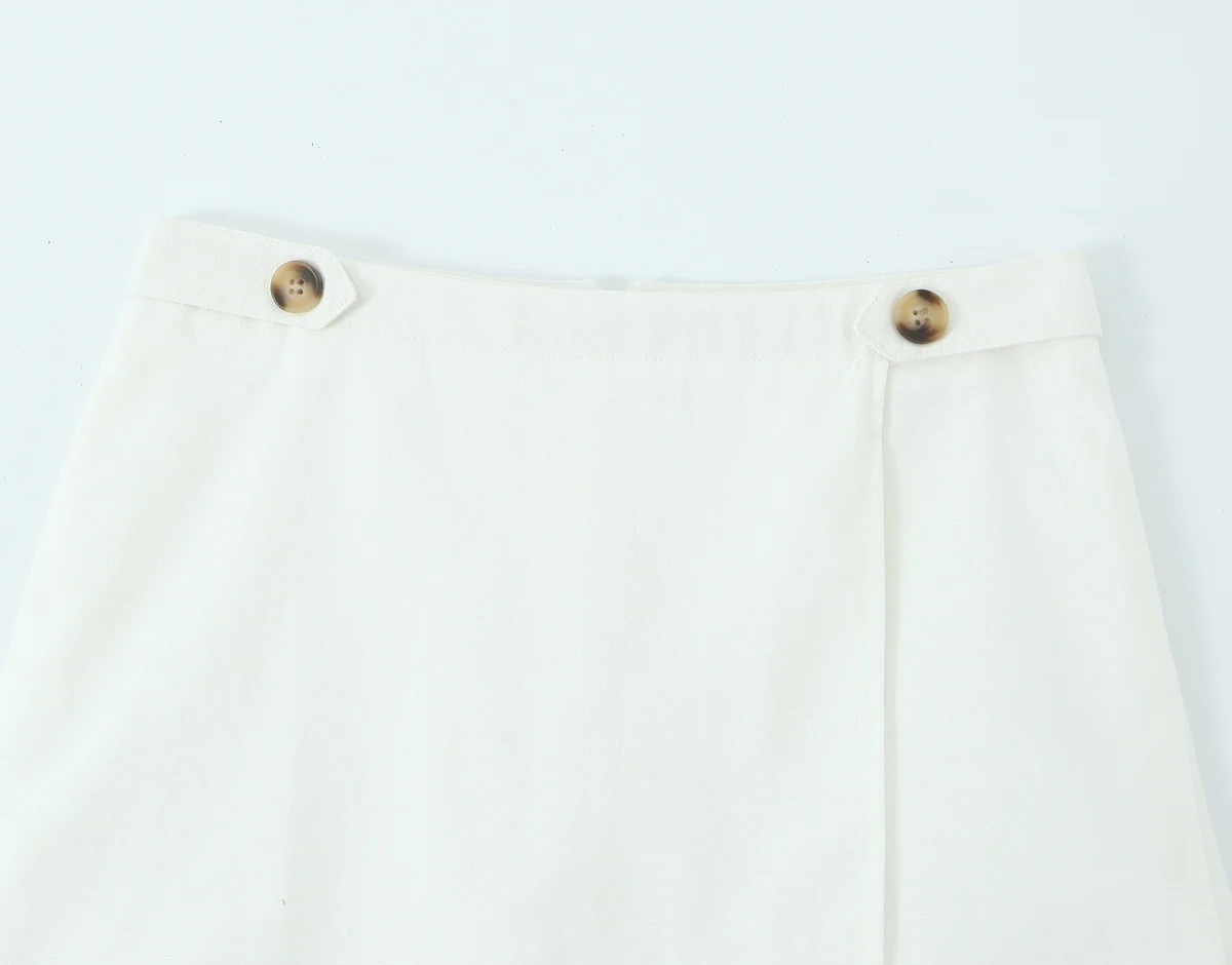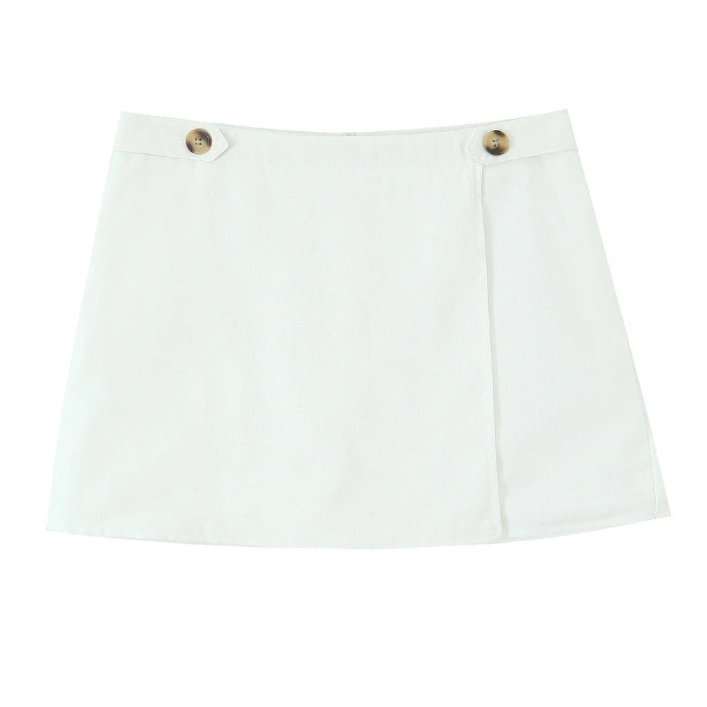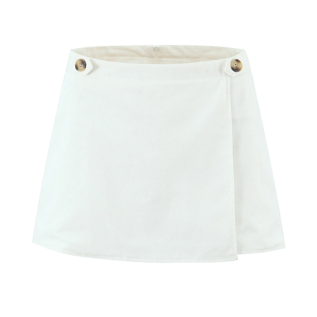 Purpdrank 2 colors 2025 Women Cotton Linen Mini Shorts Buttons High Waist Back Zipper Front Slit Skirt-Shorts