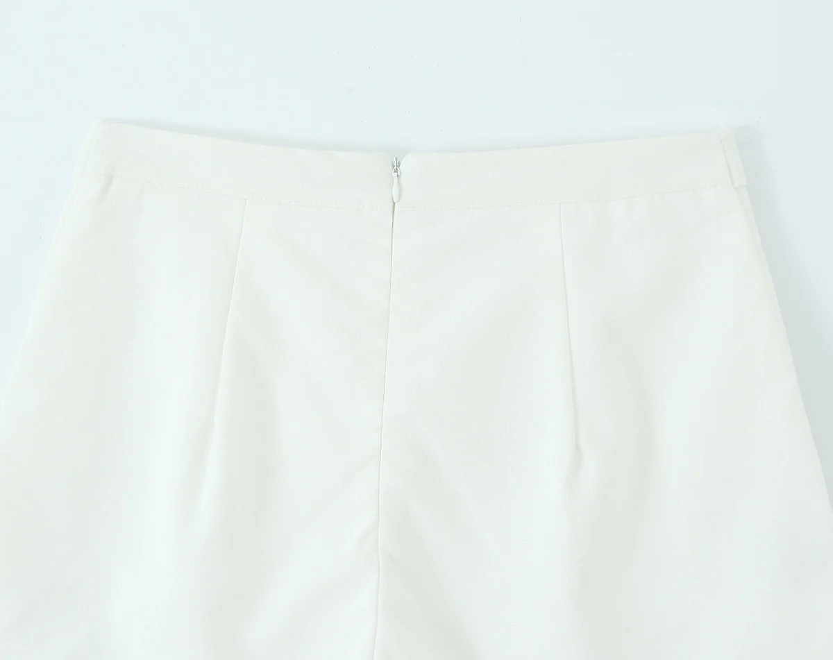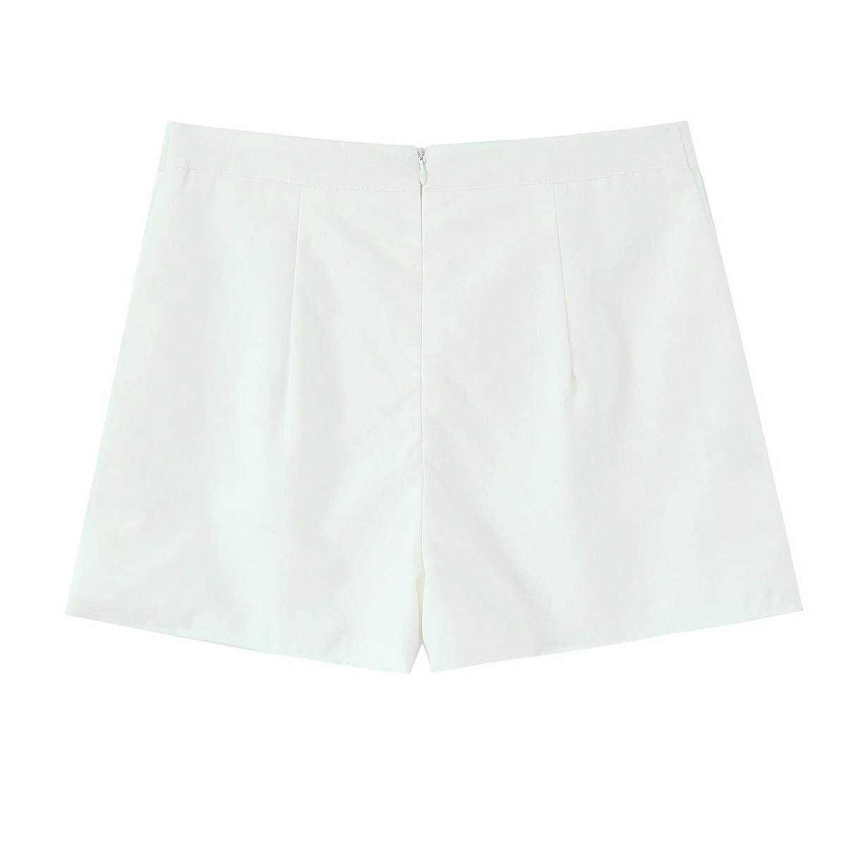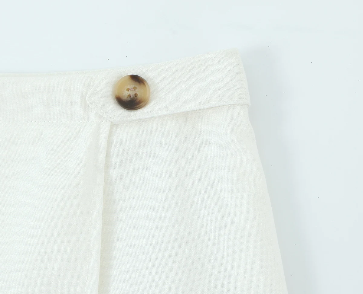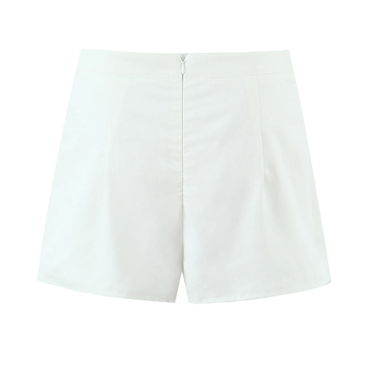 Purpdrank 2 colors 2025 Women Cotton Linen Mini Shorts Buttons High Waist Back Zipper Front Slit Skirt-Shorts
