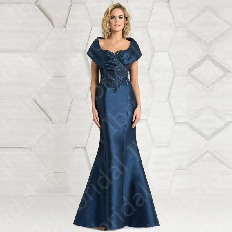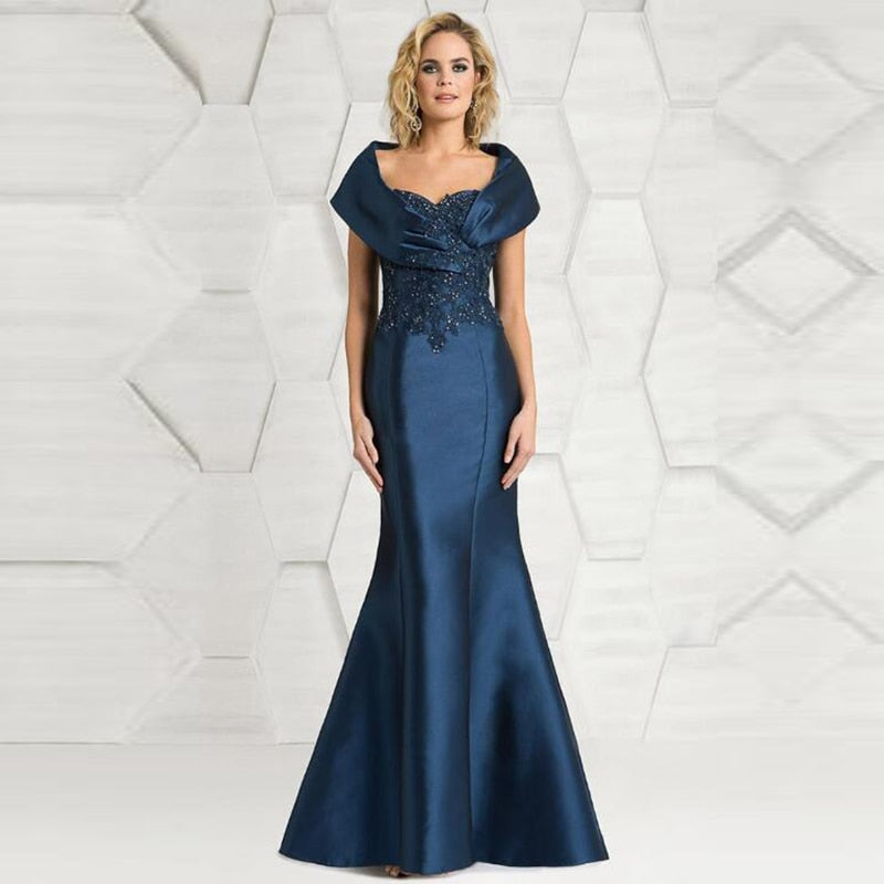 Purpdrank - Latest Elegant Mermaid Navy Lace Applique Cap Sleeve Mother of the Bride Dresses Beaded Wedding Guest Gowns Full Length