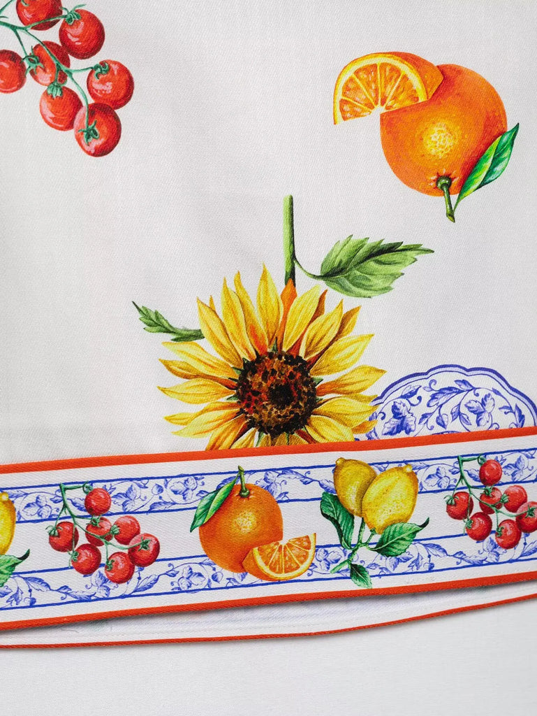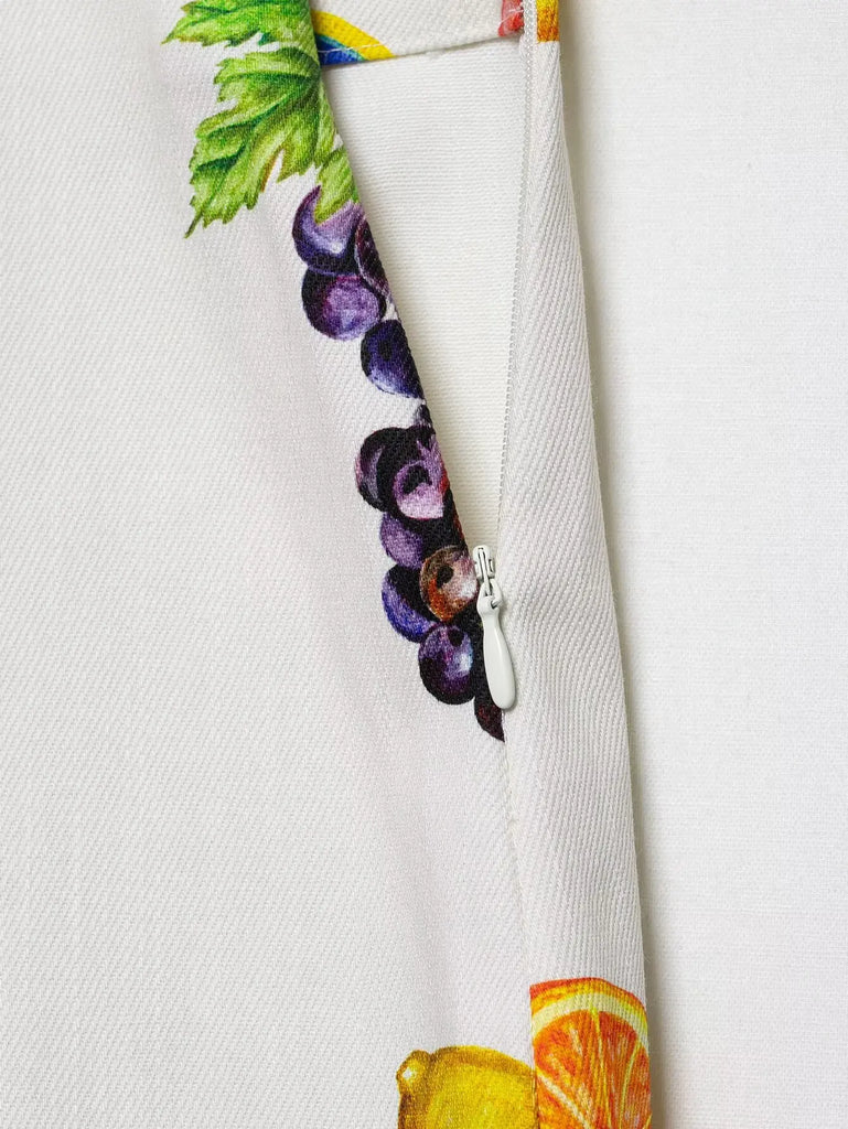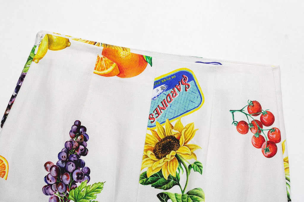Purpdrank 2025 Women Fashion Floral And Fruit Print A Line Mini Skirt Faldas Mujer Female Side Zipper Casual Vestidos QUN9202