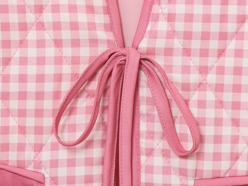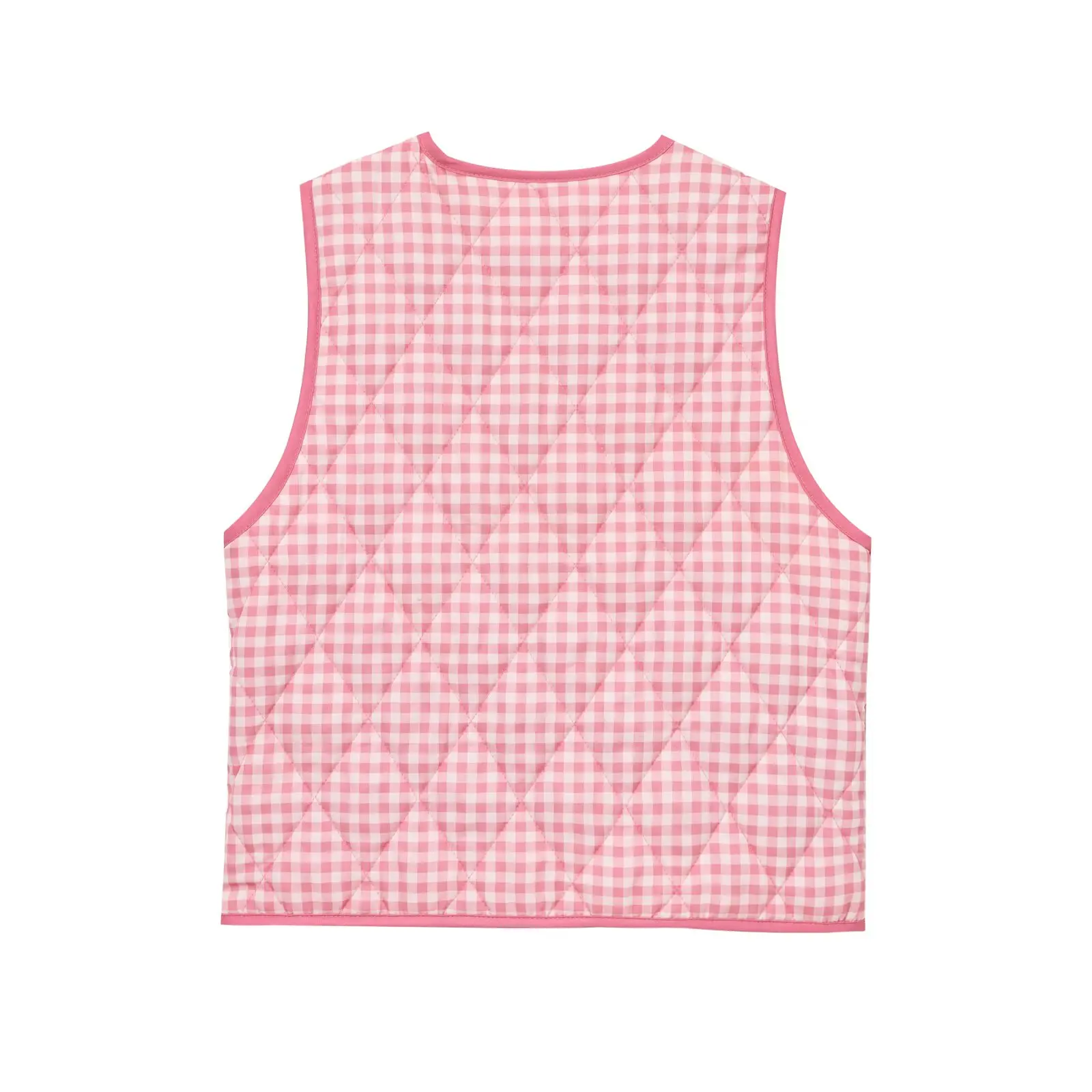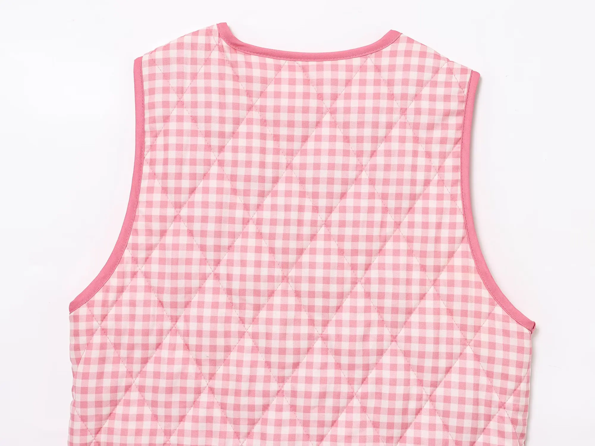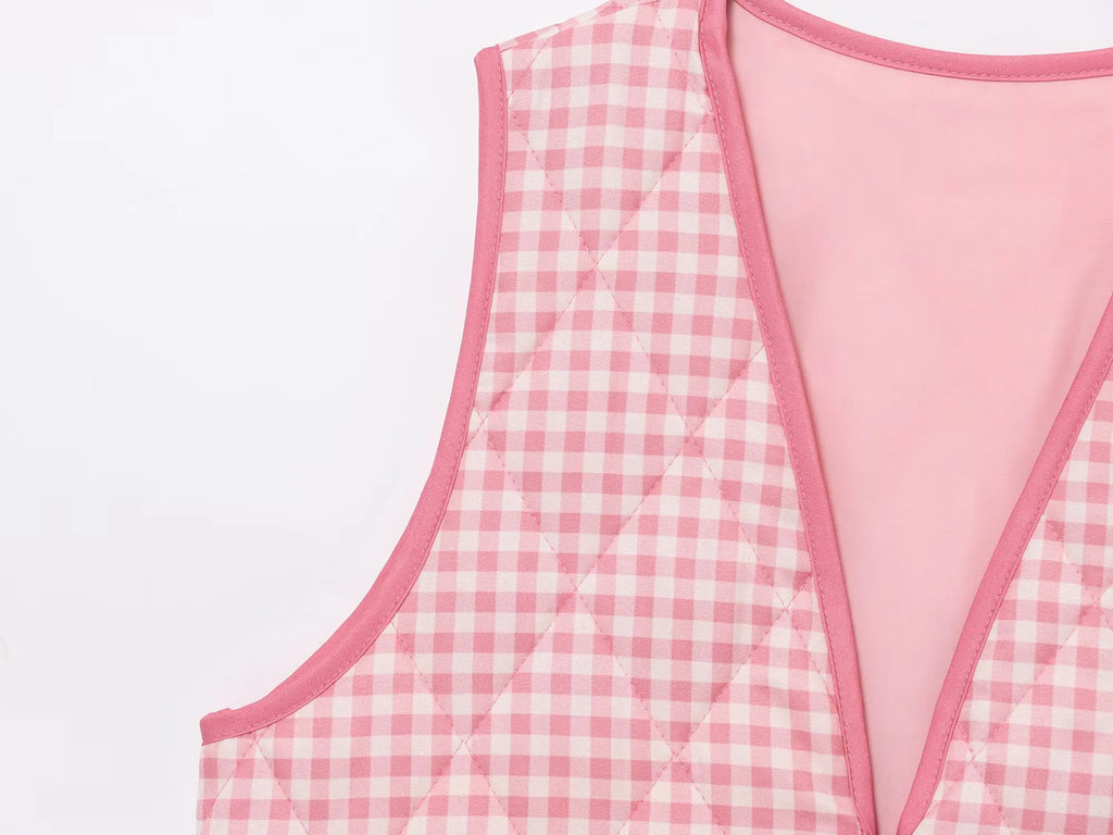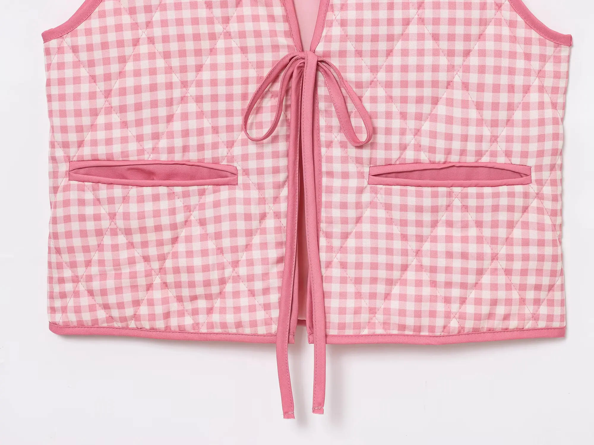 Purpdrank 2025 Women Fashion V Neck Plaid Print Lace Up Short Vest Jacket Lady Pockets Quilted Cotton WaistCoat Tops CT9214