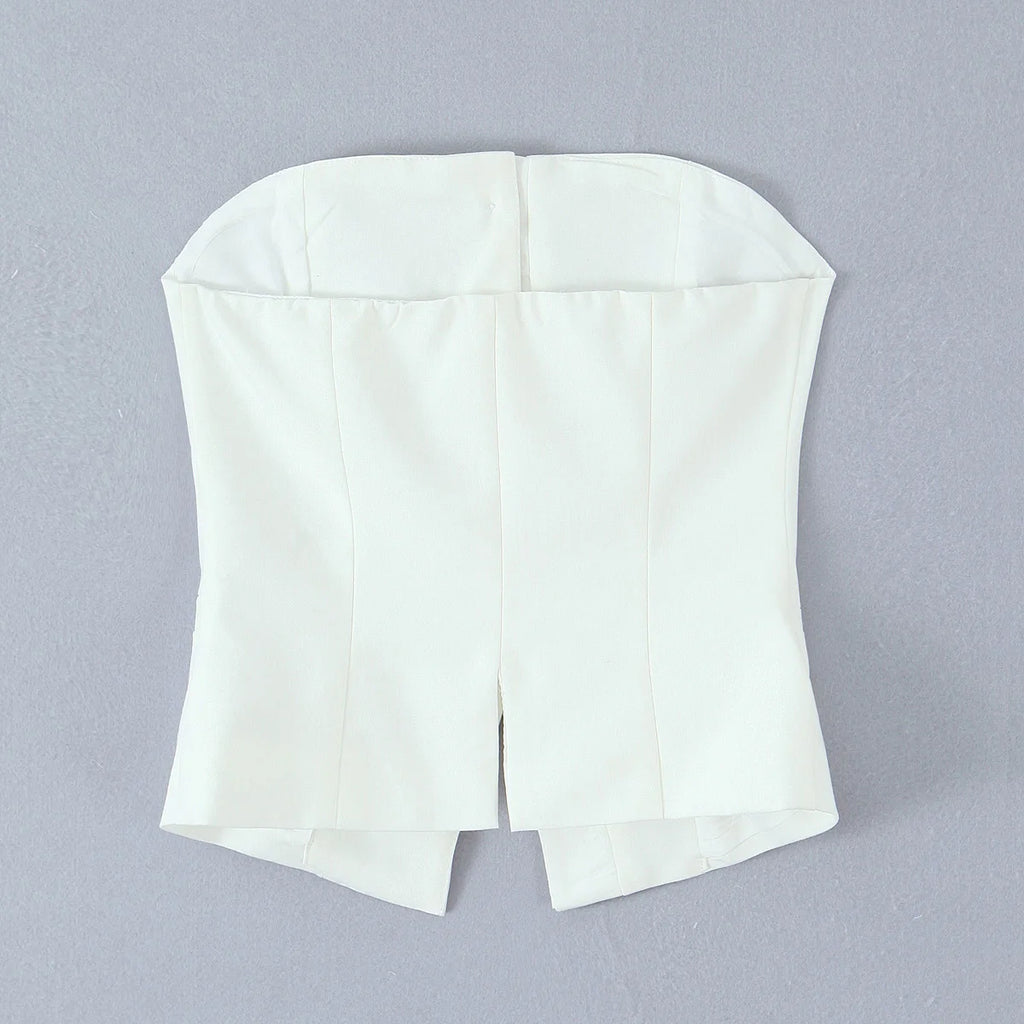 Purpdrank 3 colors Sexy Slash Collar Strapless Corset Center Open Buttons Camisole Tank Top Backless Cropped Women asymmetric Camis Top