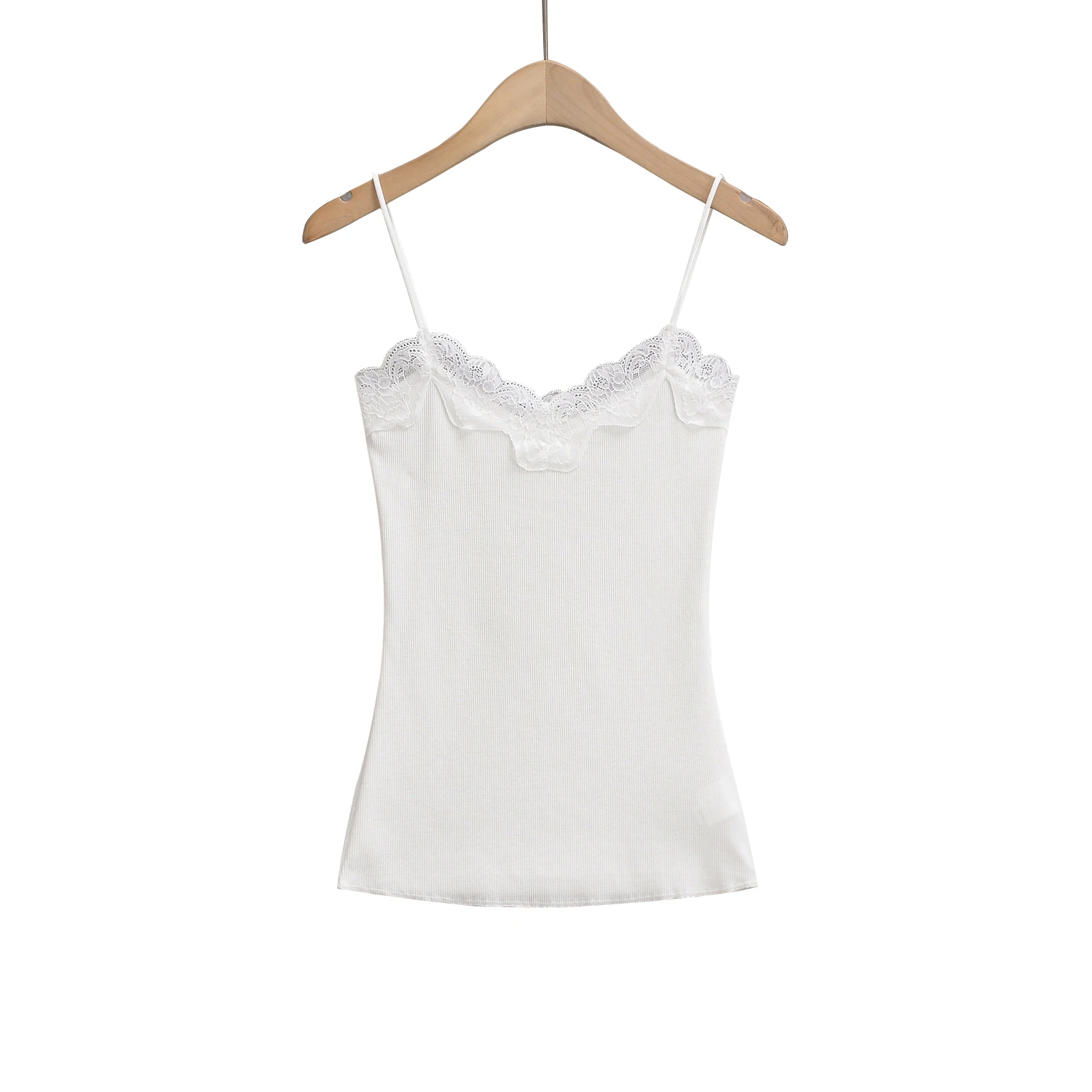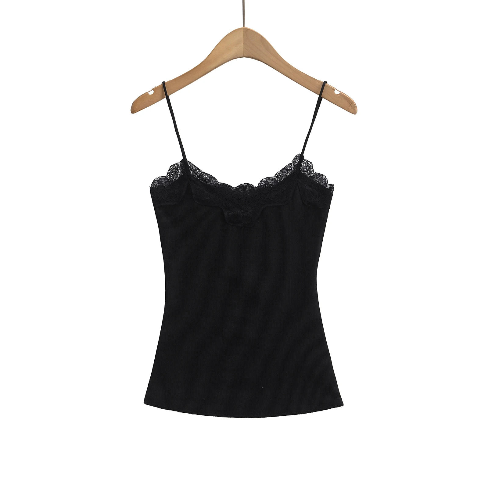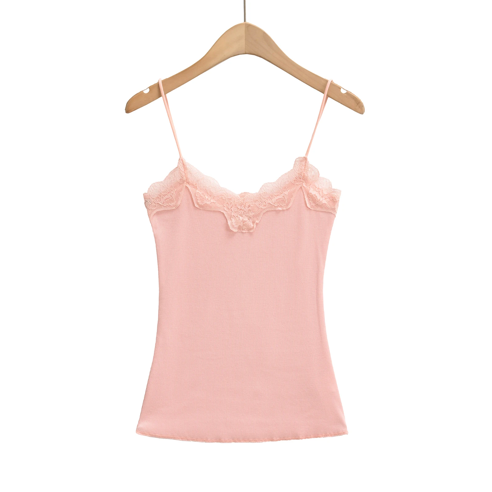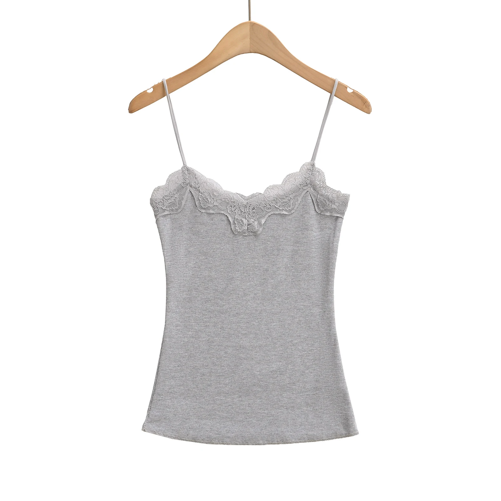 Purpdrank 5 Colors 2025 Sexy Spliced Lace V neck Slim fit Rib Knitting Camis Crop Top Comfortable Camisetas Tank Vest Skinny Short Tee