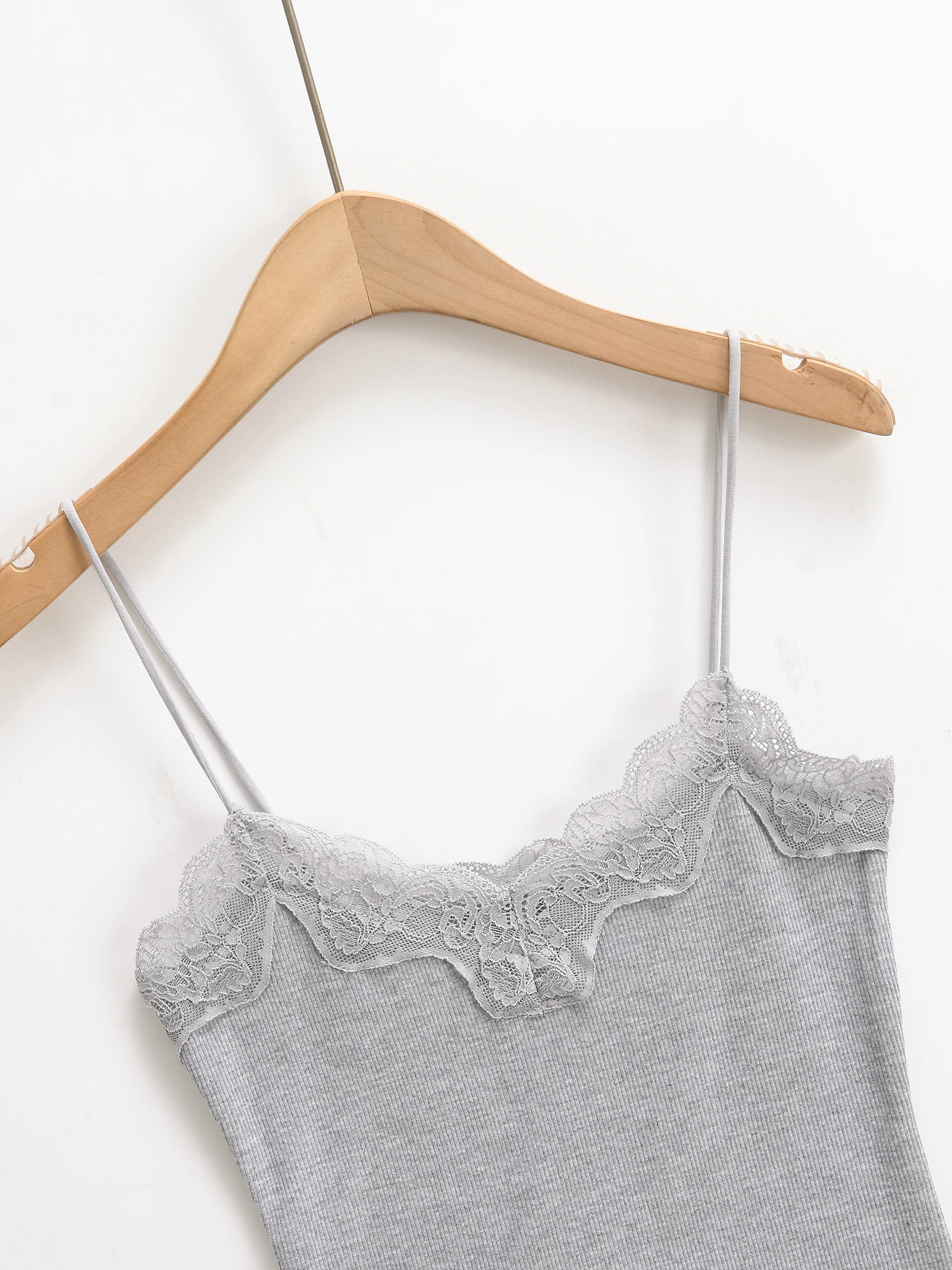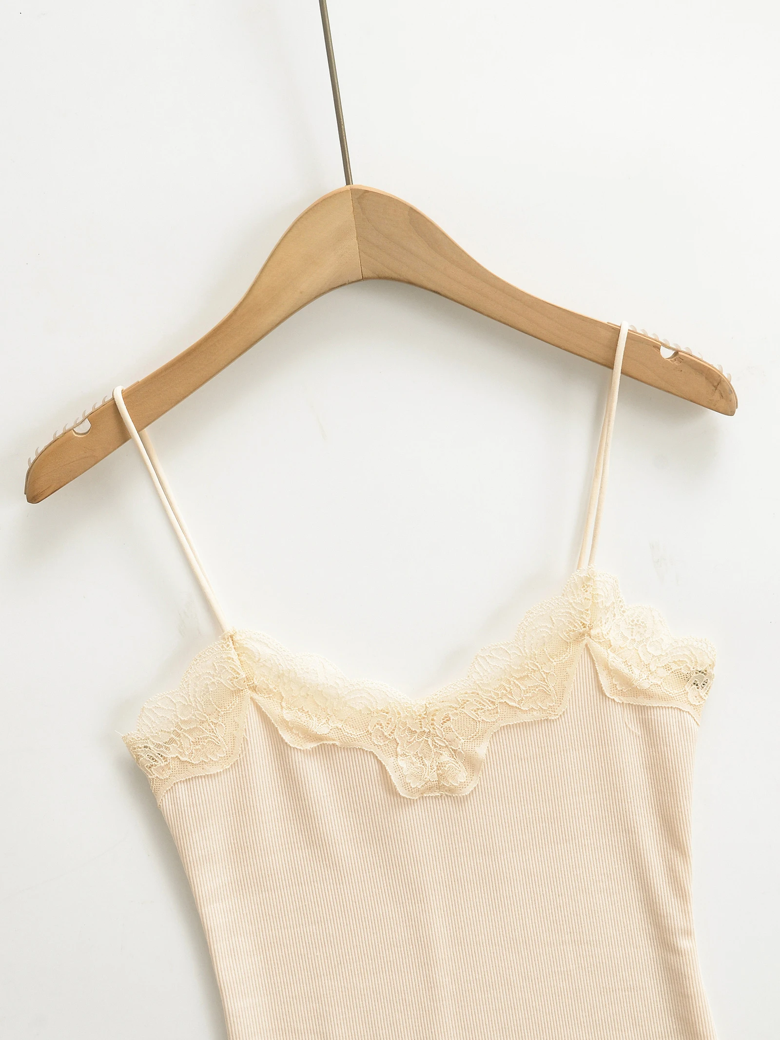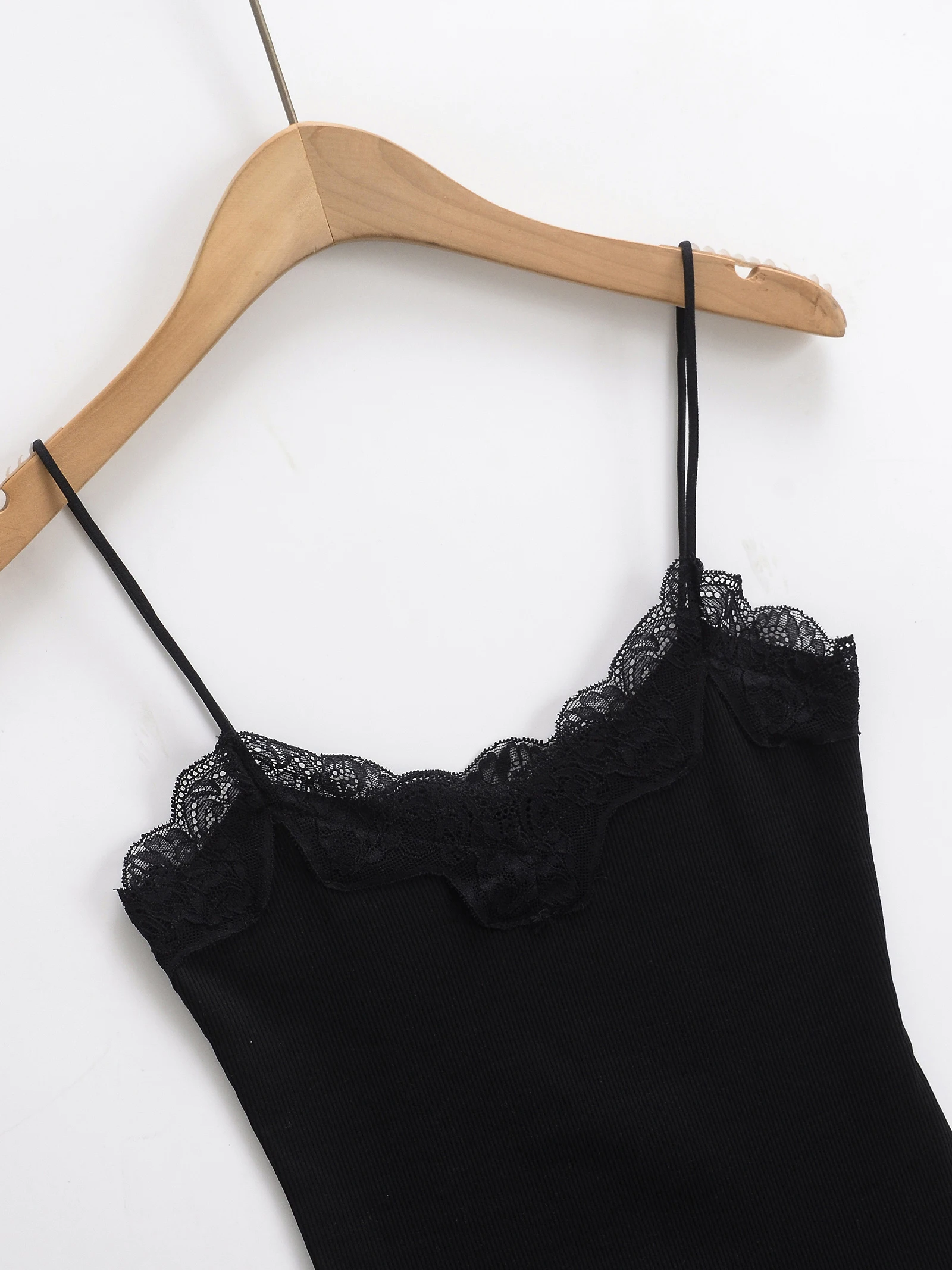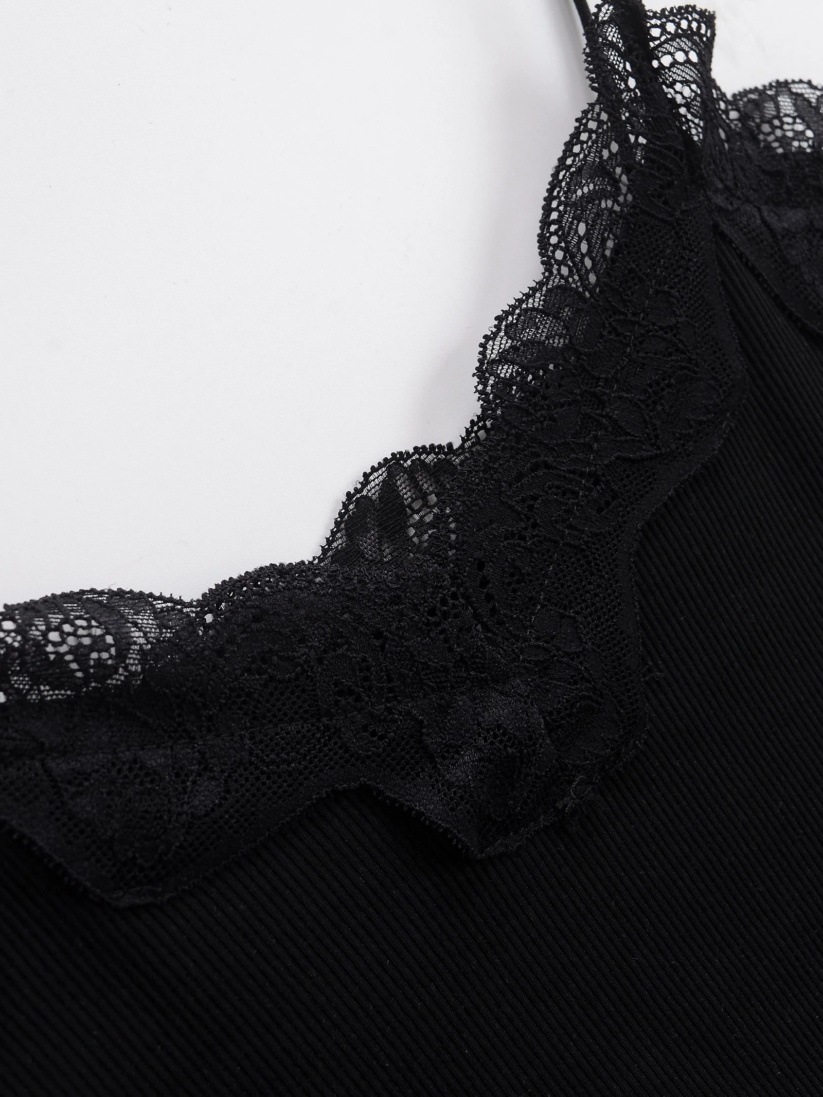 Purpdrank 5 Colors 2025 Sexy Spliced Lace V neck Slim fit Rib Knitting Camis Crop Top Comfortable Camisetas Tank Vest Skinny Short Tee