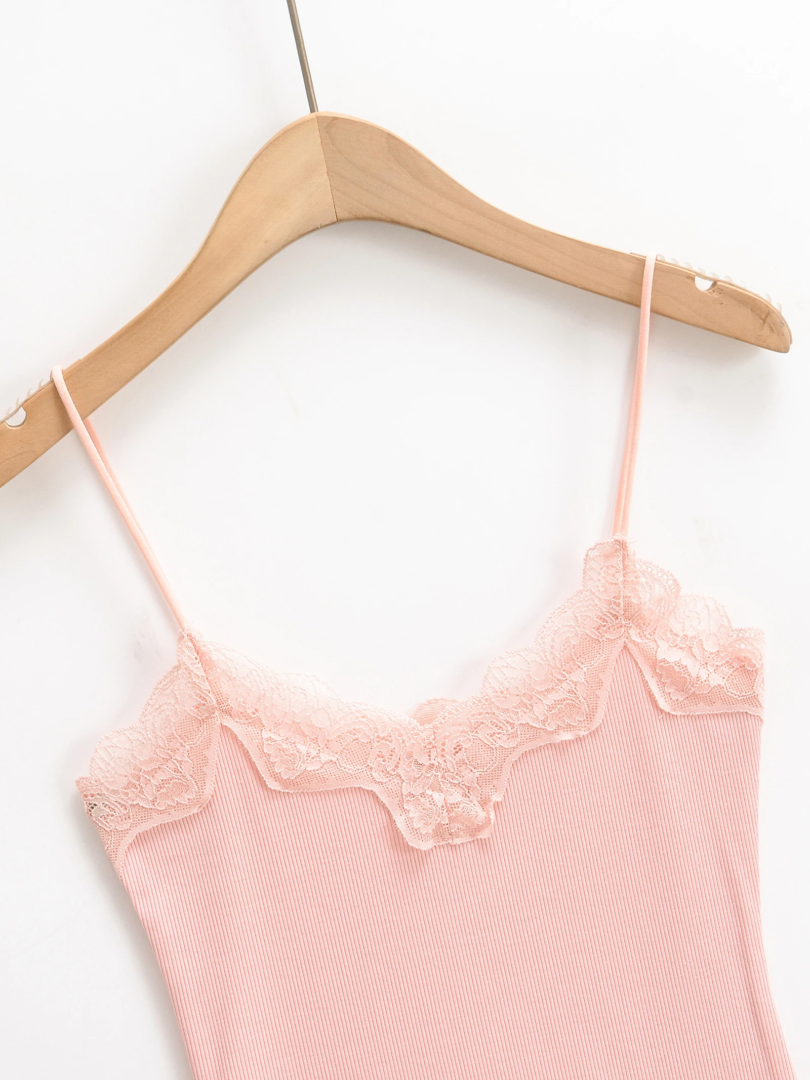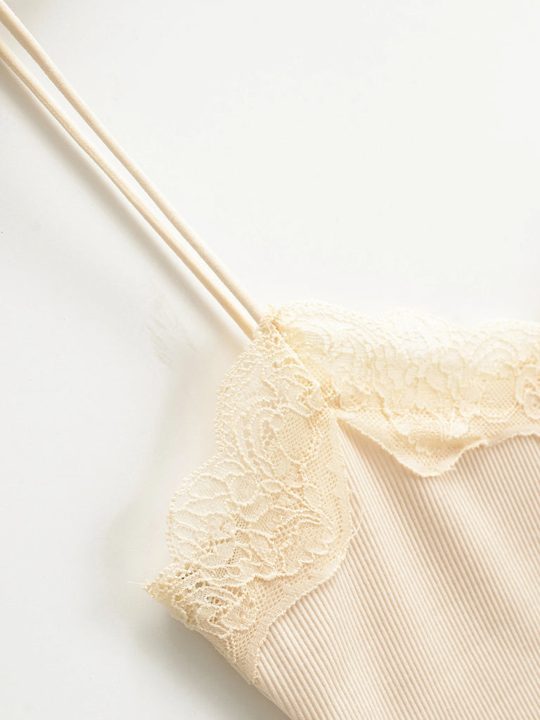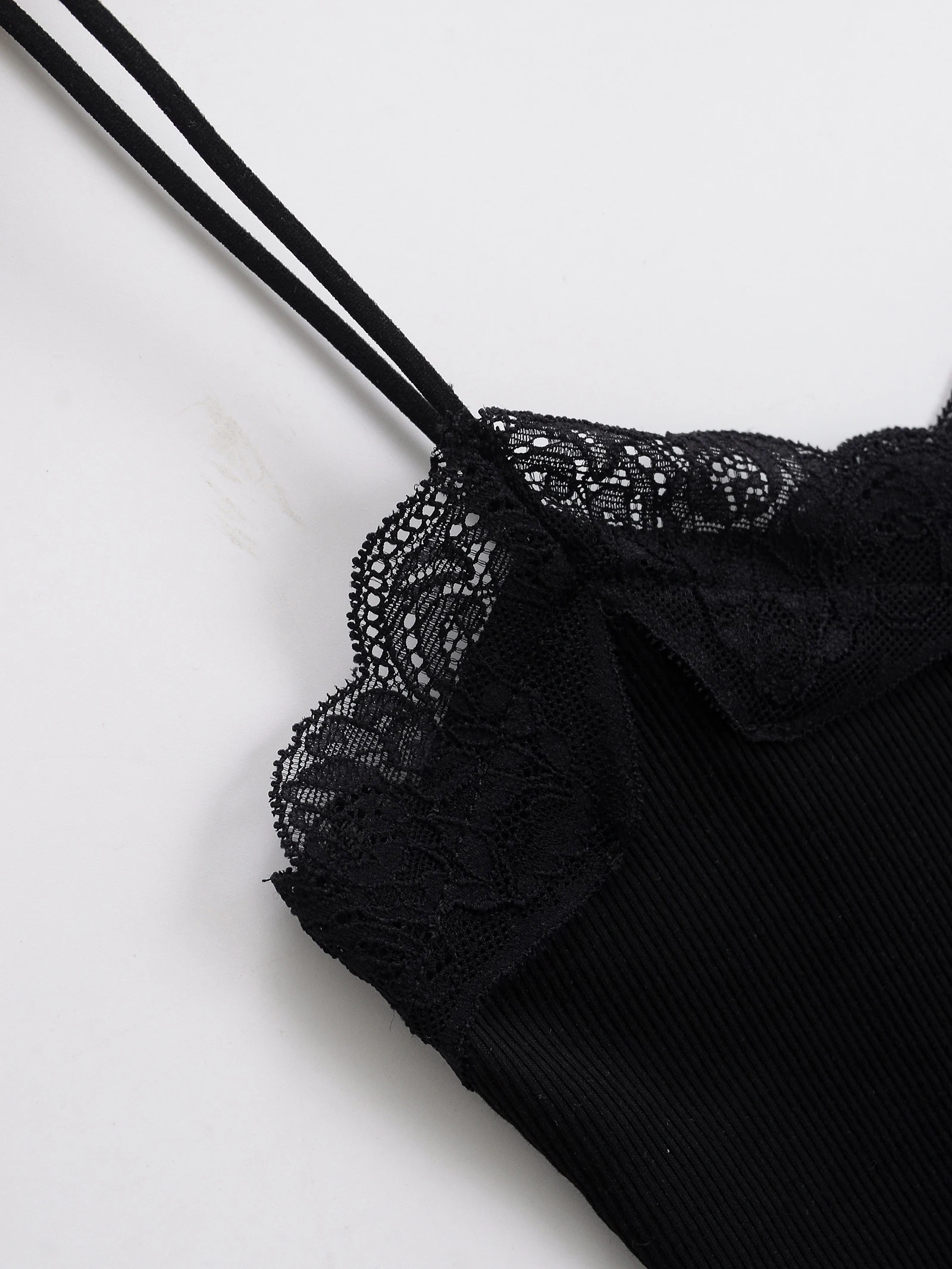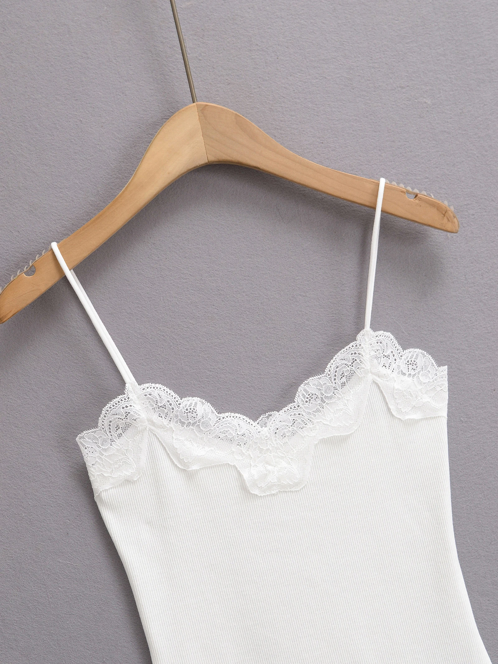 Purpdrank 5 Colors 2025 Sexy Spliced Lace V neck Slim fit Rib Knitting Camis Crop Top Comfortable Camisetas Tank Vest Skinny Short Tee