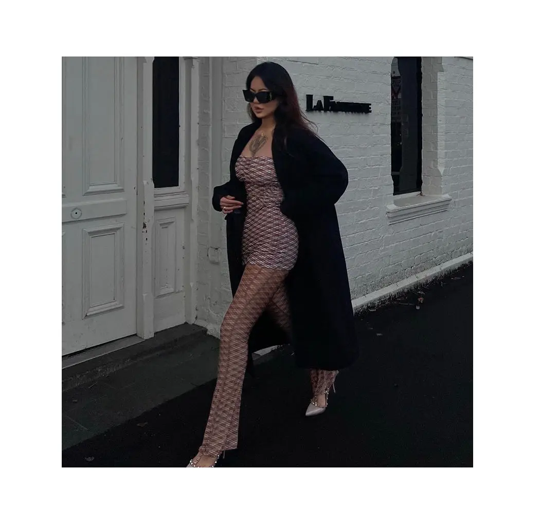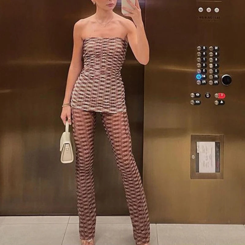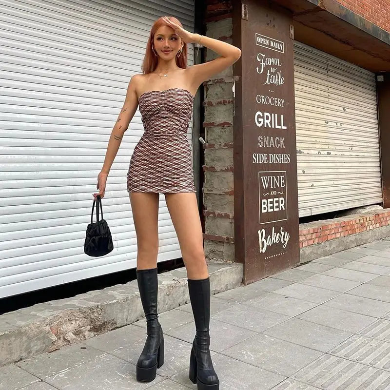 Purpdrank American Spice Girl Style Printed Tube Top Backless Short Skirt Sexy Slim Trousers Suit on Summer Street