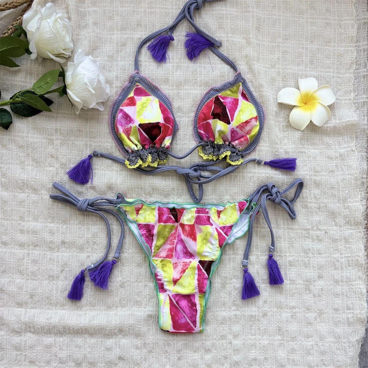 Purpdrank Bandeau Biquini Women Sexy Bikini Push Up Swimsuit Female Swimwear Floral Printed Swim Suit Halter Bathingsuit Beachwear