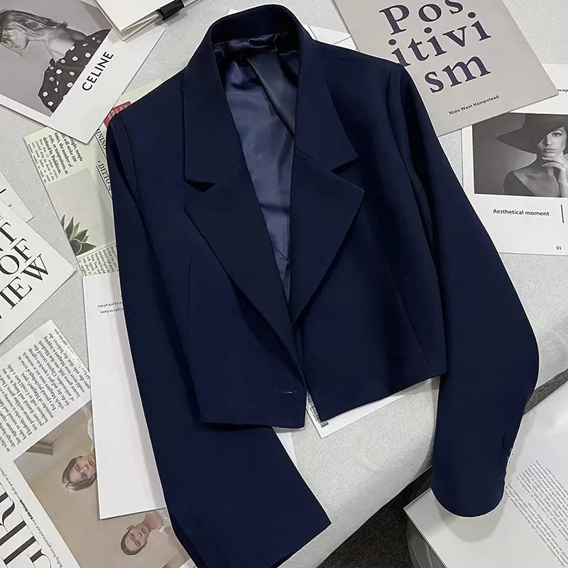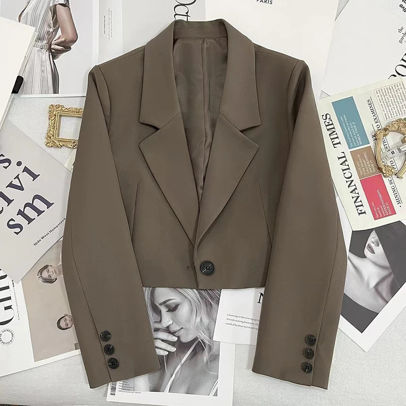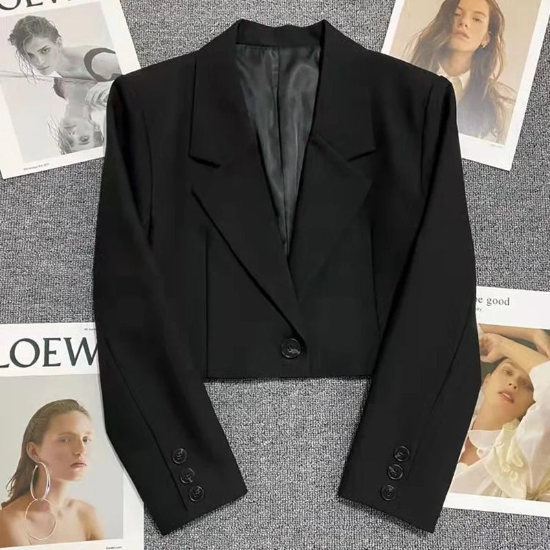 Purpdrank Black Cropped Blazers Women Fashion All-Match Notched Collar Crop Jacket Women Korean Chic Single Button Casual Suit Coat New