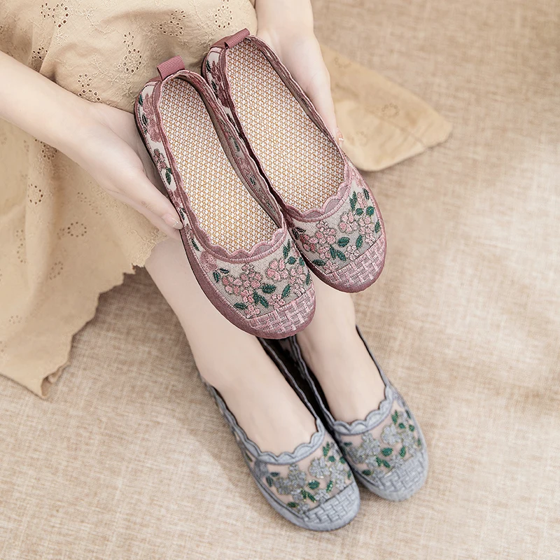 Purpdrank Breathable Shoes Espadrilles For Women Slip-on Tennis Summer New Slip On Embroider Canvas Floral Fabric Espadrille Shoes Slip-on