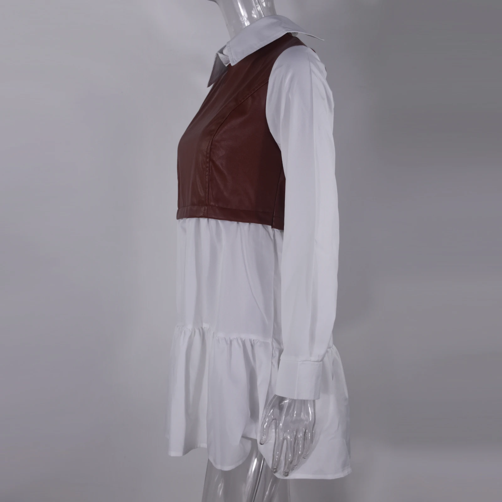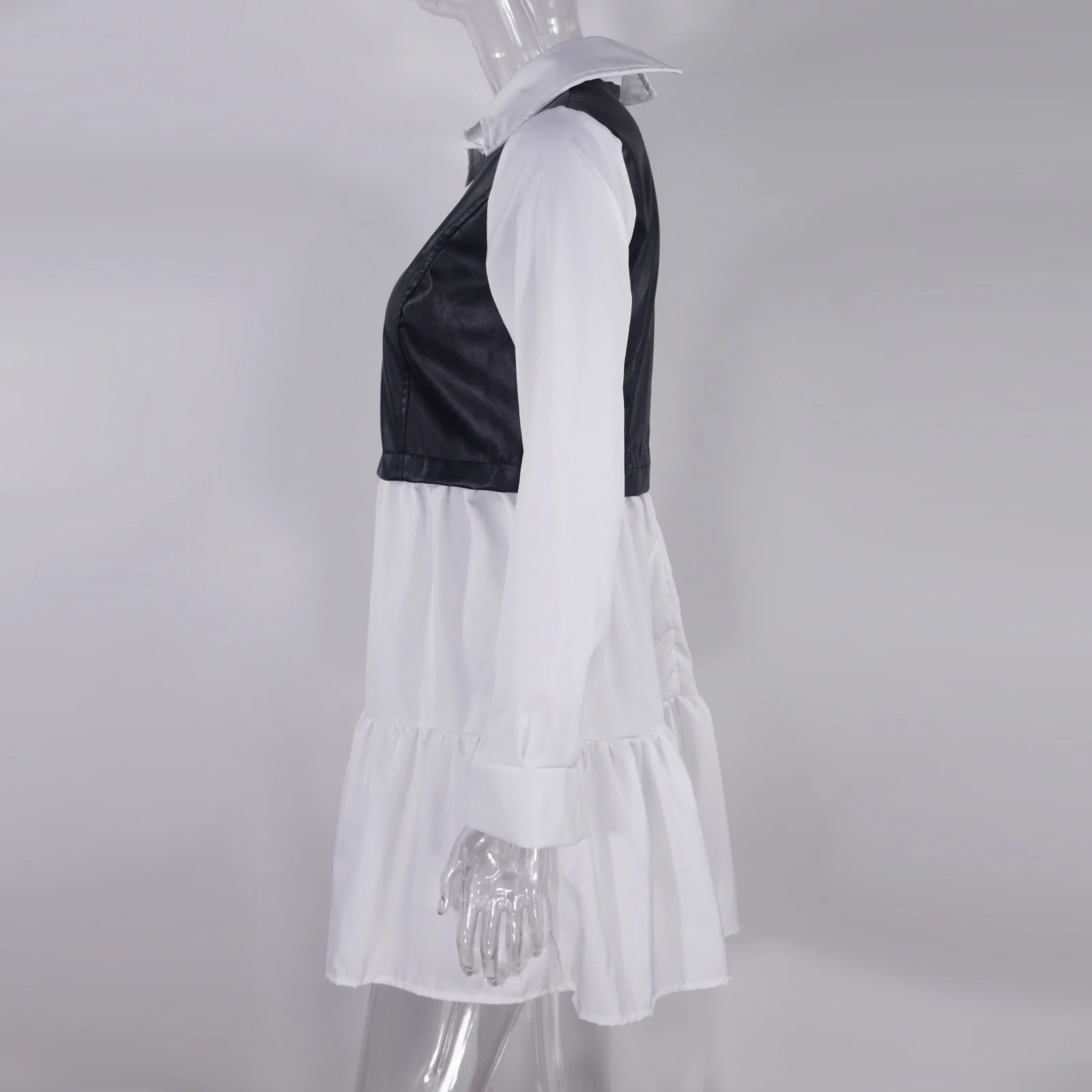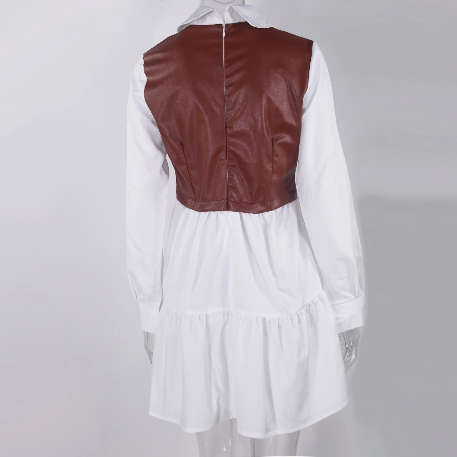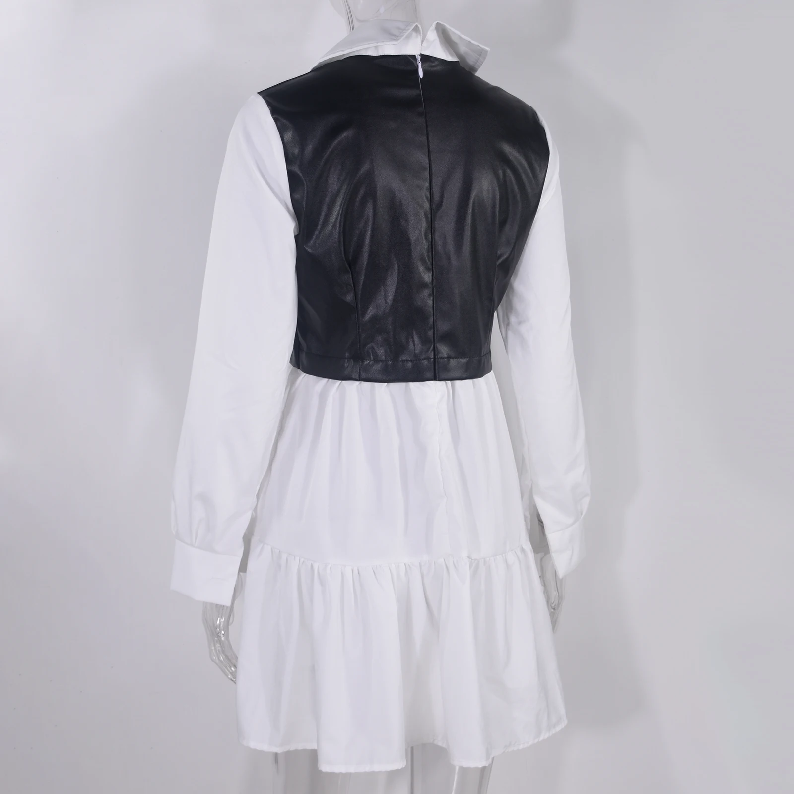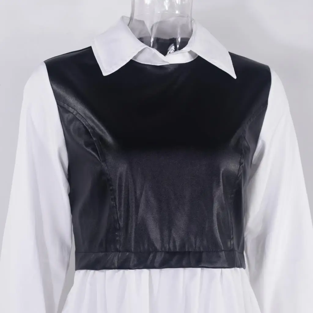Purpdrank Casual Long Sleeve Mini Shirt Dress For Women White 2025 Spring PU Leather Patchwork Plaid Woman Dresses