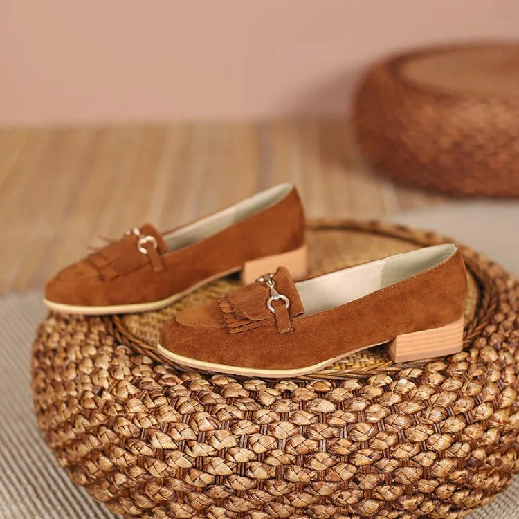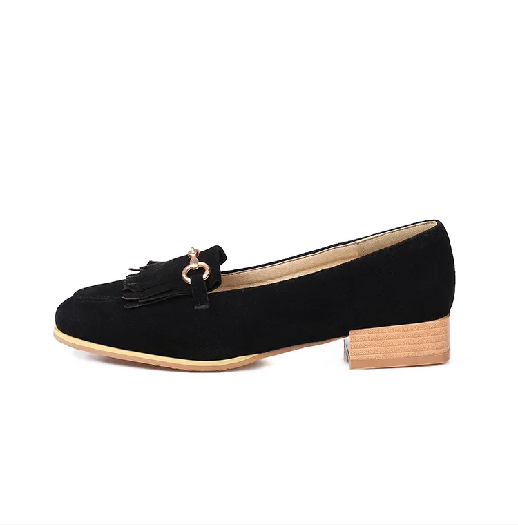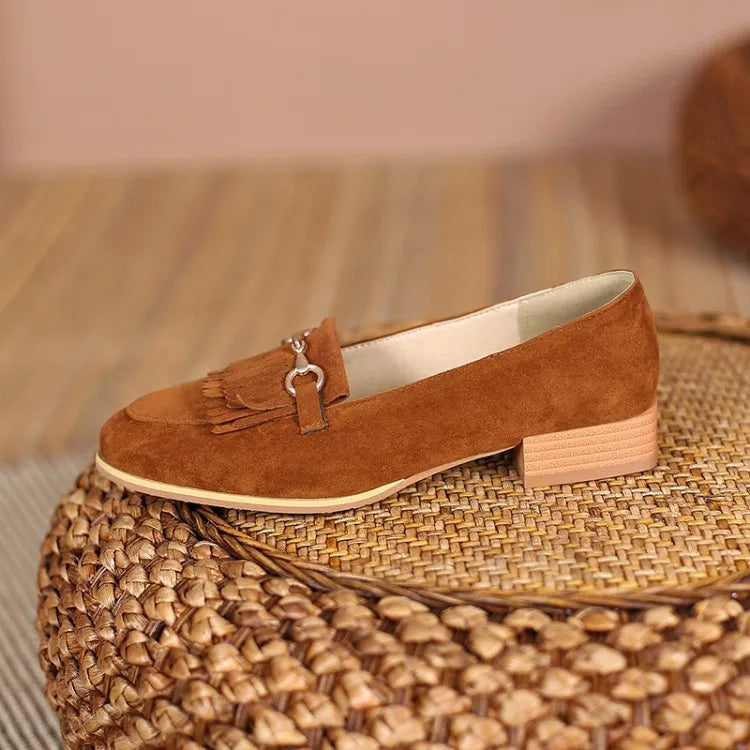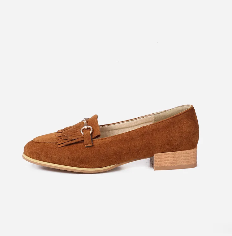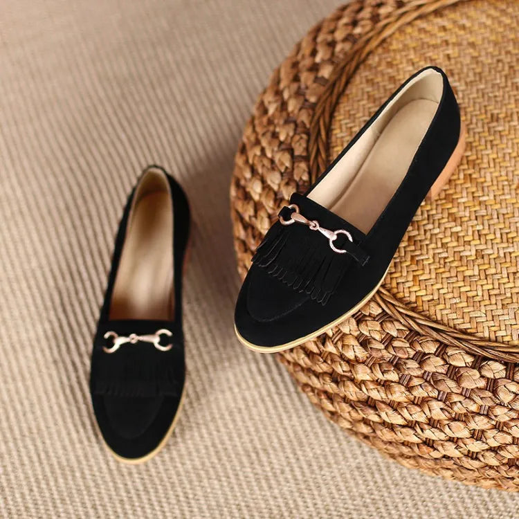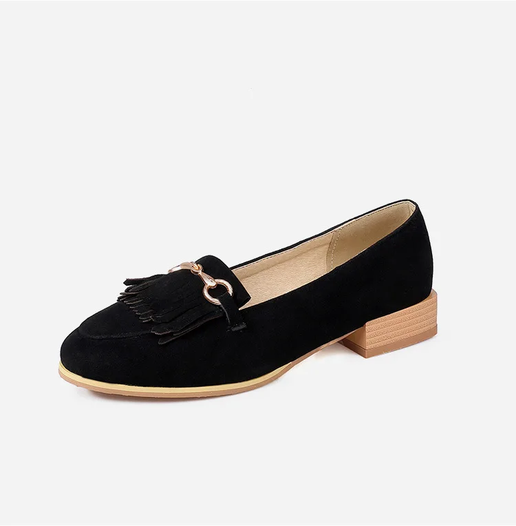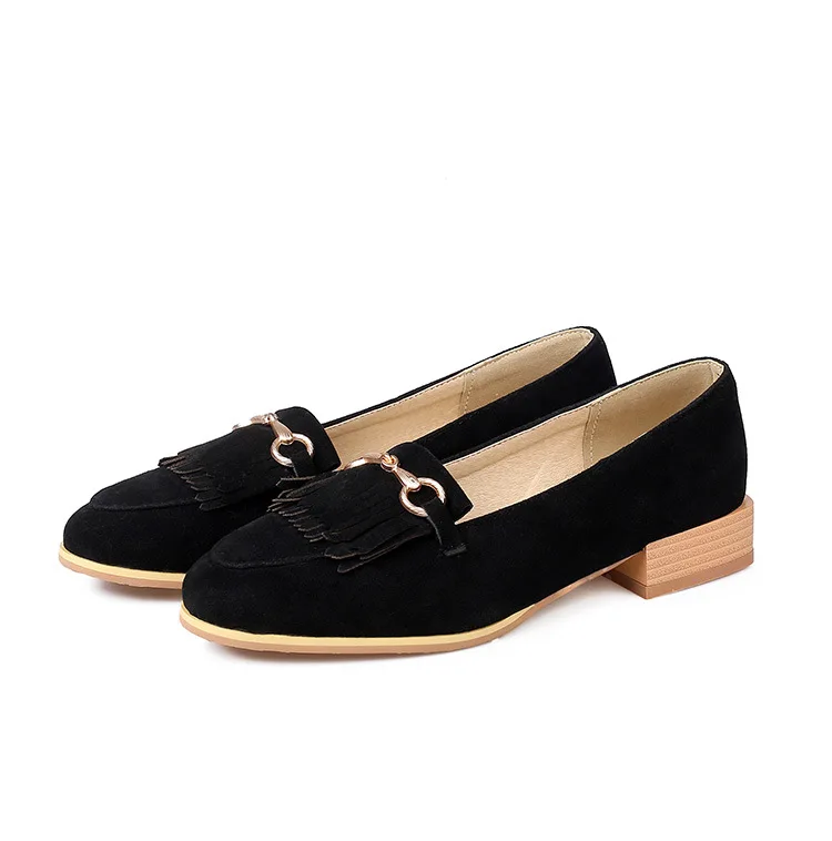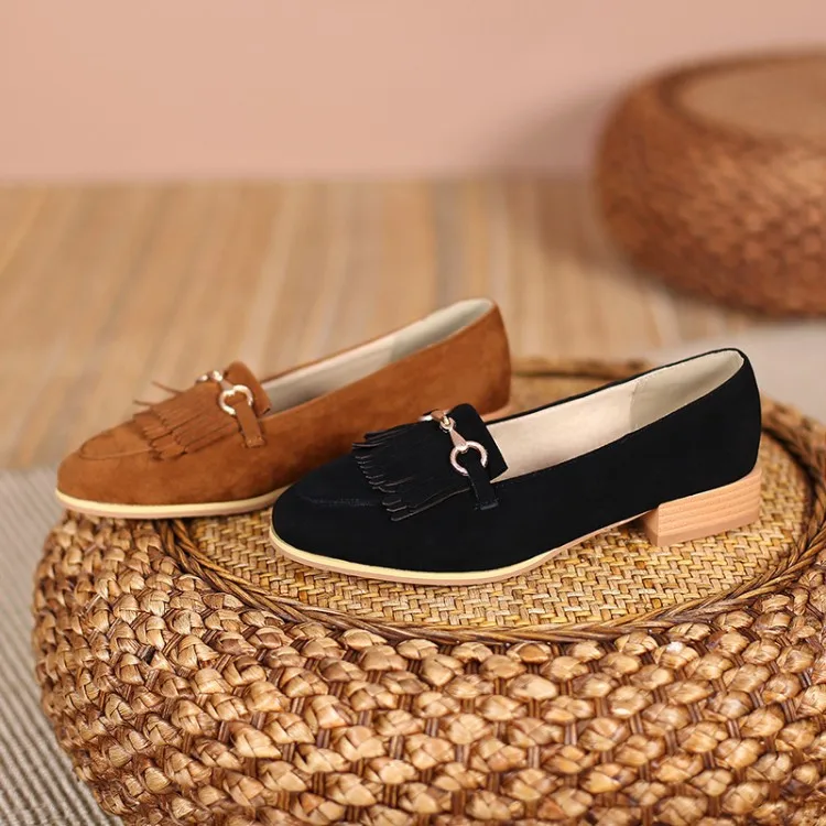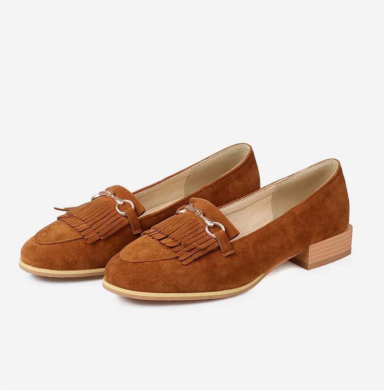 Purpdrank Casual Woman Shoe Female Footwear Metal Chain British Style Round Toe Fringe Shallow Mouth Dress Buckle Preppy Tassel Big Size R