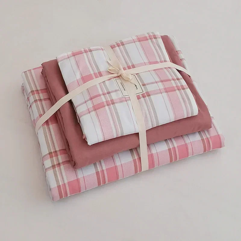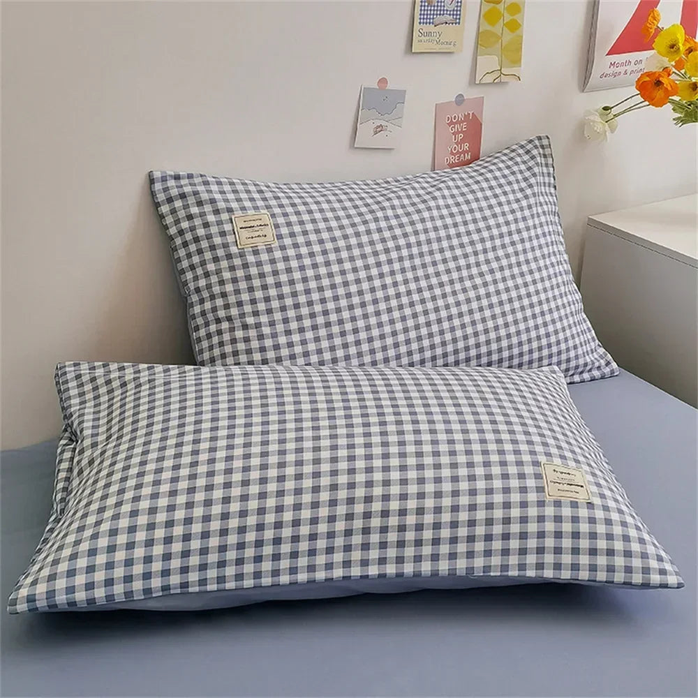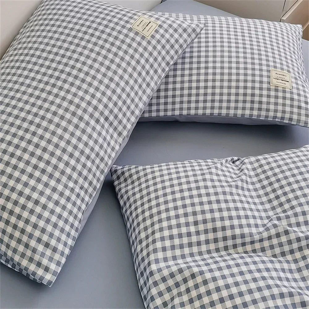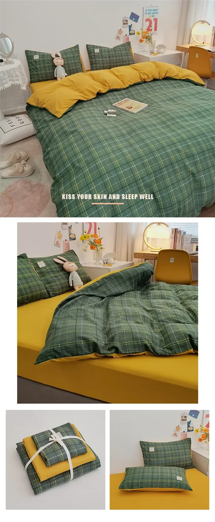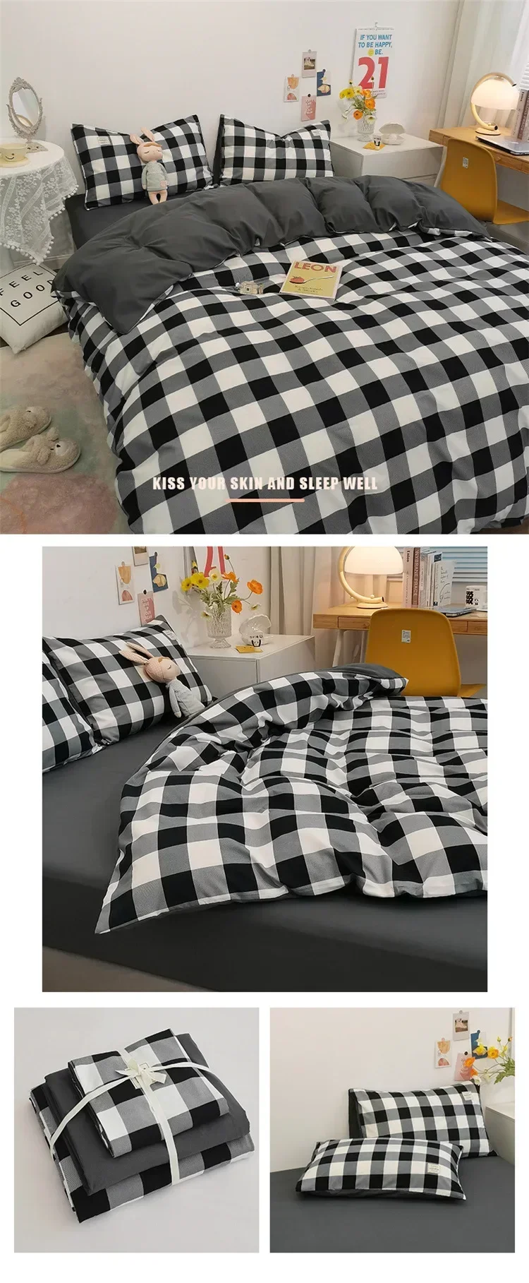 Purpdrank Checkered washed cotton 4-piece bed sheet set, 4-piece simple quilt set, student dormitory bedding set