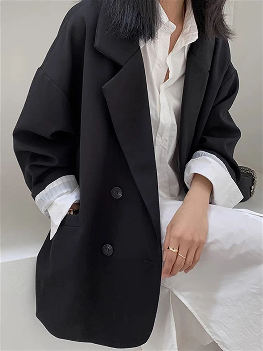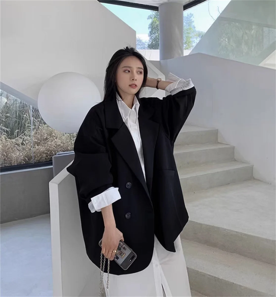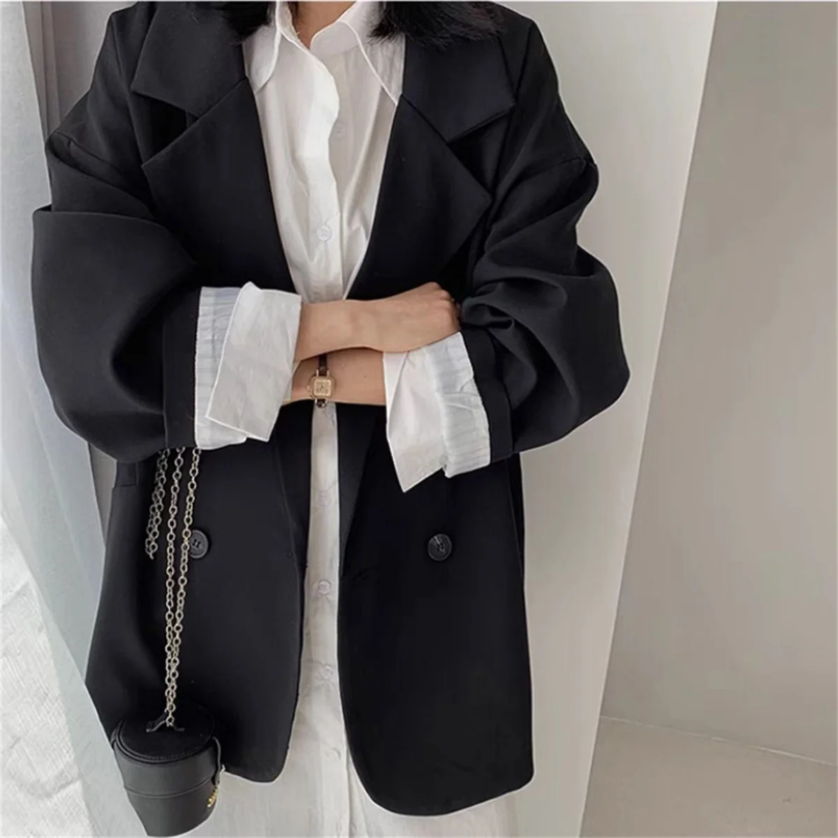 Purpdrank  Chic Black Blazer Casual Coat Streetwear Loose Jackets Solid Oversize Blazer Women Suit Korean Women's Clothing Student New