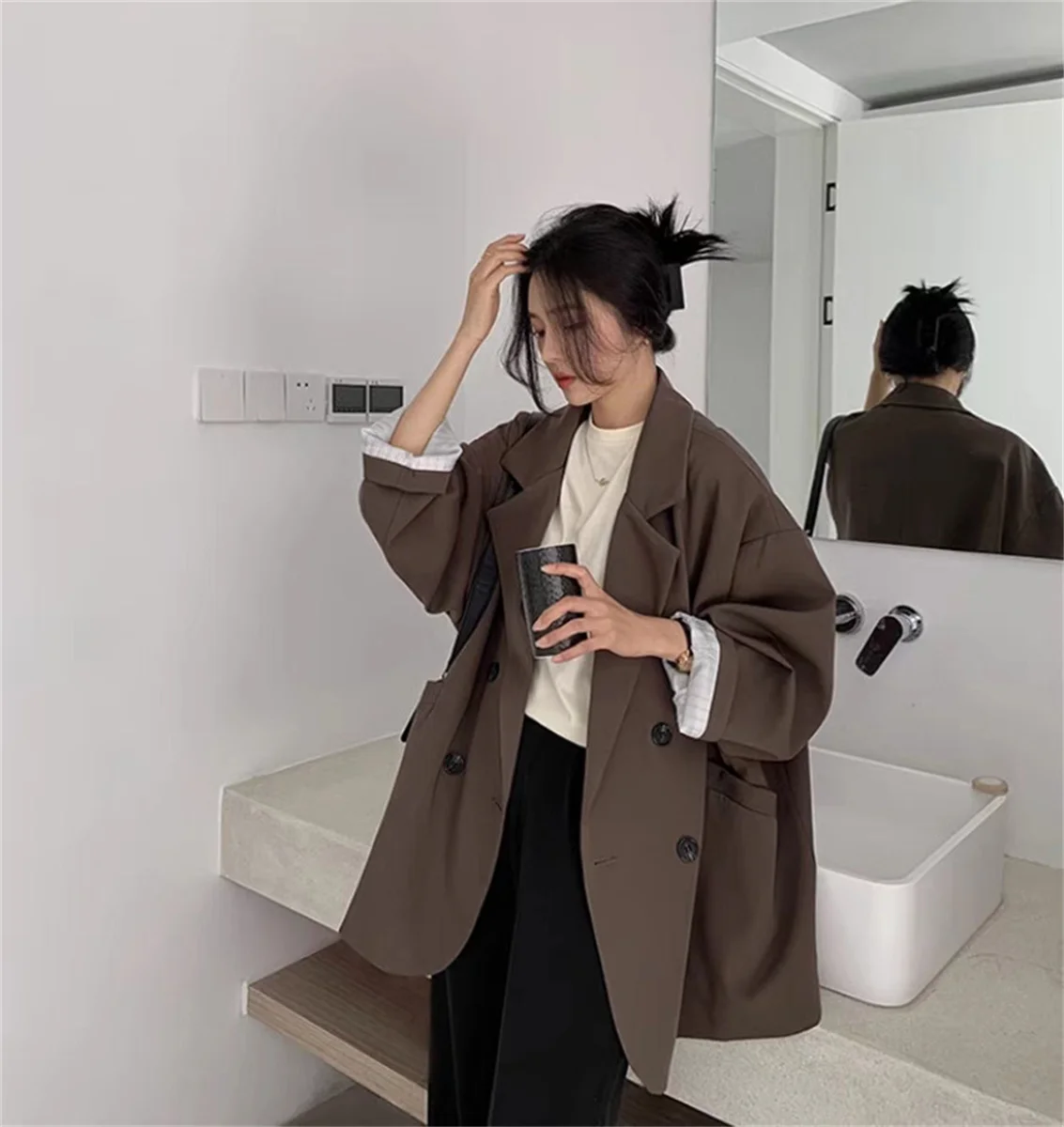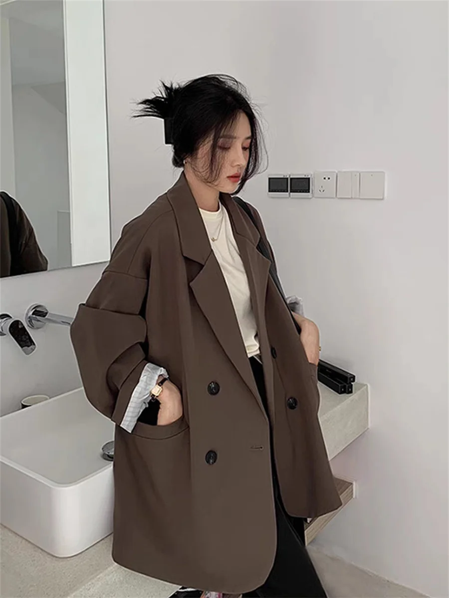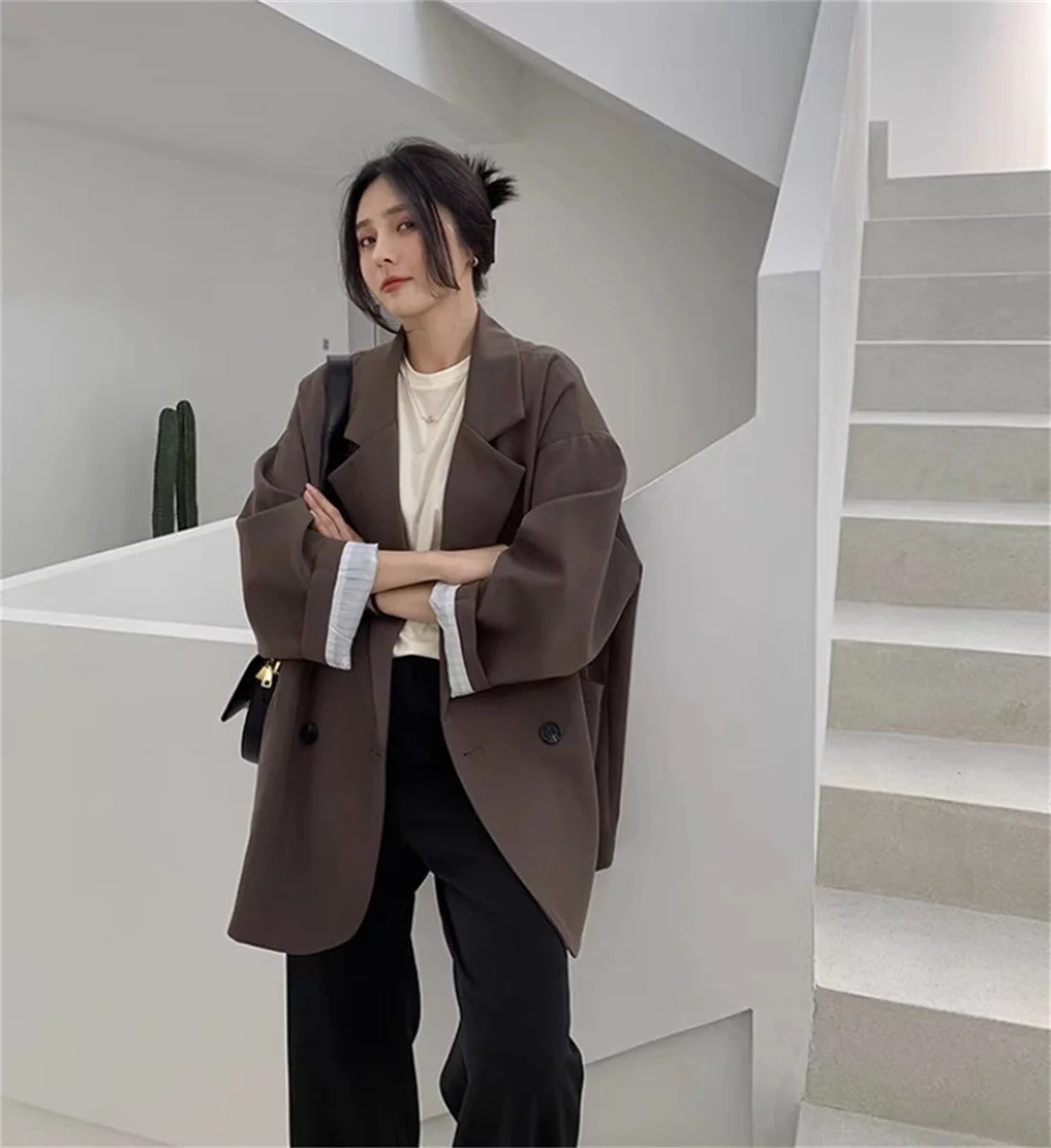 Purpdrank  Chic Black Blazer Casual Coat Streetwear Loose Jackets Solid Oversize Blazer Women Suit Korean Women's Clothing Student New