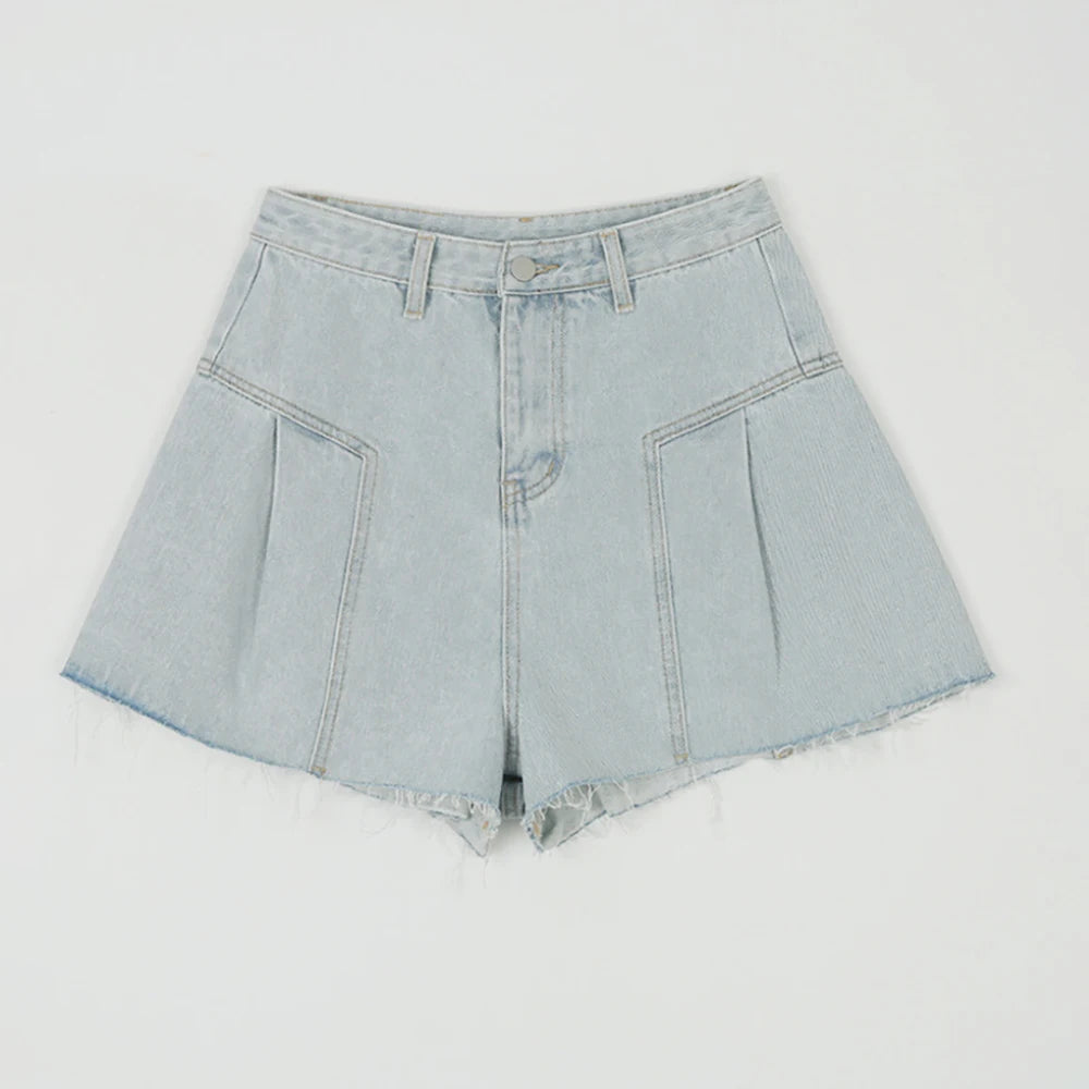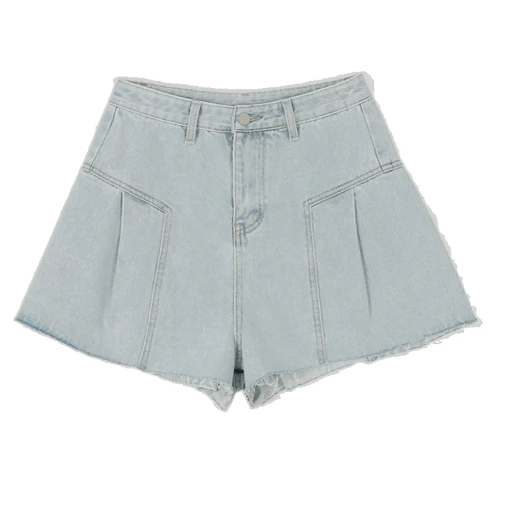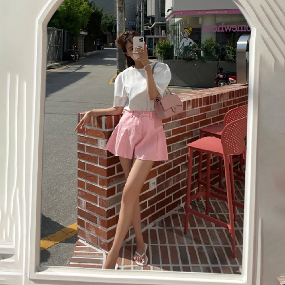 Purpdrank Chic Pink Wide Leg Denim Shorts Women Summer High Waist A-line Hot Pants Korean Style Female Solid Color Jeans Shorts Streetwear