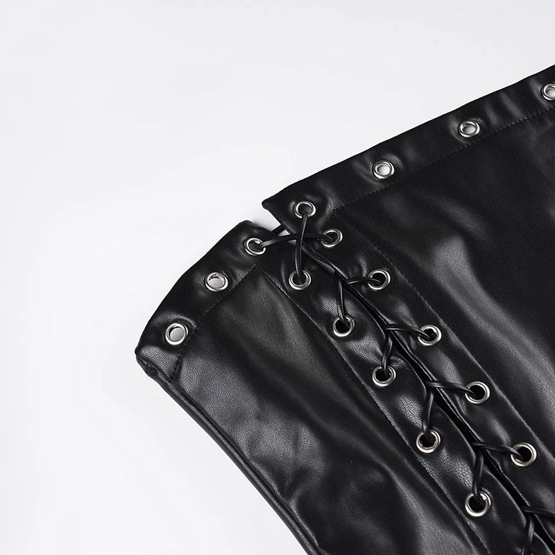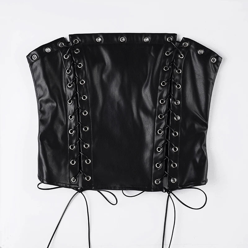 Purpdrank Dark Sexy Pu Leather Bandage Tube Tops Slim-Fitting Slash Neck Sleeveless Tank Tops Women Summer Fashion Streetwear Ladies