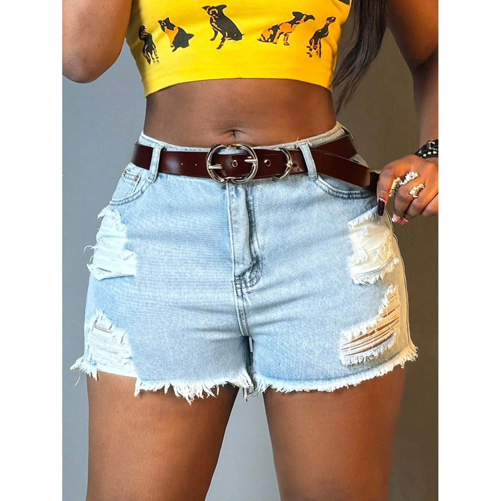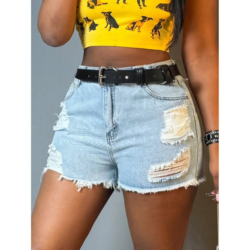 Purpdrank Denim Ripped Jeans Women Shorts Washed Vintage High Waist Holes Bleached Pockets Sexy Loose Y2k Straight Distressed 2025 Basics