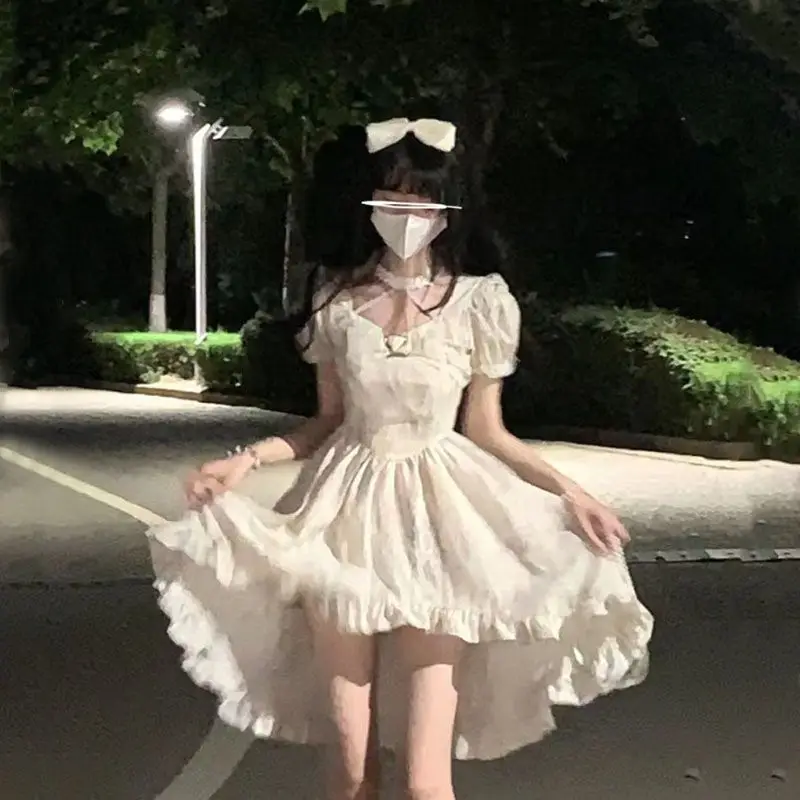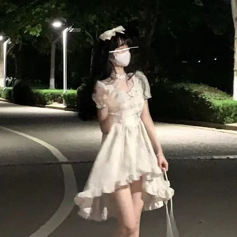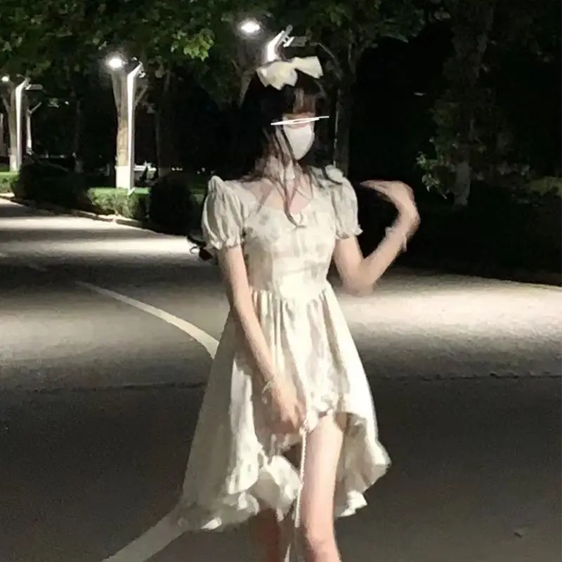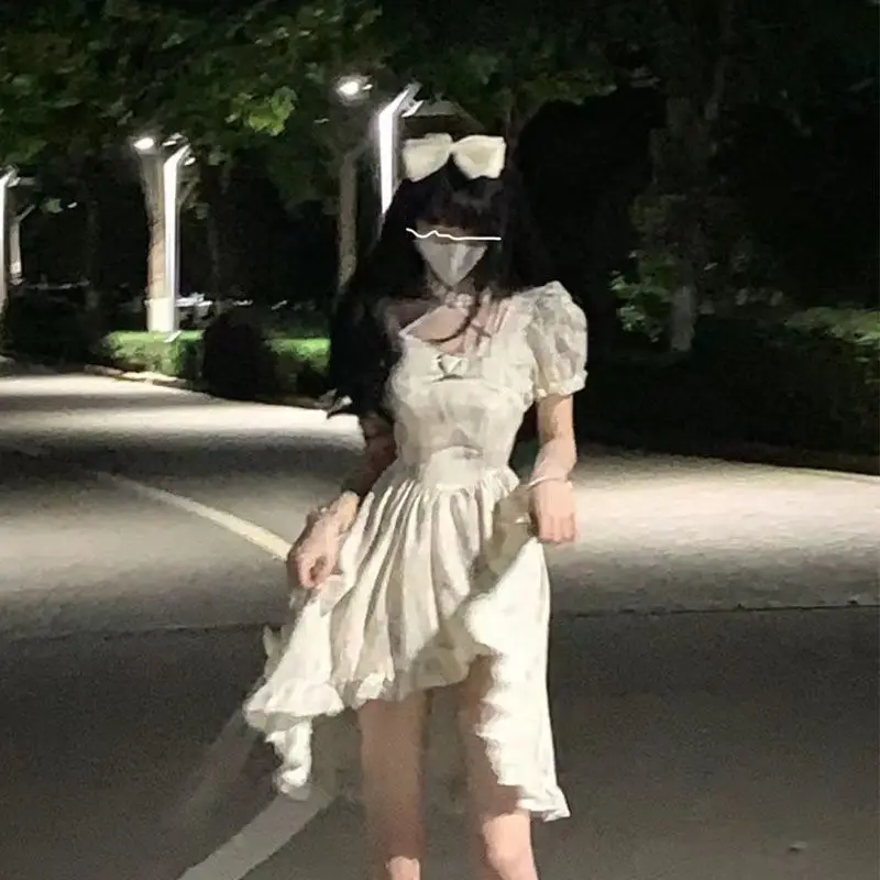 Purpdrank Design of the First Love of the Mori Series Is Square-necked and the Princess Dress with Waist-hugging and Pure Slim Skirt