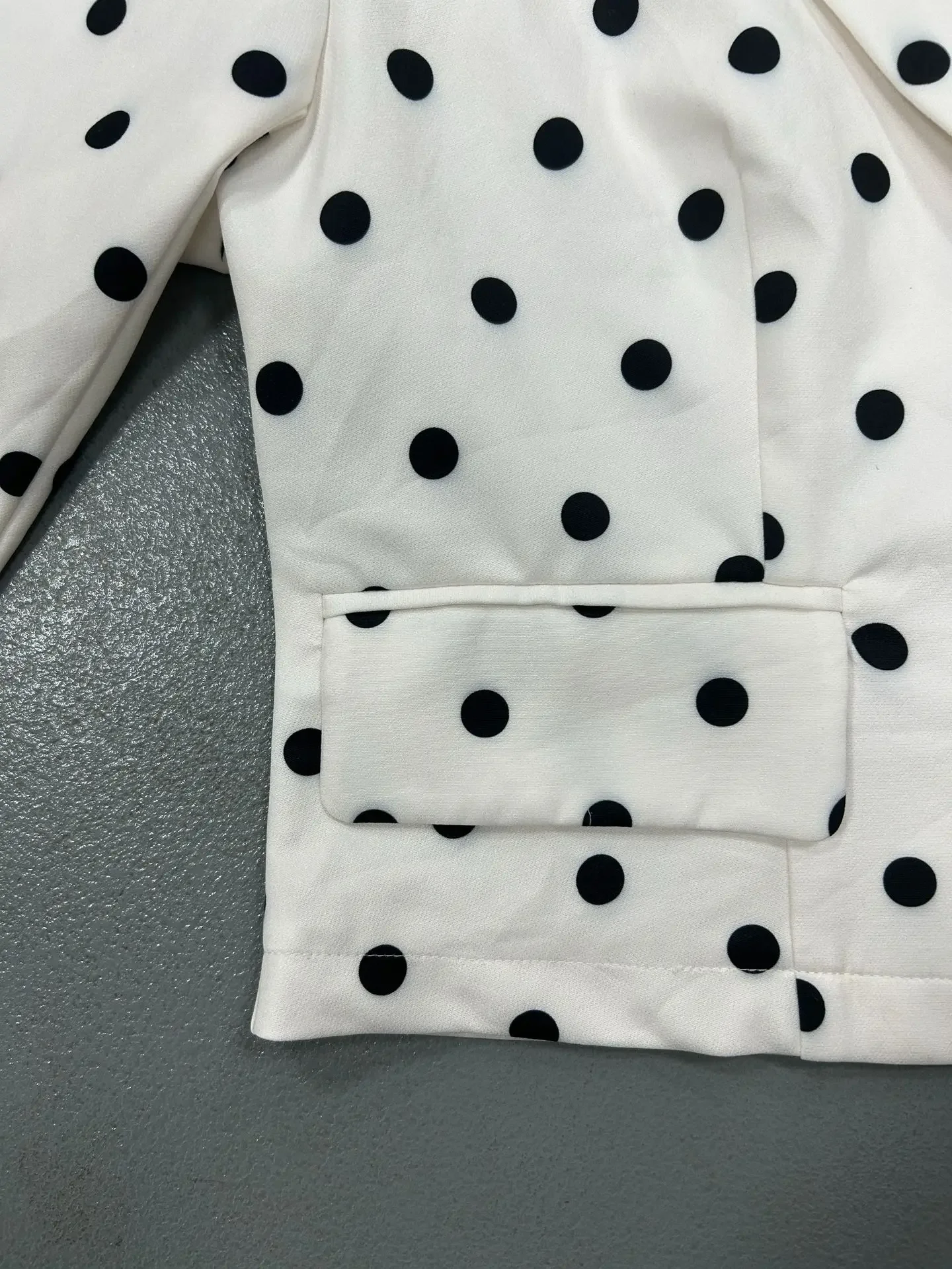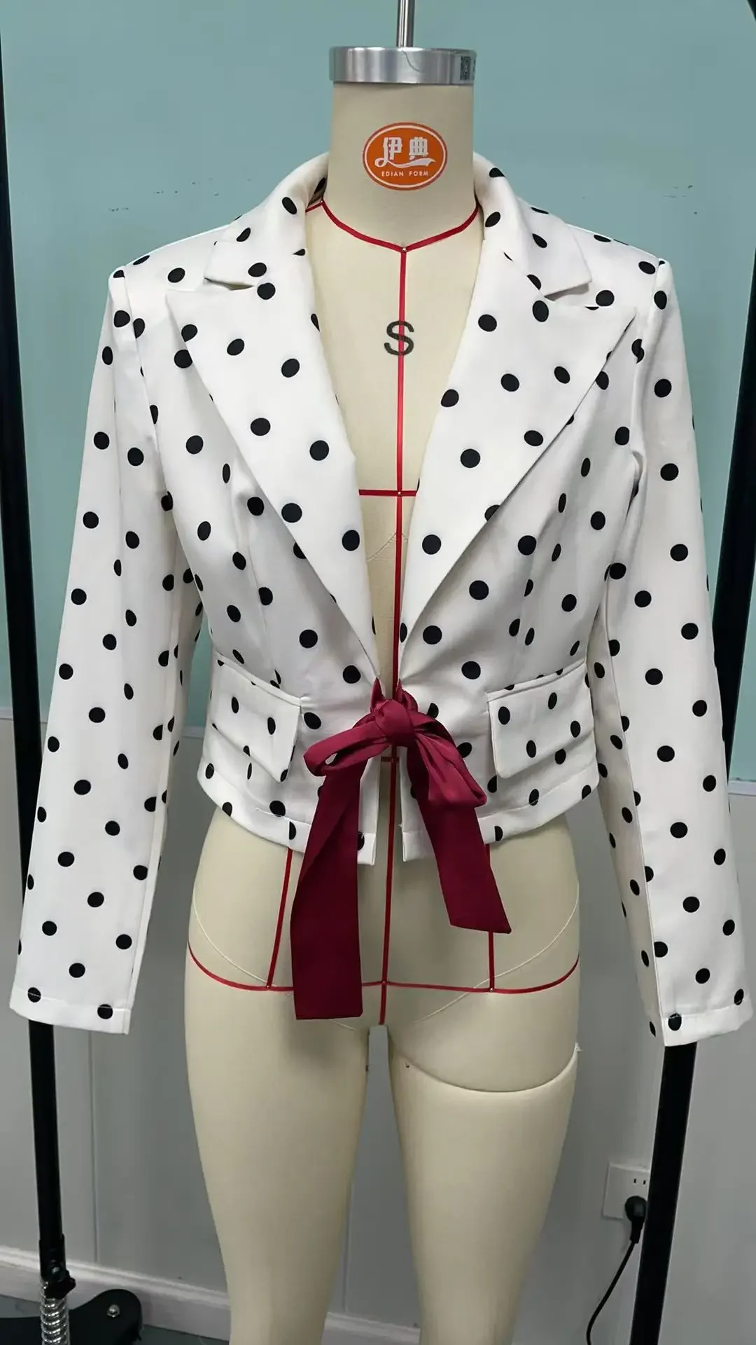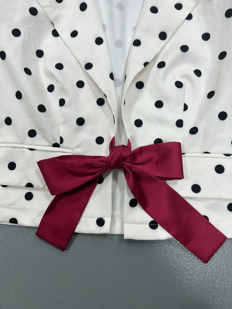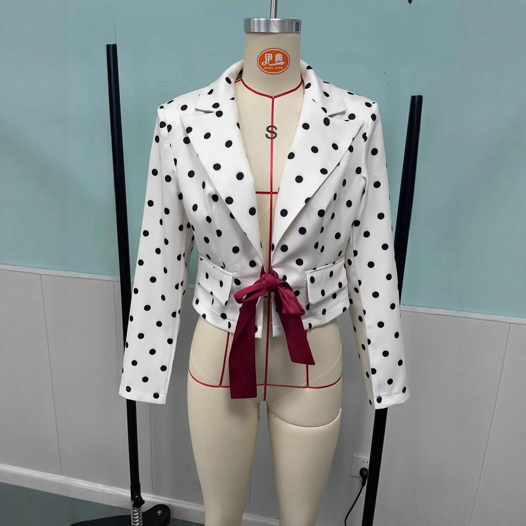 Purpdrank Elegant Casual Women's Suit Coat with Bow Tie Decor Polka Dot Pattern Regular Sleeve Length Full Polyester Fiber