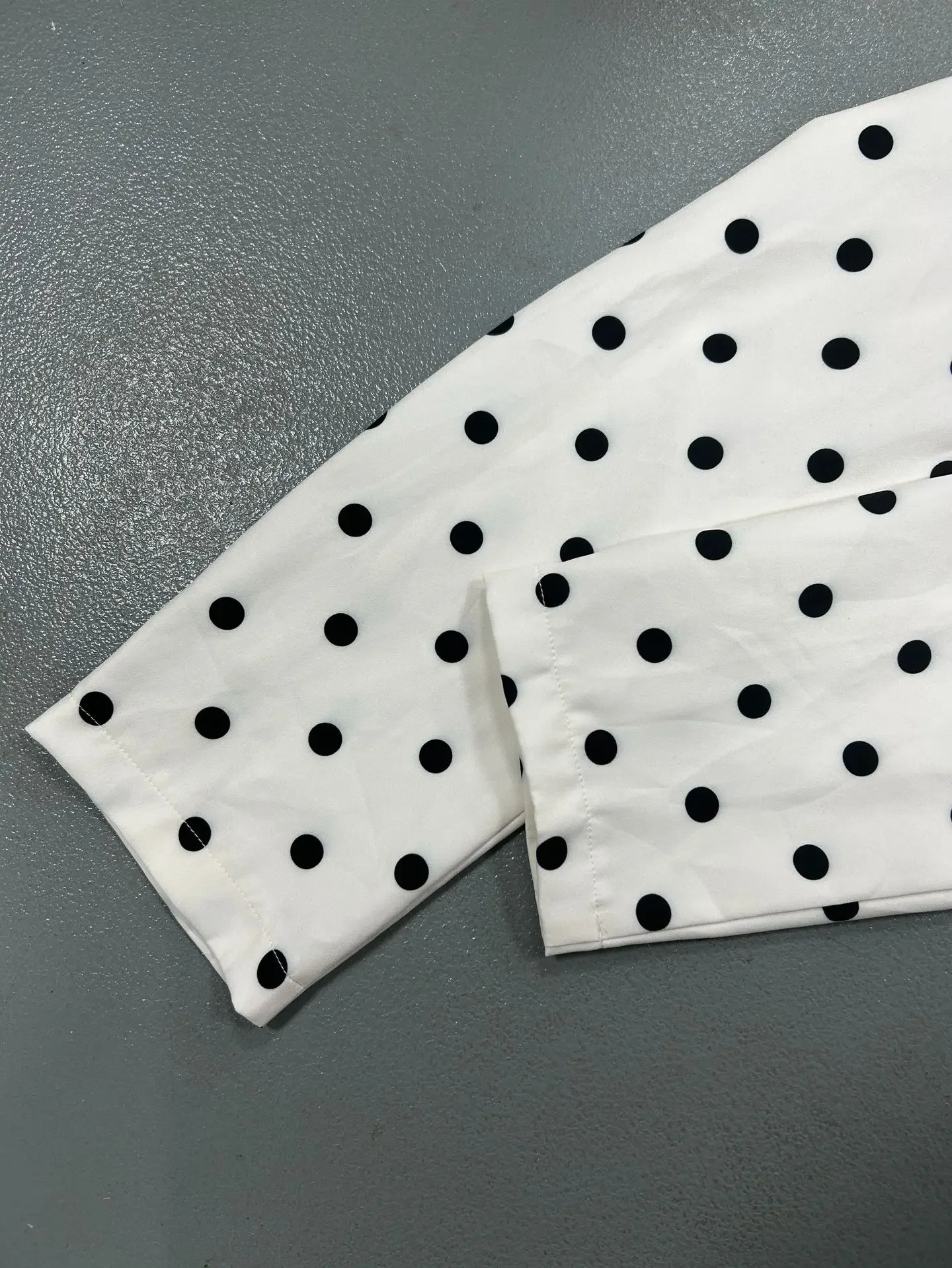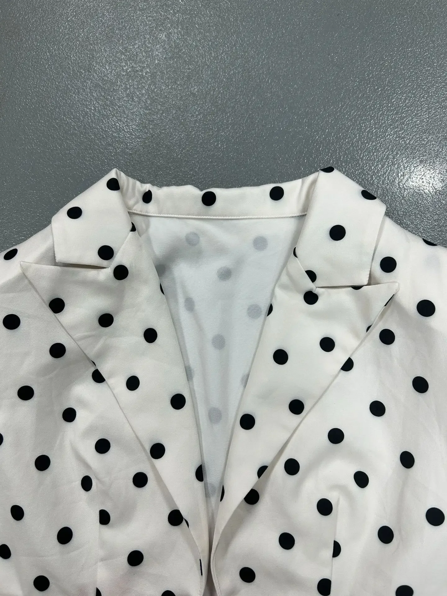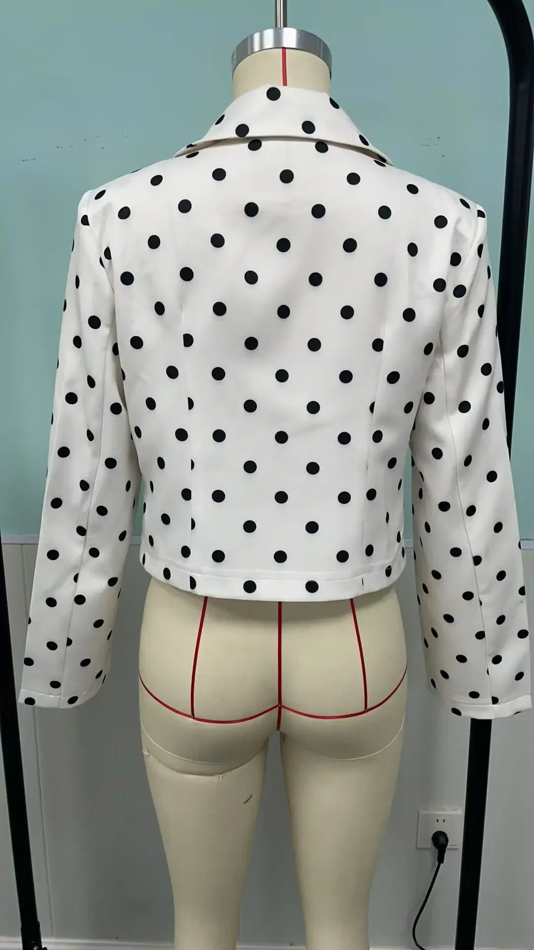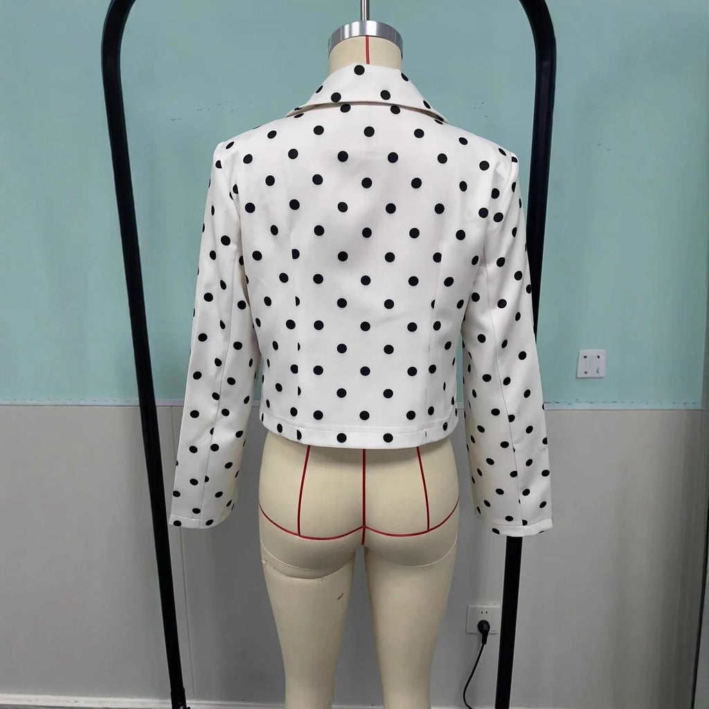 Purpdrank Elegant Casual Women's Suit Coat with Bow Tie Decor Polka Dot Pattern Regular Sleeve Length Full Polyester Fiber