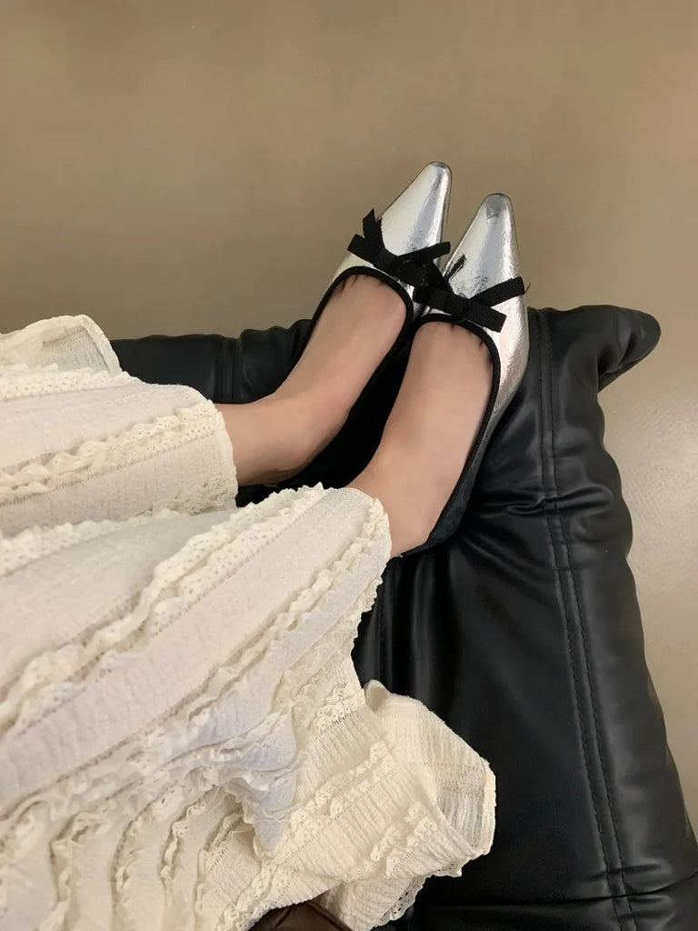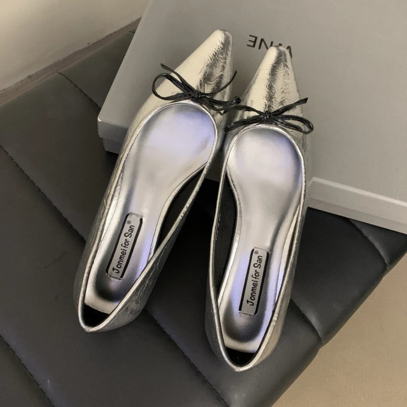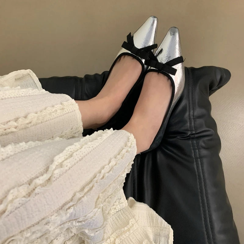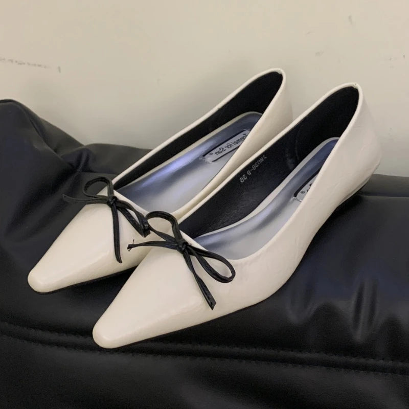 Purpdrank Elegant Pointed Toe Butterfly-knot Low Heel Pumps Women Comforta Shallow Flat Designer Shoe Fashion Office Shoe Zapatos De Mujer