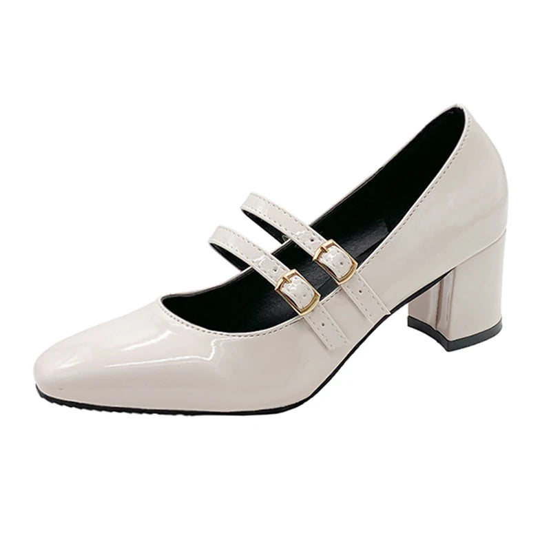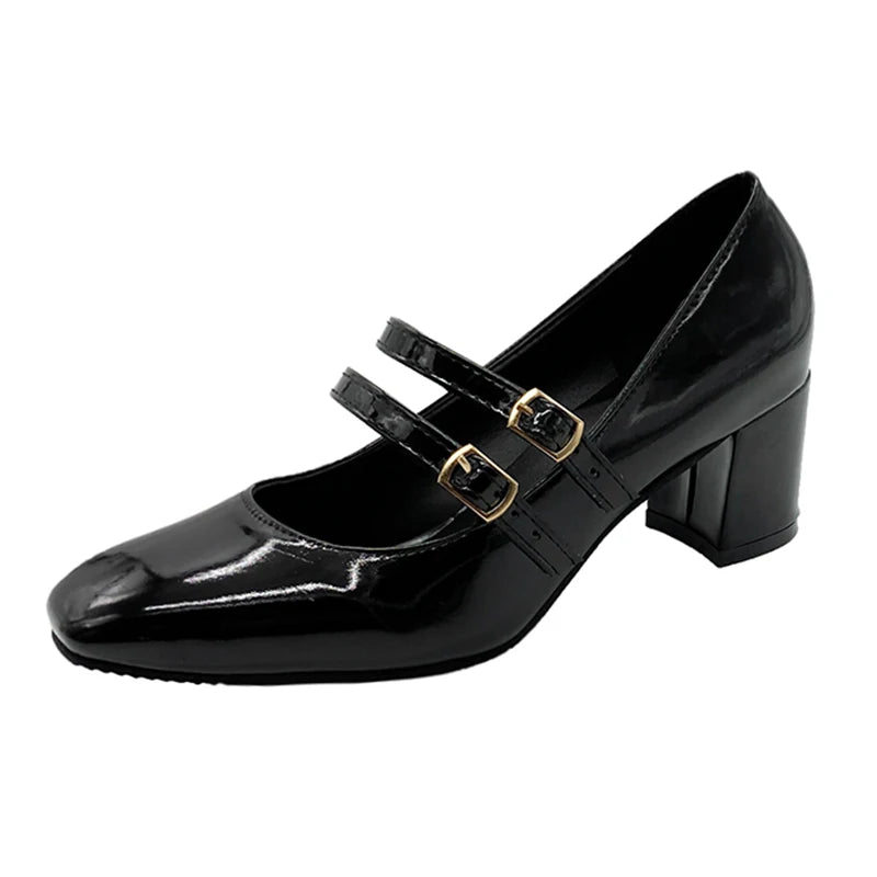 Purpdrank Elegant Women's Chunky Heels Mary Jane Shoes Square Toe Double Ankle Strap Pumps for Women Patent Leather High Heels Party Shoes