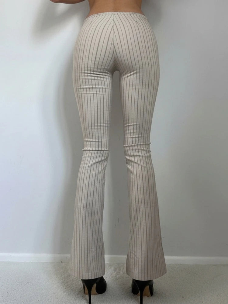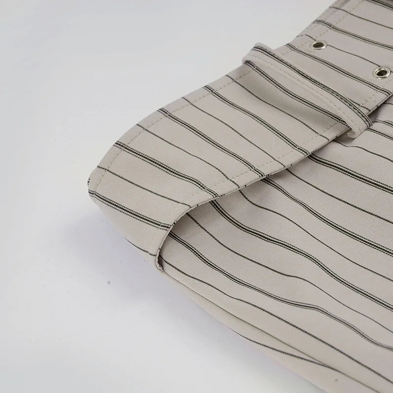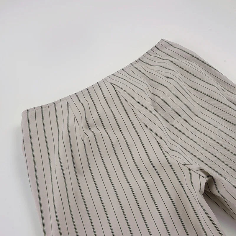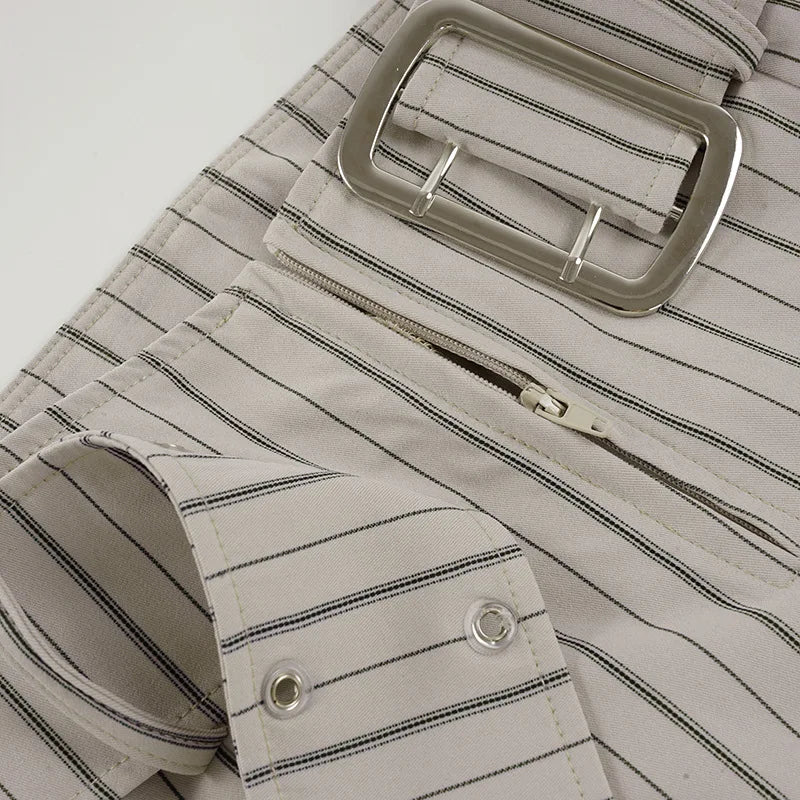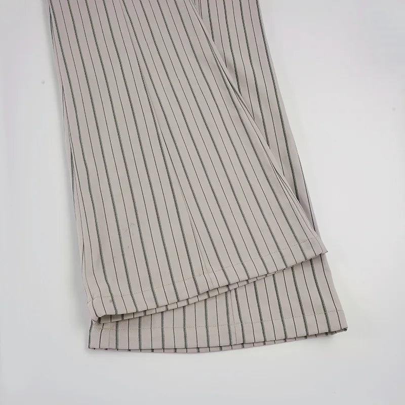 Purpdrank Fashion Women's Striped Long Pants Metal Buckle Belt with Zipper Up Slim Fit Casual Female Trousers for Work Office Wear