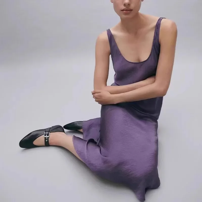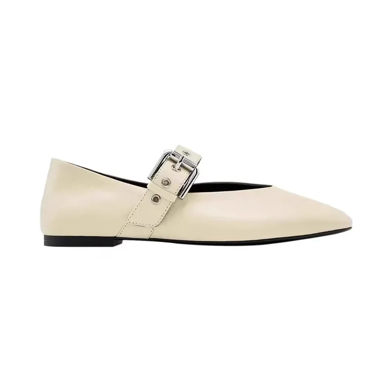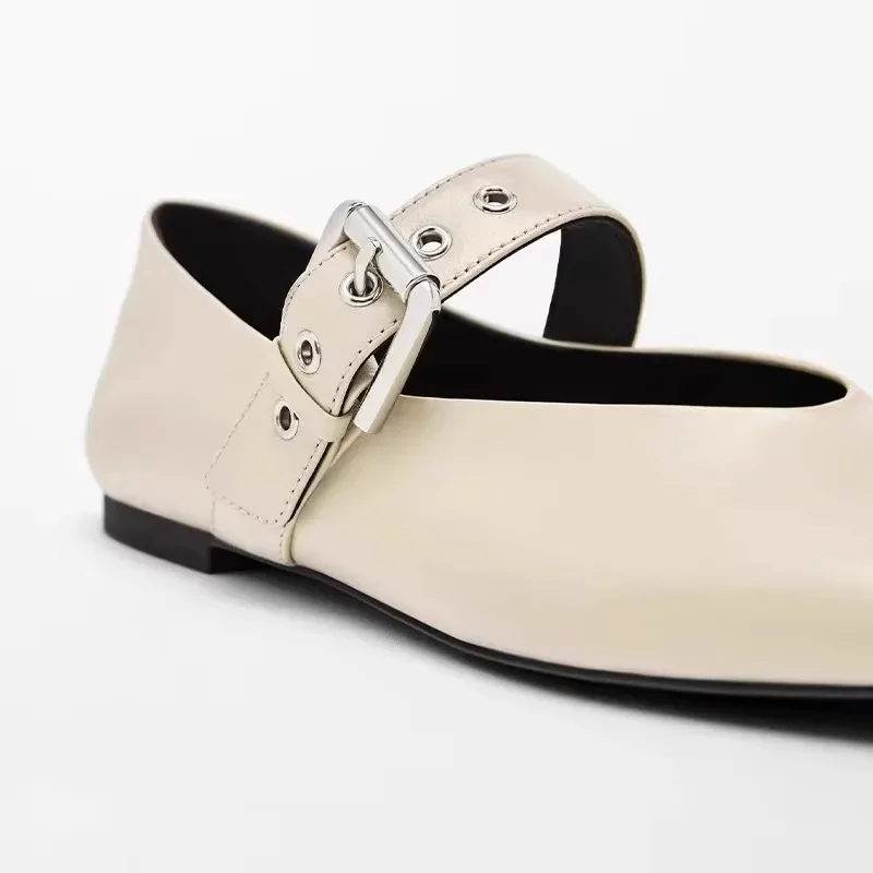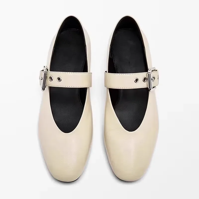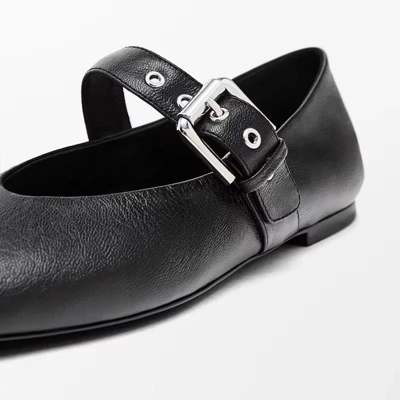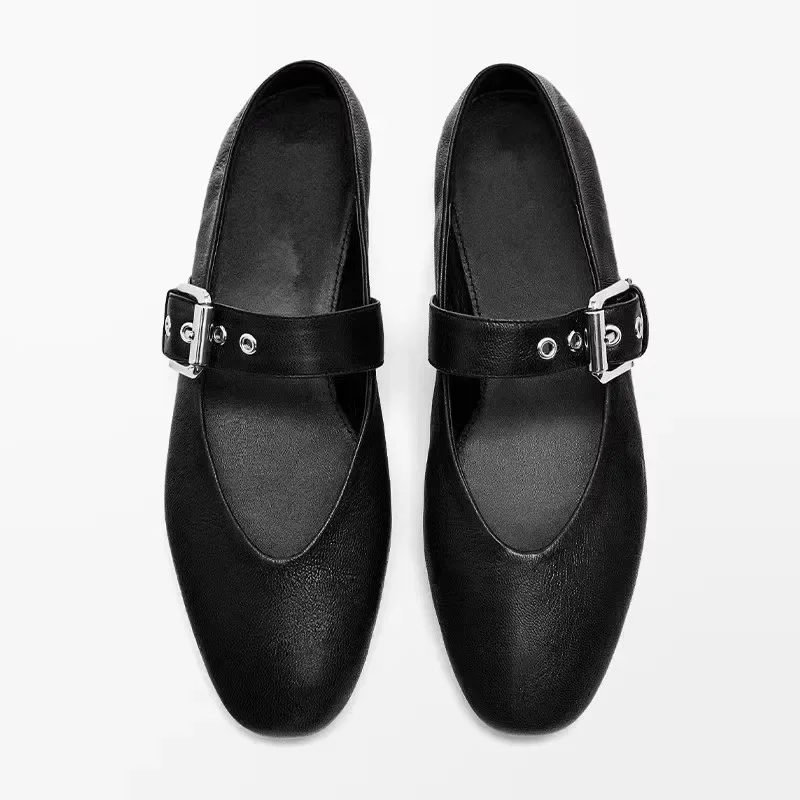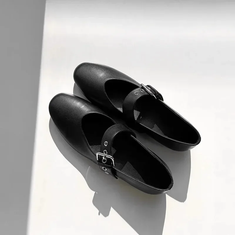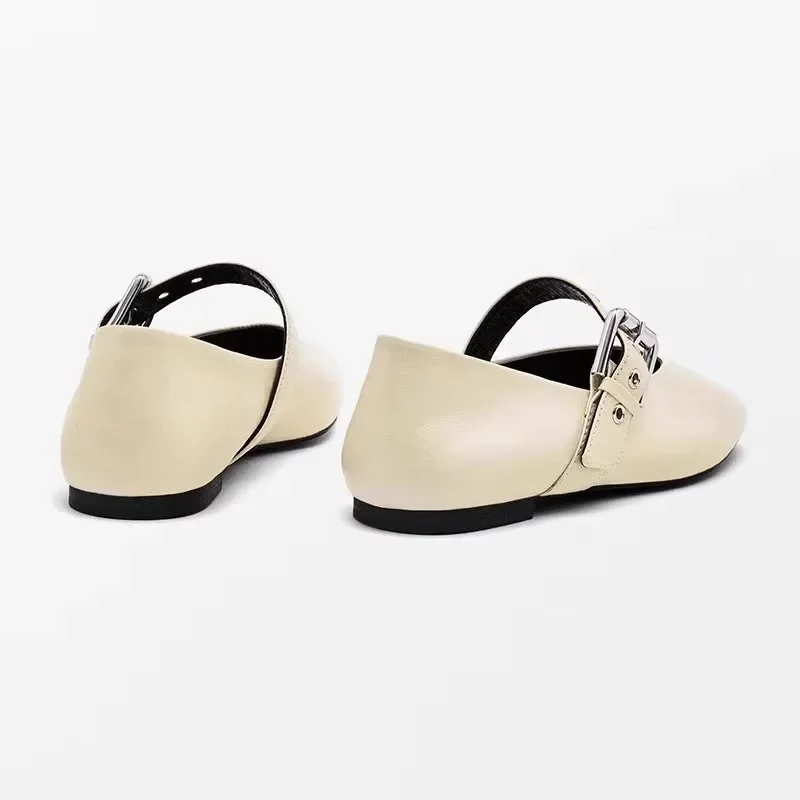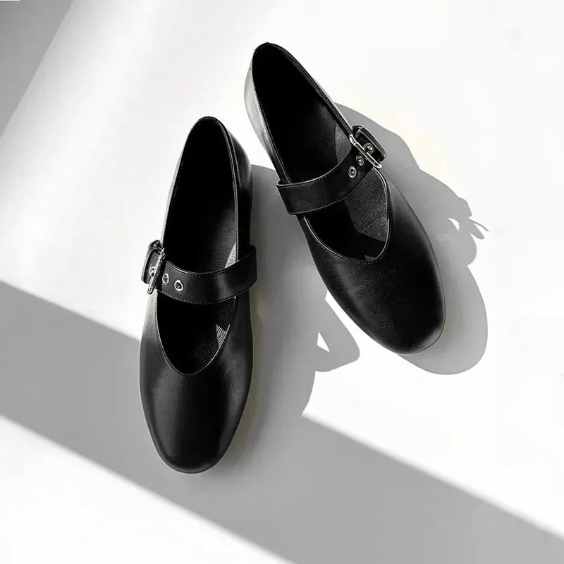 Purpdrank French Flat Mary Jane Shoes Women Summer Outdoor Wear Retro Buckle Strap Slip-On Ballet Shoes Low Cut Casual Rubber Footwear