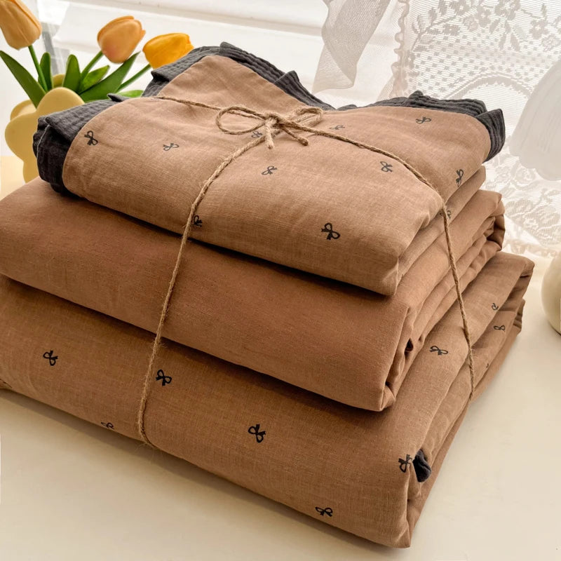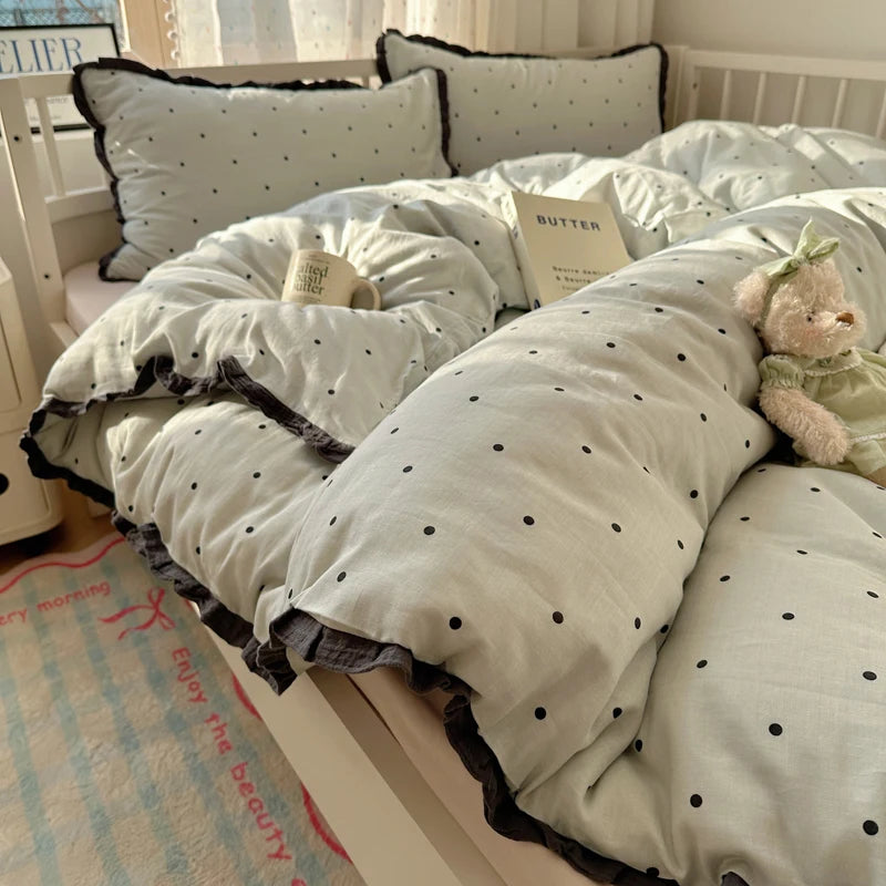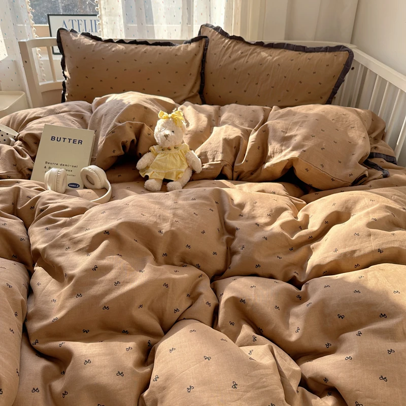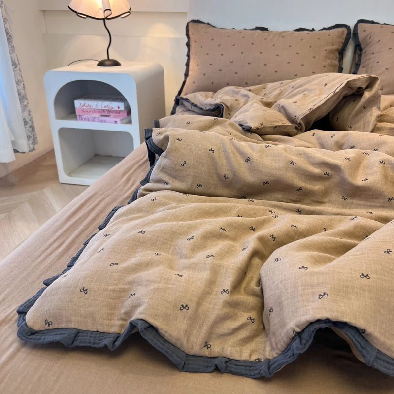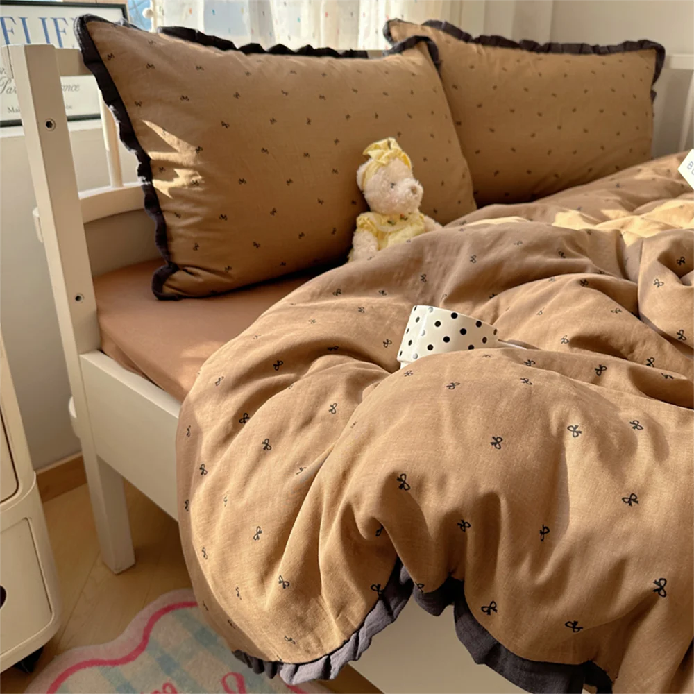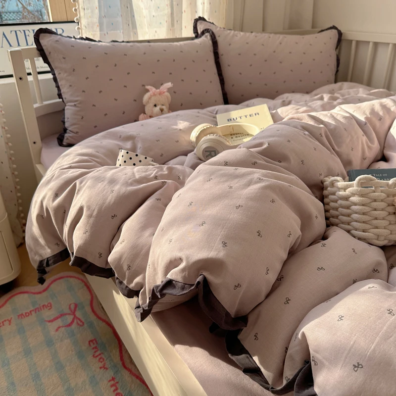 Purpdrank French Lace Bedding Sets 2025 New Ruffle Lace Bow Quilt Cover Romantic Bedclothes Decor Woman Girls Bedroom Duvet Cover 4pcs