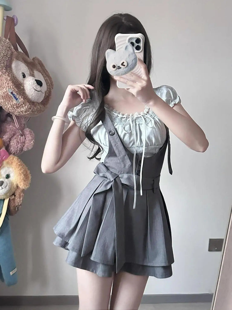 Purpdrank French Vintage Sexy Sweet 2 Piece Sets Women Y2k Bandage Design Harajuku Mini Dress Suits Female Chic Korean Popular Clothes New