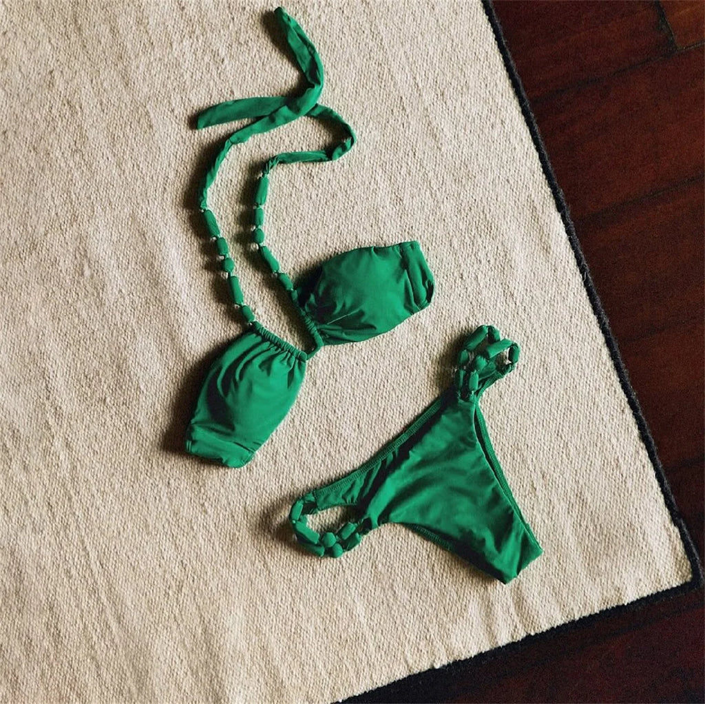 Purpdrank Halter Bikini Bandeau Biquini Women Sexy Swimsuit Push Up Swimwear Female High Waist Swim Suits Solid Bathingsuit Beachwear
