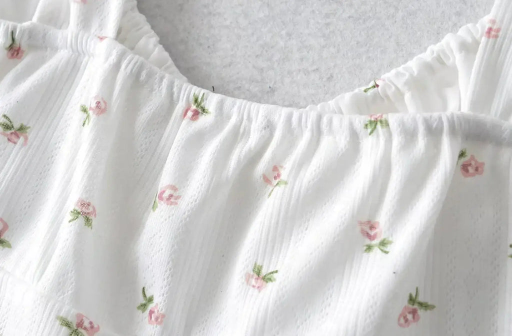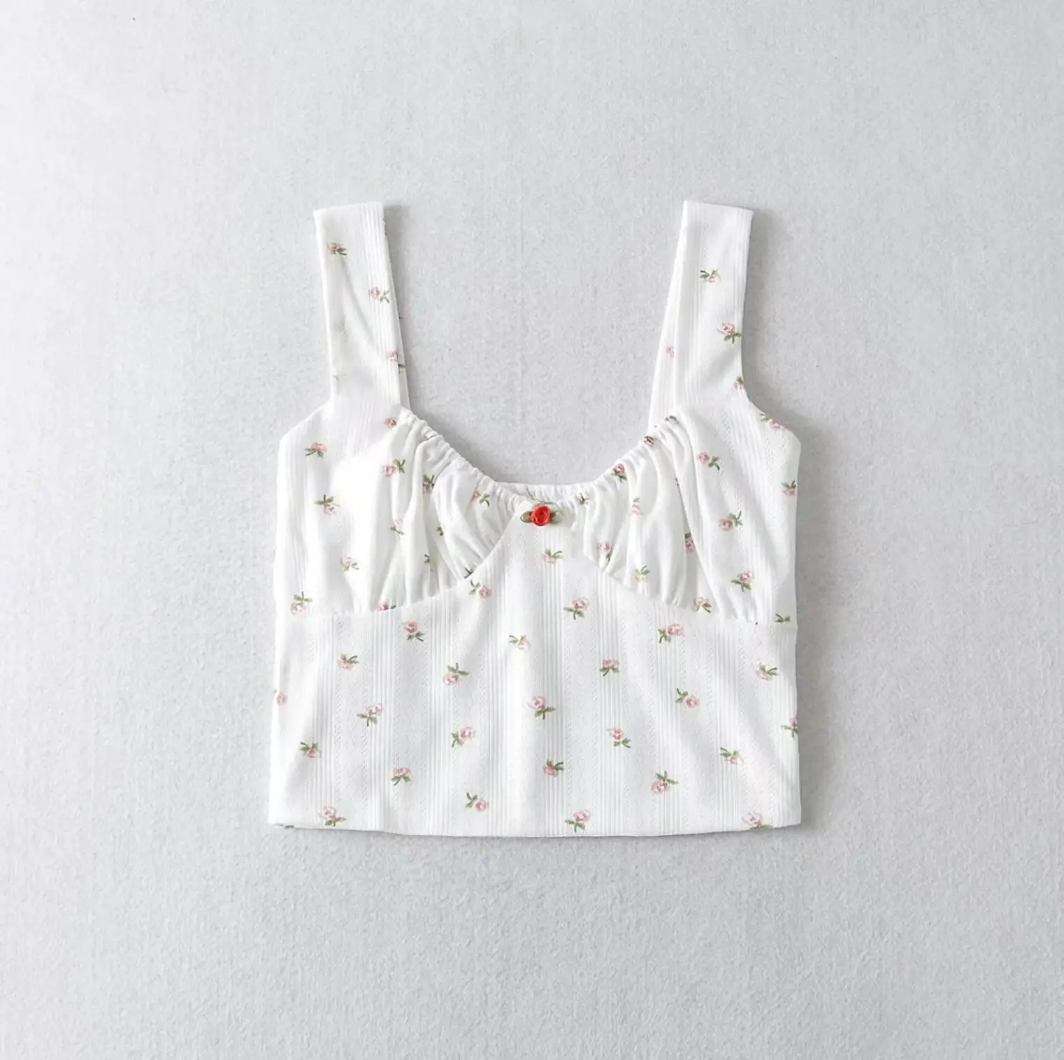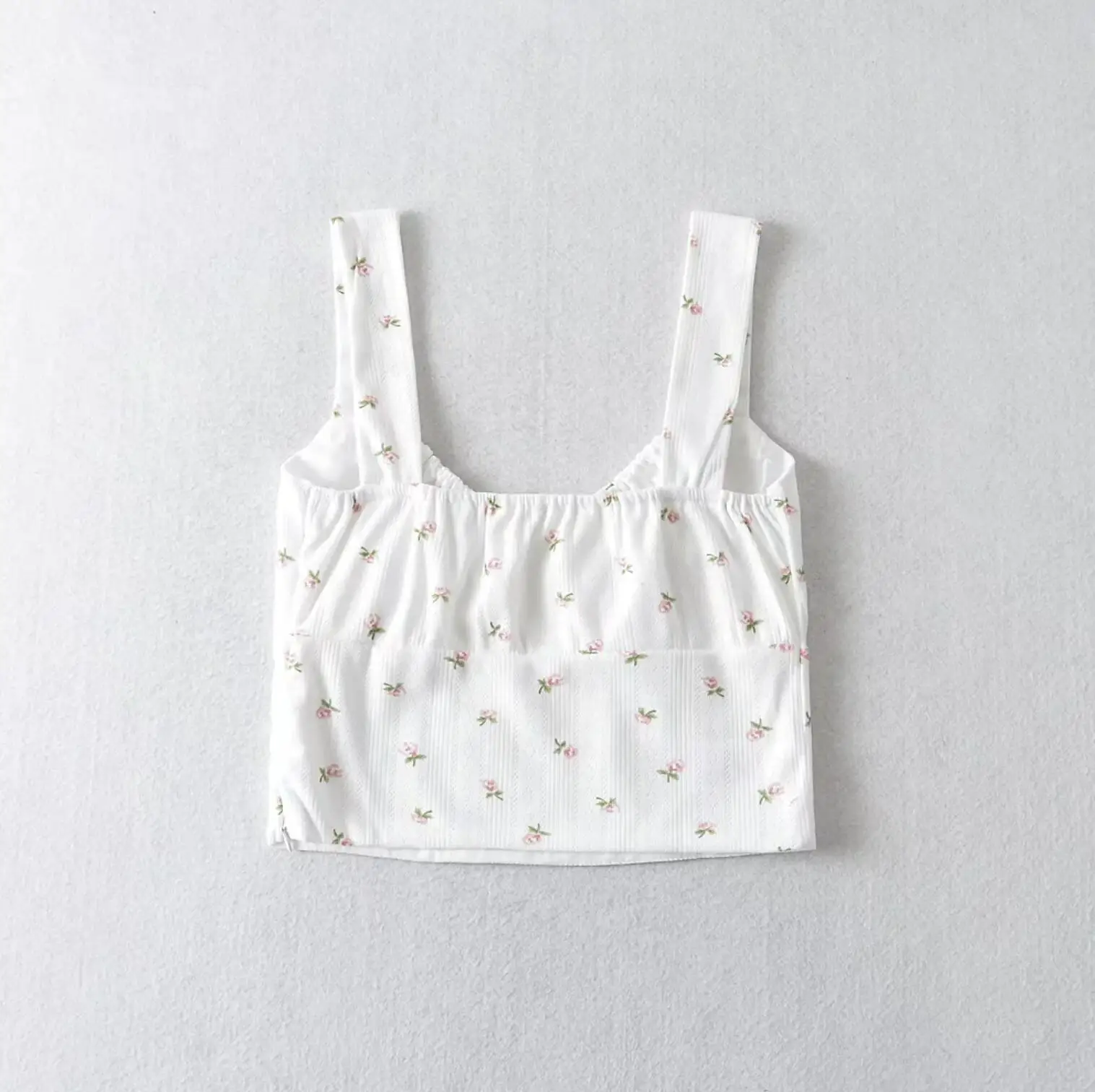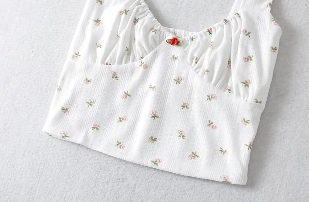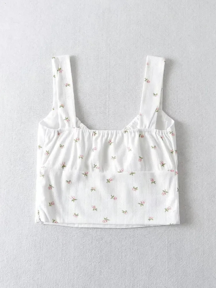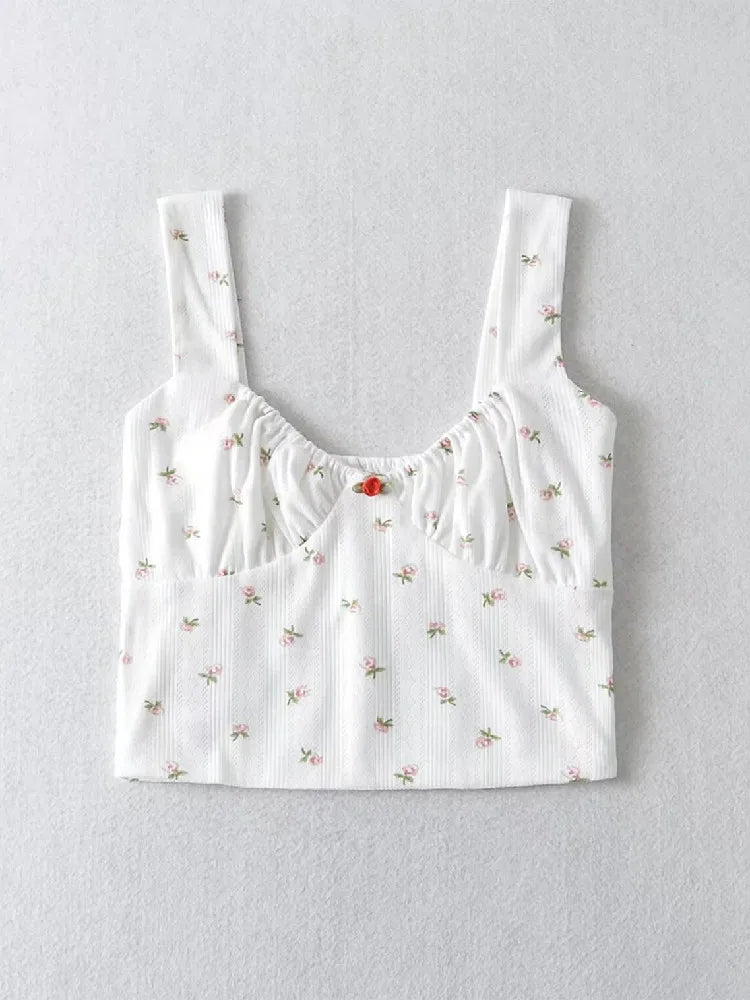 Purpdrank Harajuku 70s Vintage Elastic V neck White Floral Tank Top Sleeveless Base T-shirts Summer Girl Crop top