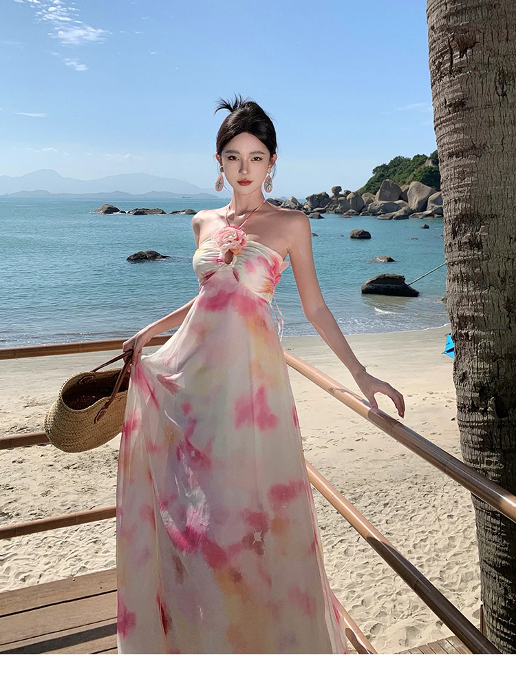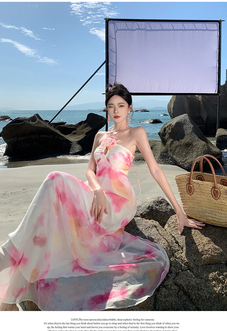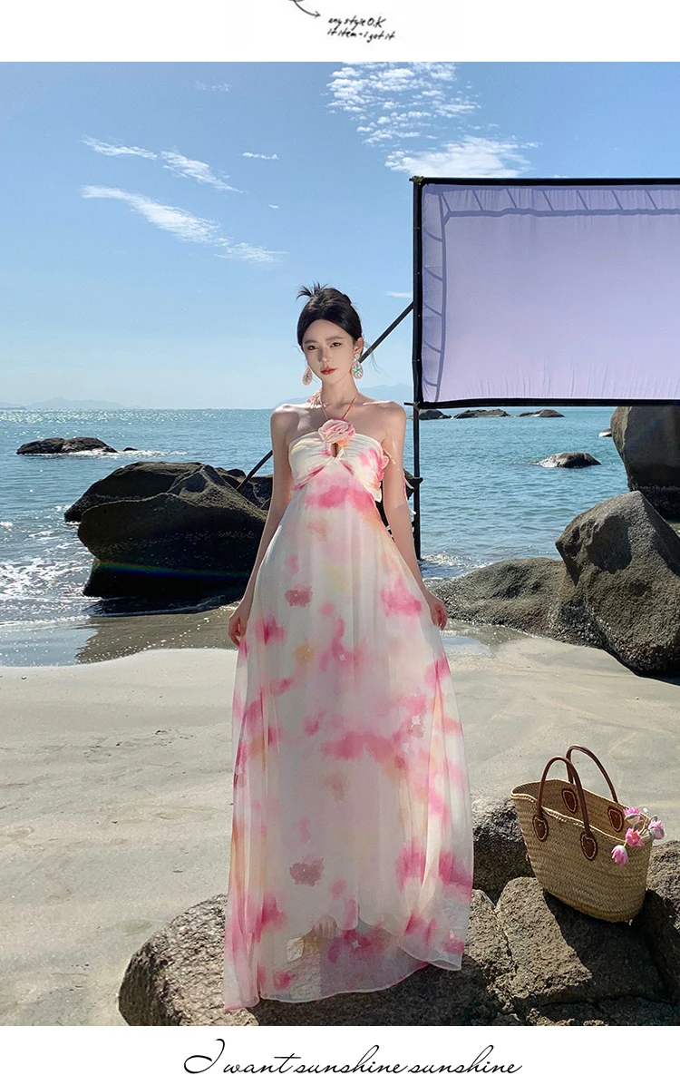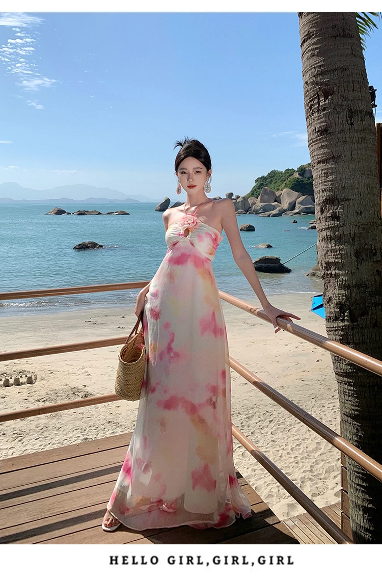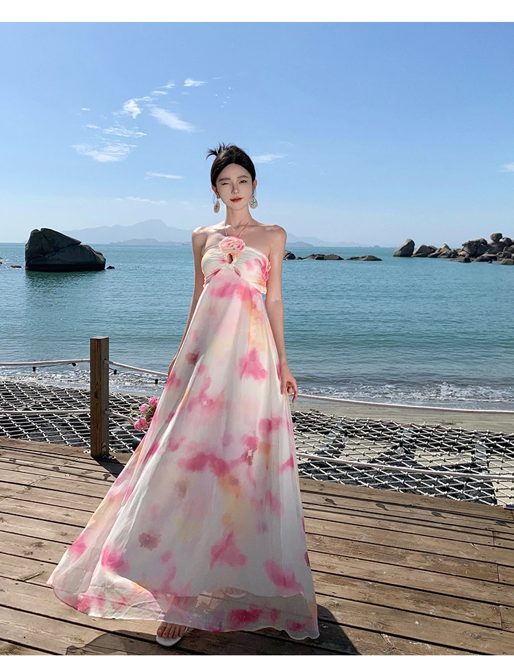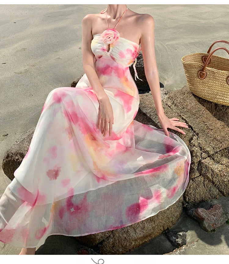 Purpdrank High-end Three-dimensional Flower Niche Halter Dress Bride Wedding Morning Robe Elegant Temperament Backless Light Gown