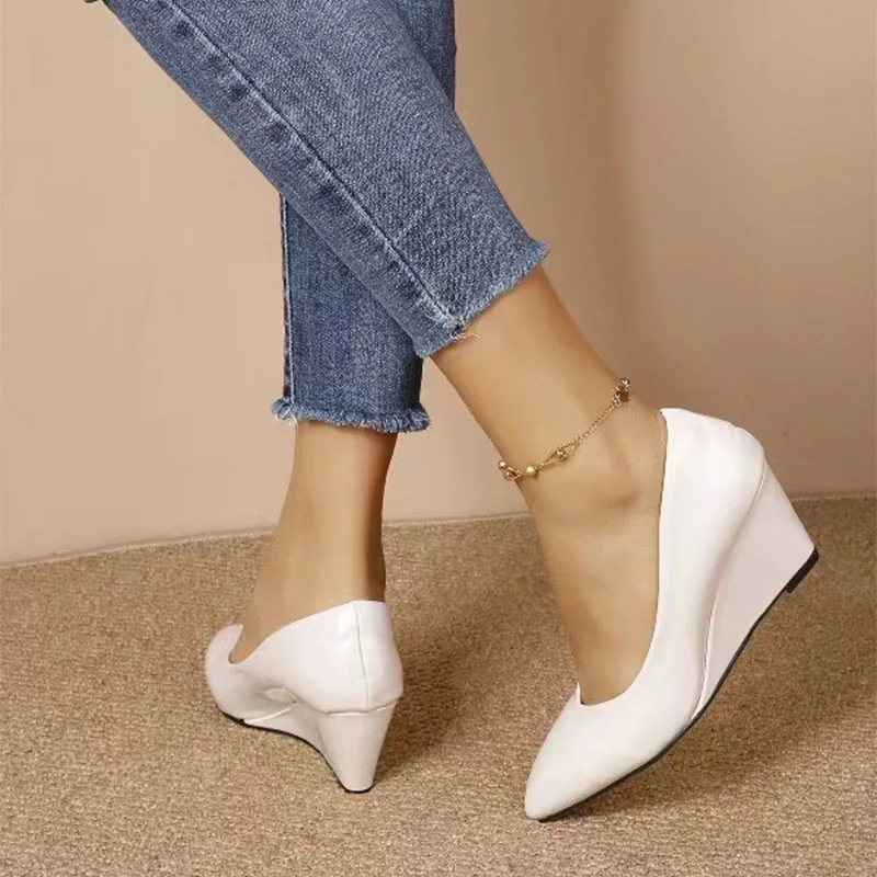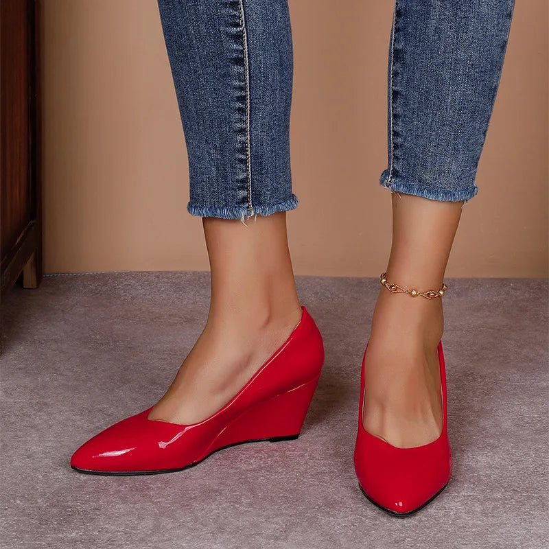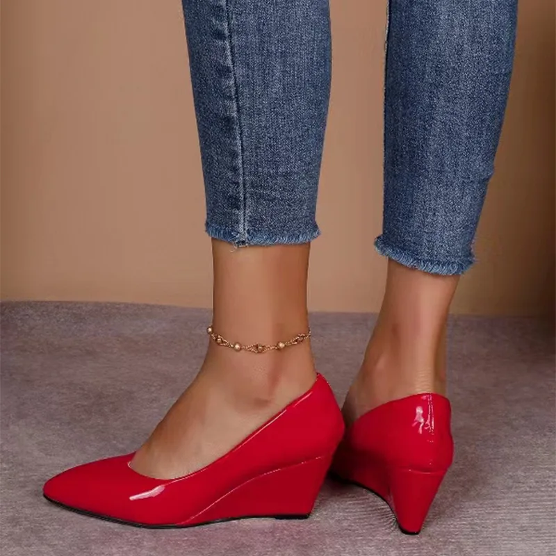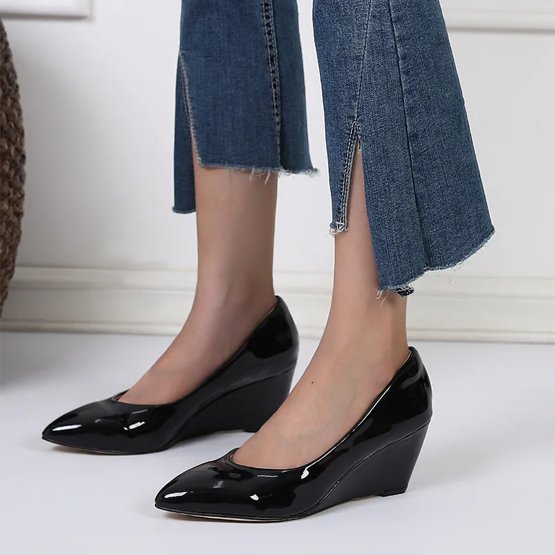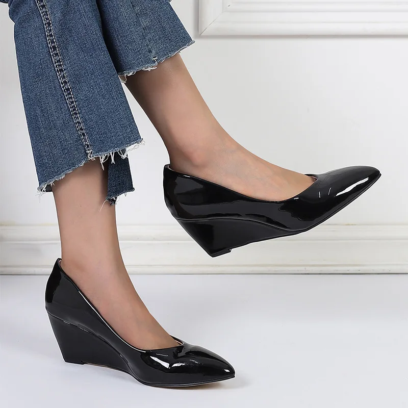 Purpdrank High Heel Comfortable Women's Shoes Spring Autumn New Style Slope Heel Pointed Shallow Mouth Lacquer Leather Single Shoe