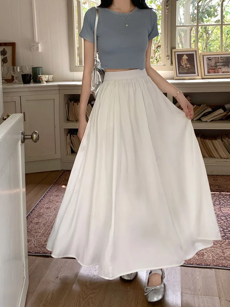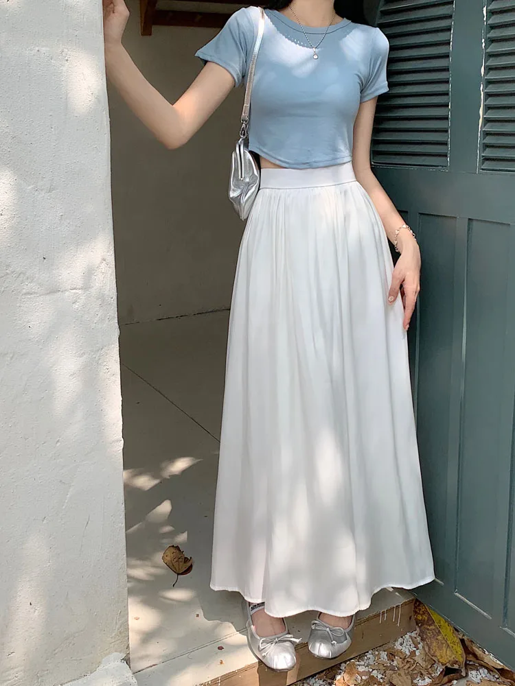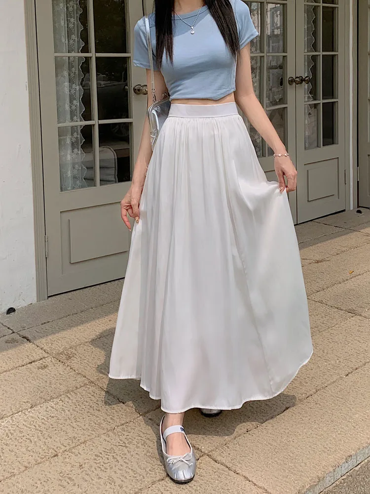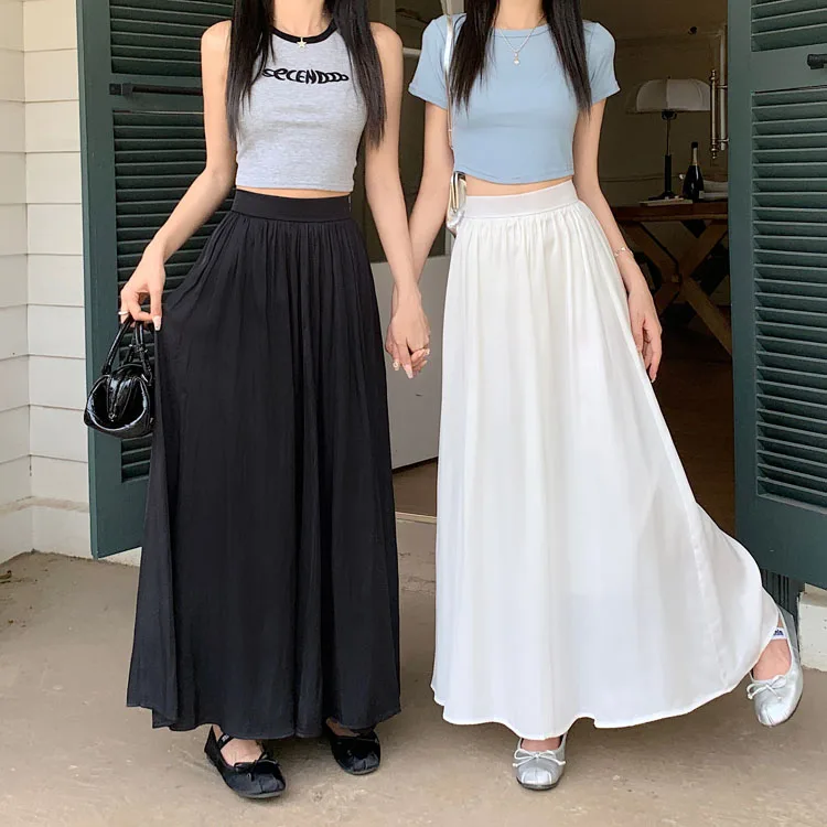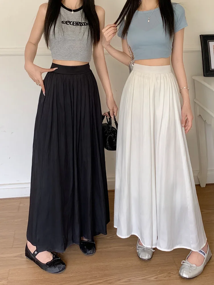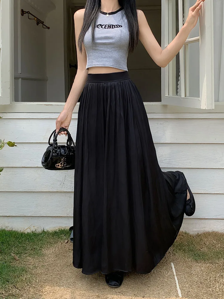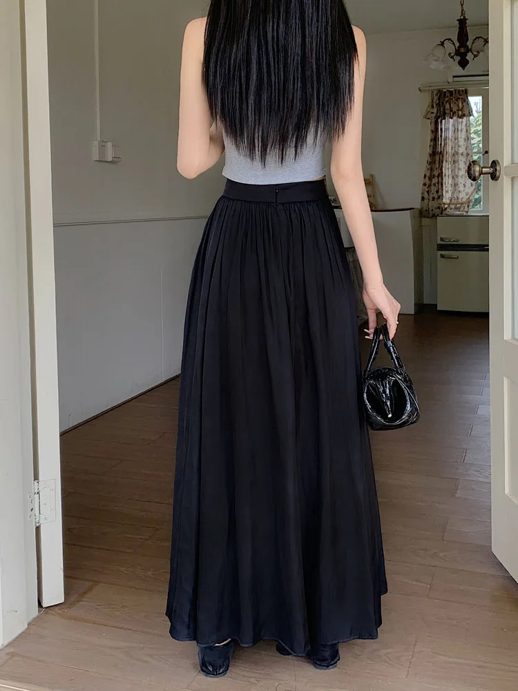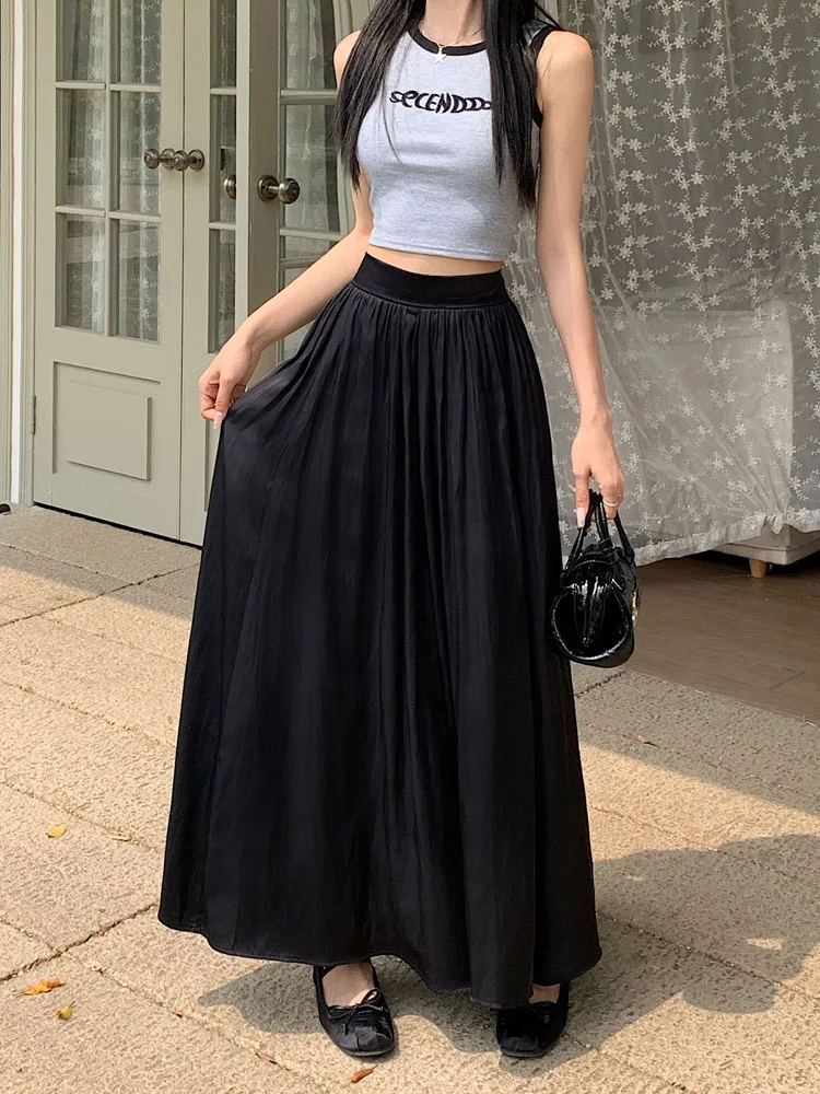 Purpdrank High Quality Niche High-waisted Satin Skirt Women French A Line Black Long Skirt Female Elegant Pleated Black Faldas 2025 New