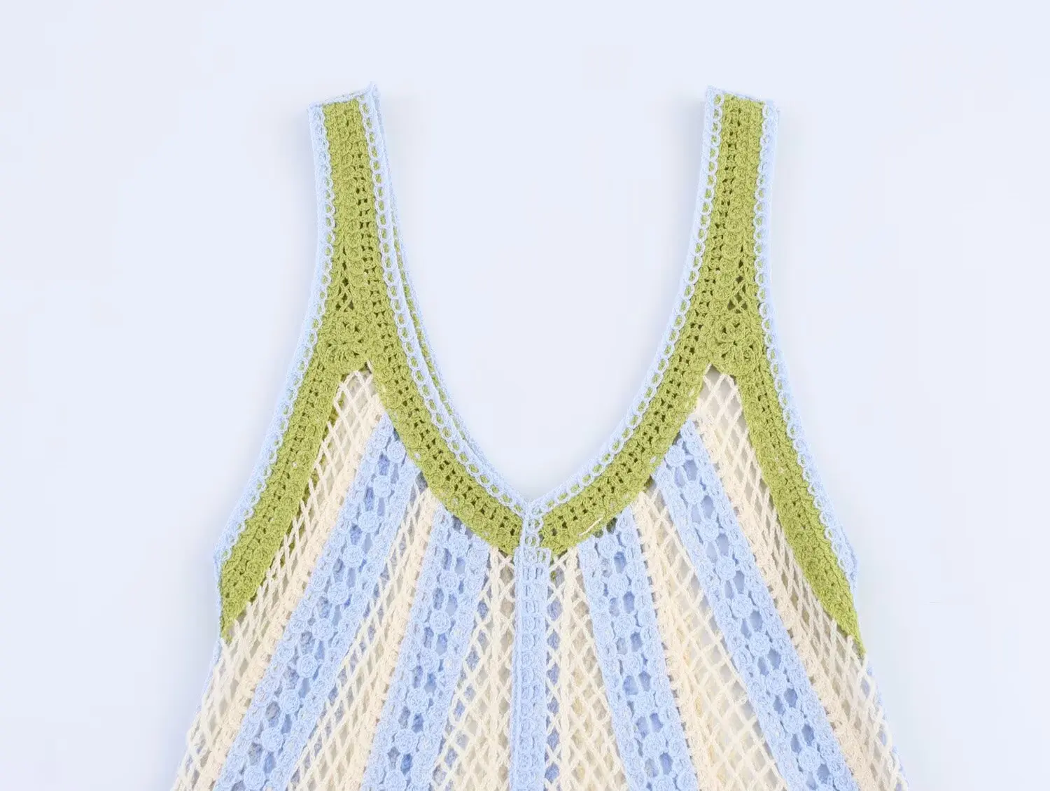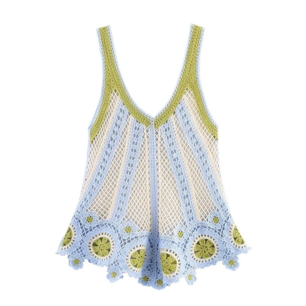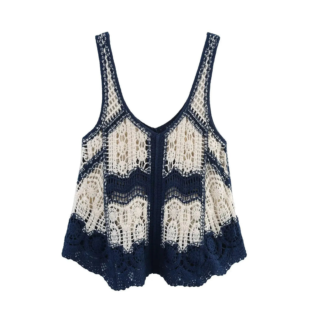 Purpdrank  Holiday Style Summer Women's Crocheted Suspender Tops V-Neck Backless Casual Beach Bohemian Tops